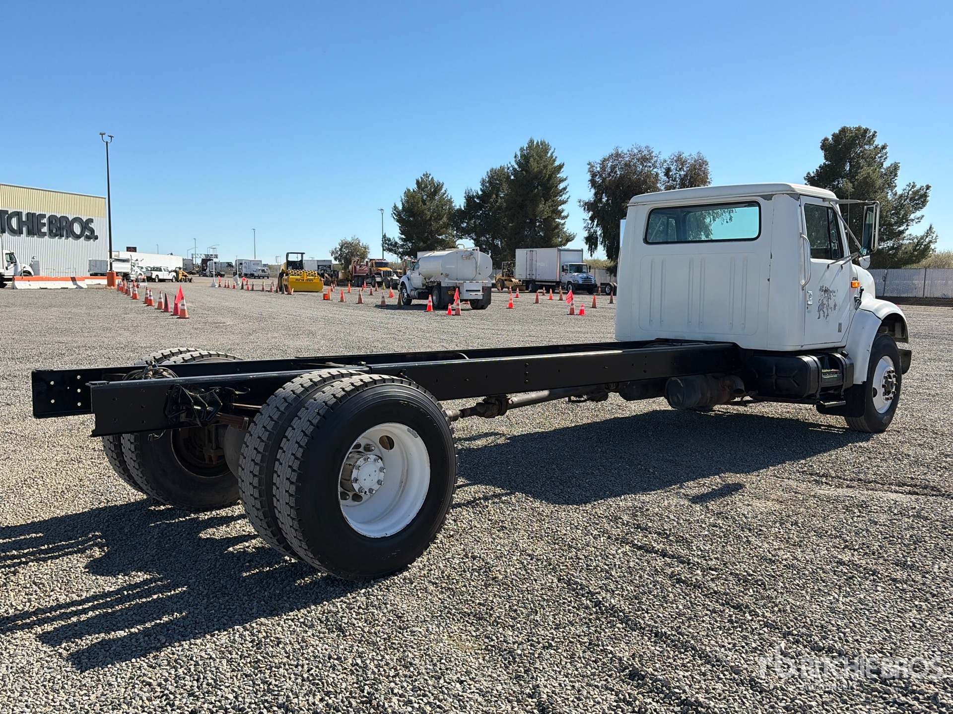 International DT466 466 cid Diesel 210 hp Engine, 1990 US EPA Label, 6-Speed Manual Transmission, 10000 lb Front Axle, 21200 lb Rears, 31200 lb GVWR, 11R22.5 Front Tires, 11R22.5 Rear Tires, Double Frame, Spring Suspension, 254 in Wheelbase, 186 in Cab to Axle, 230 in Cab to End of Frame