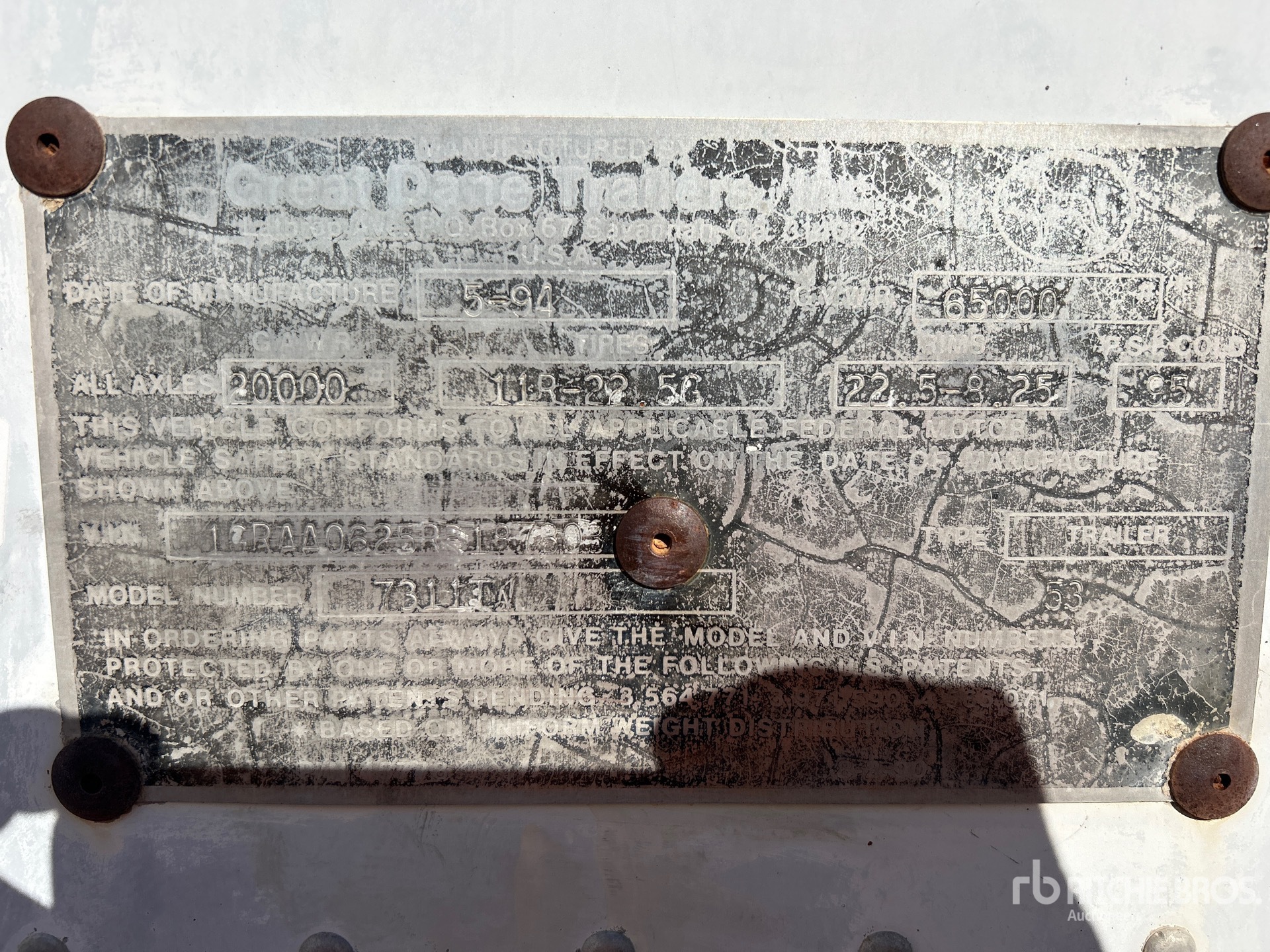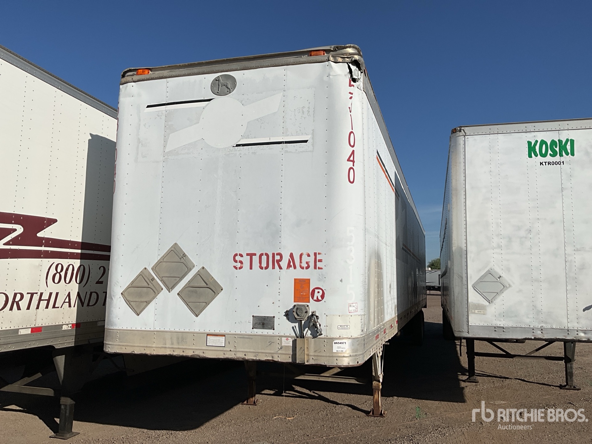Located in Lane 9 Spot 16, Aluminum/Steel Combination Frame, Spring Suspension, Roll-Up Door, 295/75R24.5 Tires, 65000 lb GVWR
