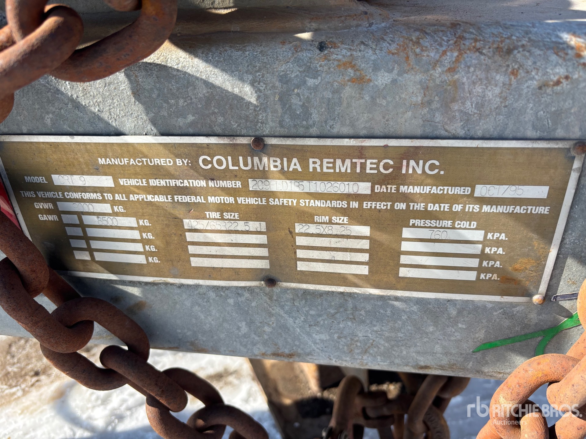 Lunette Ring Hitch, Torsion Axle, Electric Brakes, 425/65R22.5 Tires, 9000 kg GVWR
