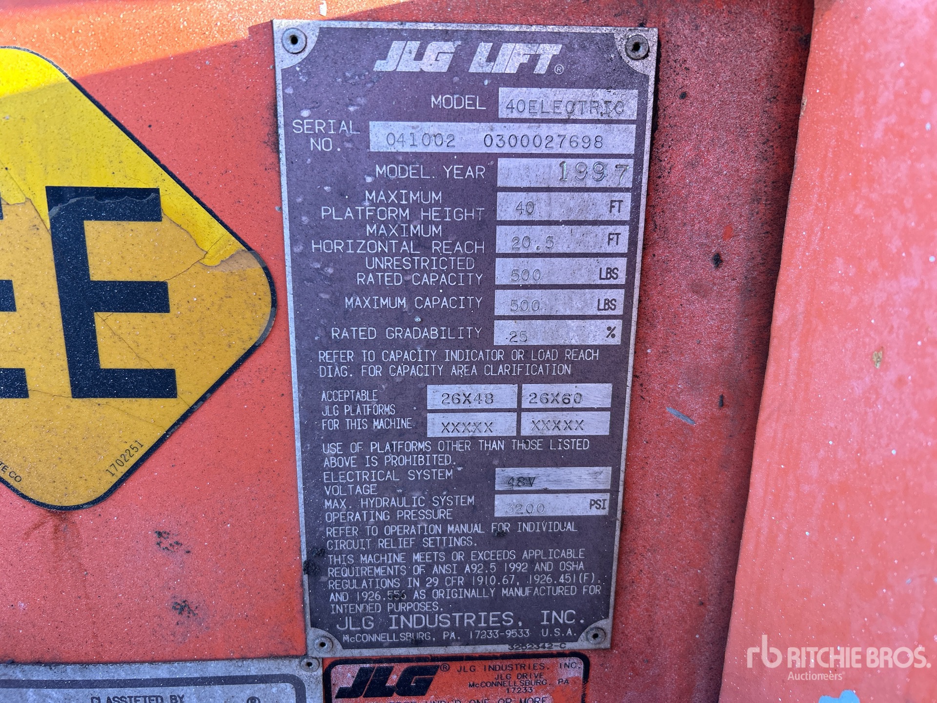 40 ft Max Platform Height, 500 lb Max Weight Capacity, Power to Platform, 205/90D15 Tires