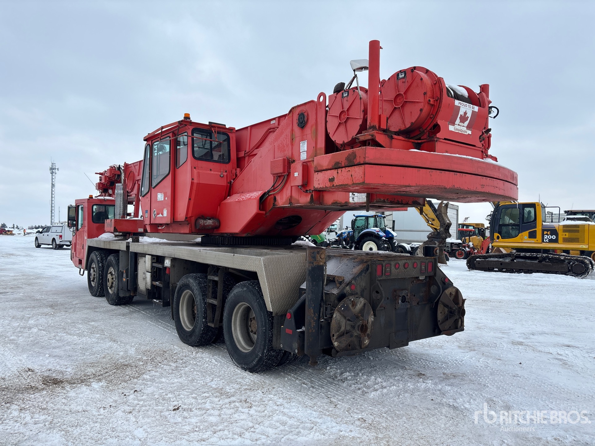 Eaton Fuller Manual Transmission, Cummins ISM 6 Cylinder Diesel Carrier Engine, Anti Two-Block, PAT DS 350 Load Moment Indicator, 35 ft Minimum 138 ft Maximum Boom Length, Auxiliary Hoist, Rooster Sheave, 31 ft to 56 ft Bifold Swingaway Offset Jib, Overhaul Ball, Counterweight Removal System