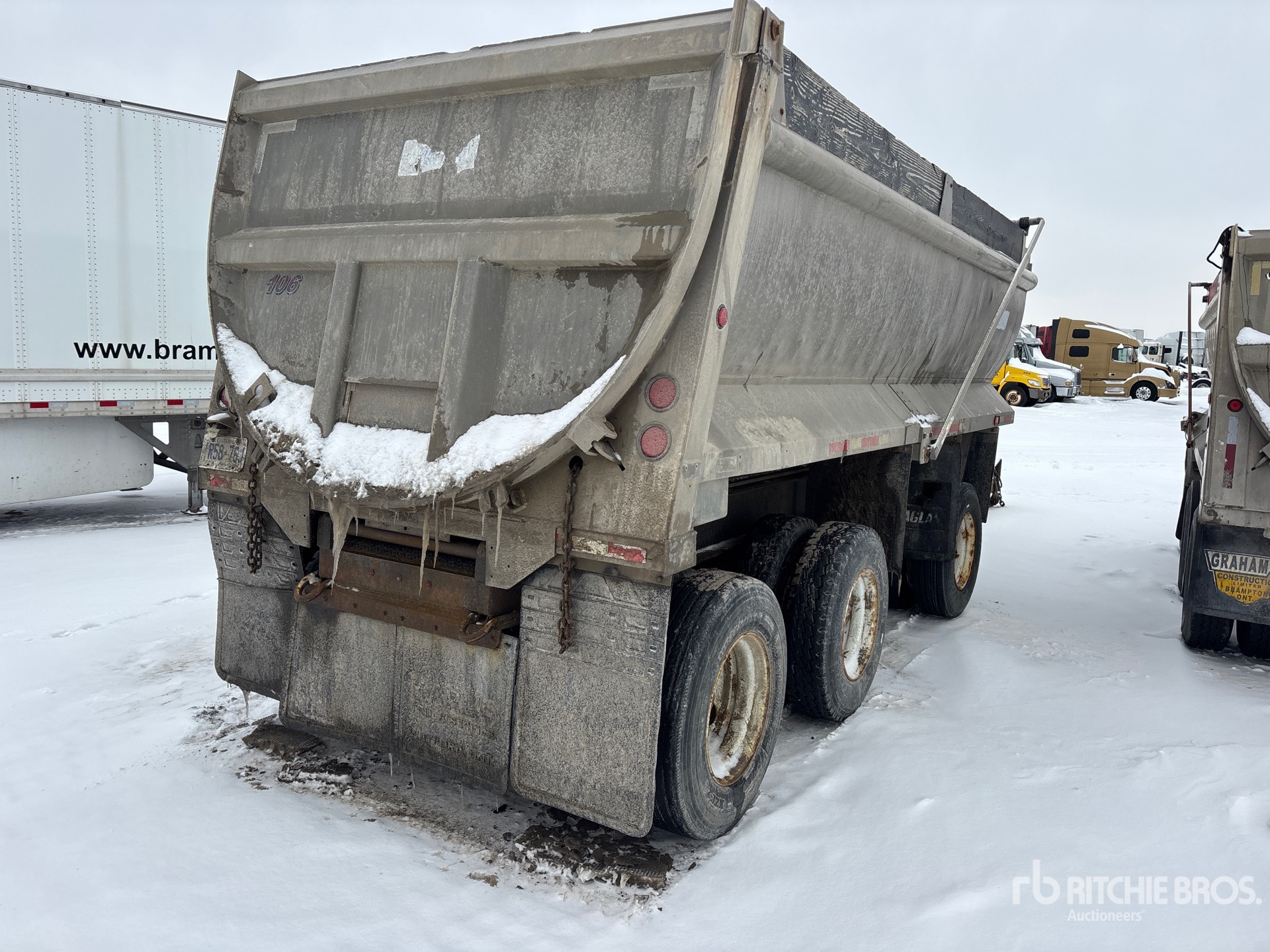 Located in Lane 18, Lunette Ring Hitch, Air Ride Suspension, Electric Brakes, Lift 1st- Axles, Steering 1st- Axle, 20 ft 1 in Body, 49 in Side Walls, Aluminum Body, Air Powered Roll Tarp, Box Liner, 11R22.5 Tires