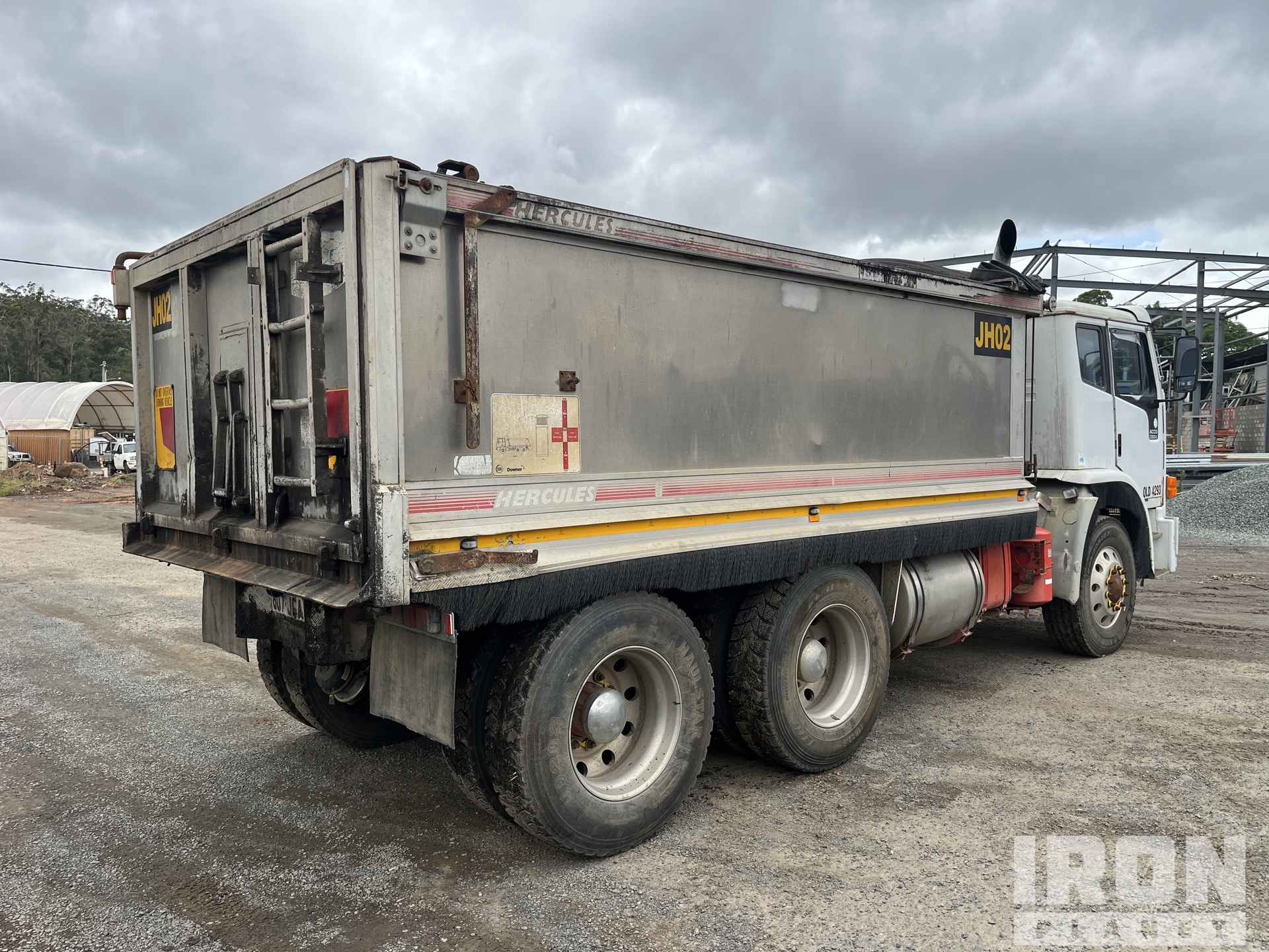 6 Cylinder Diesel Engine, 22362 Engine hrs, Engine Brake, Eaton Fuller 13-Speed Manual Transmission, Differential Lock, 295/80R22.5 Front Tires, 11R22.5 Rear Tires, 6-Rod Suspension, 4000 mm Wheelbase, PTO, Hydraulic System, Hercules Rock Sheeted Alloy Body, Electric Roll Tarp, 2-Way Tailgate, Tailgate Chute, GVM 24 t