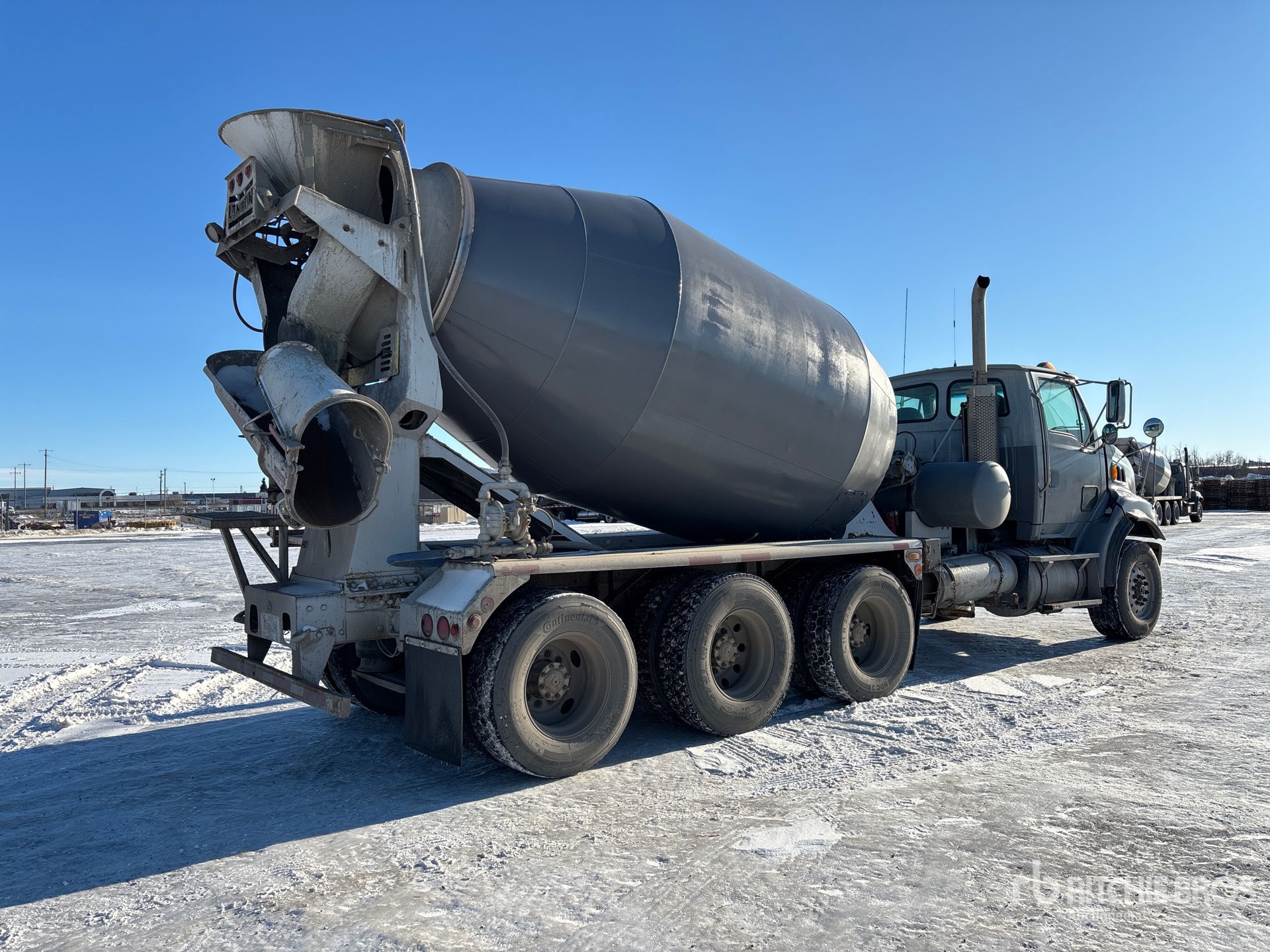 Mercedes-Benz MBE4000 6 Cylinder 12.8 L Diesel Engine, 2005 US EPA Label, 19819 Engine hrs, Engine Brake, Automatic Transmission, Triple Differential Locks, 18740 lb Front Axle, 69000 lb Rears, 87740 lb GVWR, Aluminum Wheels, 385/65R22.5 Front Tires, 11R22.5 Rear Tires, Dual Steering Boxes, Airliner Air Ride Suspension, 232 in Wheelbase, London TM Mixer Unit, Cordless Remote Control