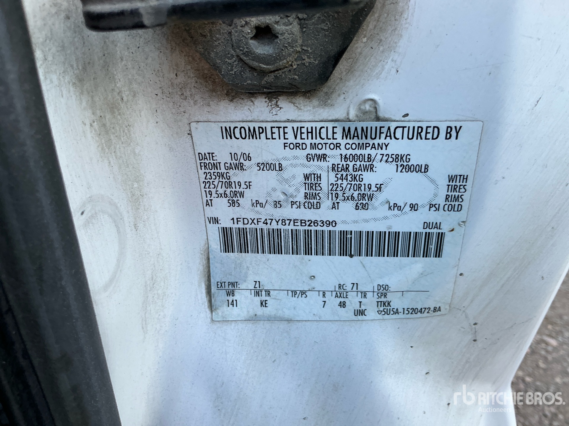 Ford V10 6.8 L Gasoline Engine, 2007 US EPA Label, Automatic Transmission, 5200 lb Front Axle, 12000 lb Rears, 16000 lb GVWR, 245/70R19.5, Spring Suspension, 141 in Wheelbase, 9 ft x 93 in Bed