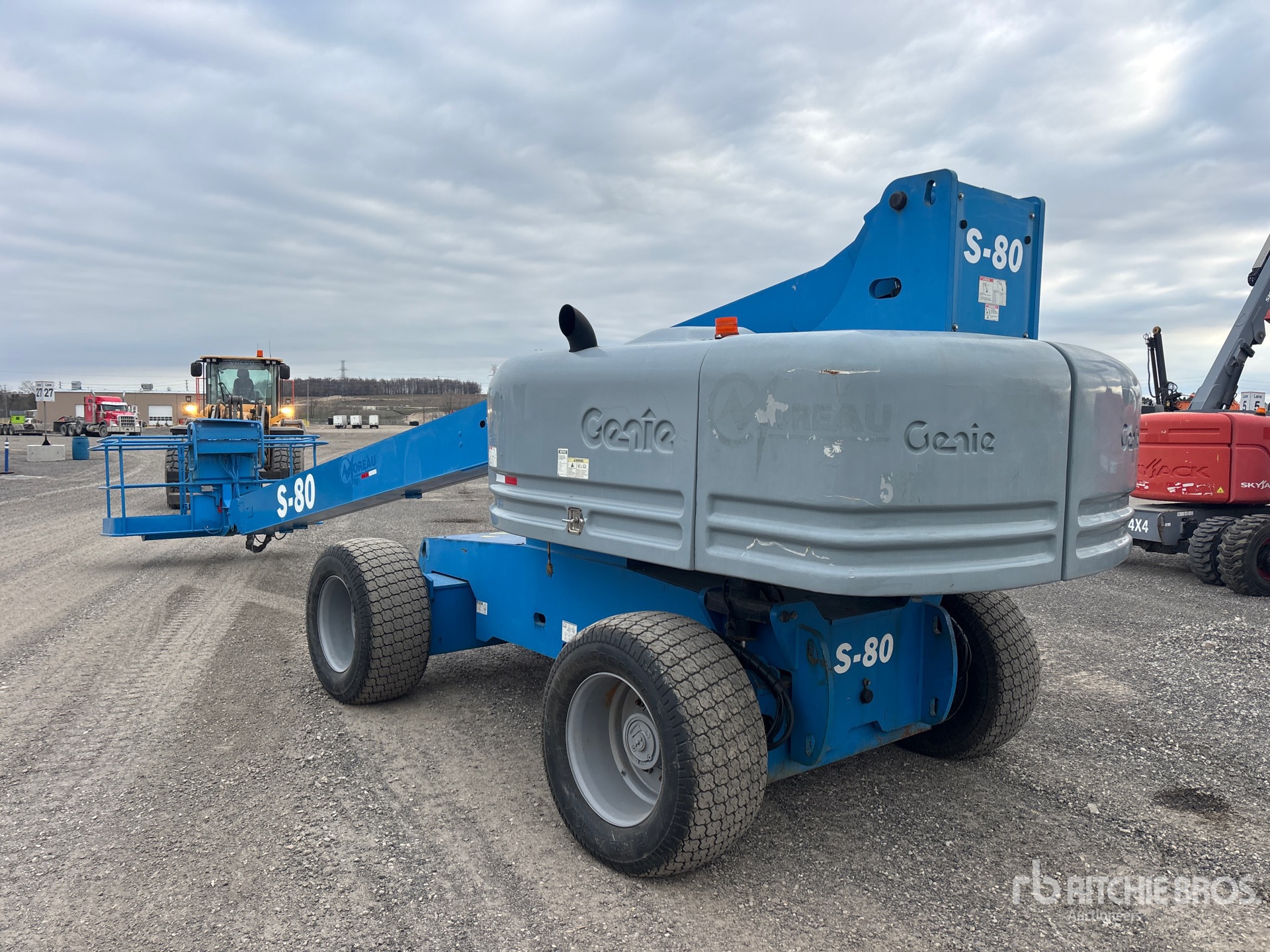 80 ft Max Platform Height, 500 lb Max Weight Capacity, Extendable Axles, Power to Platform, 2007 US EPA Label, CARB Compliant, Perkins 804C-33 4 Cylinder 47 kW Diesel Engine, 41x18LL-22.5 Tires
