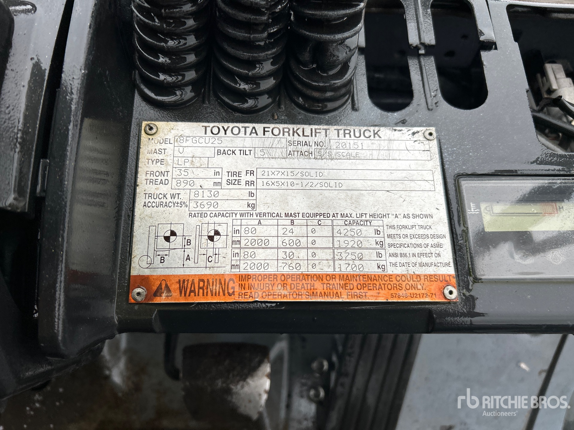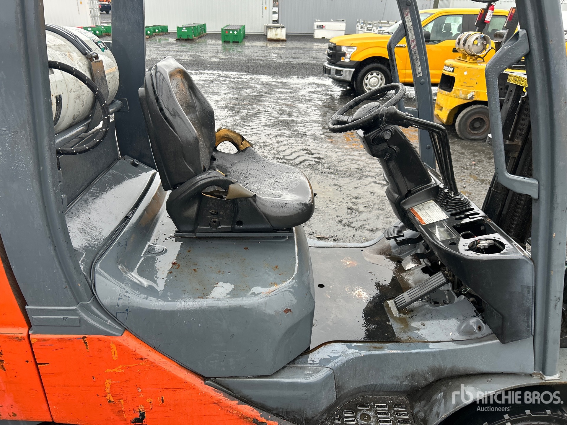 2 Stage Mast, 80 in Max Lift Height, 56 in Lowered Mast Height, 42 in Forks, Side Shift, Solid Pneumatic Tires, 2008 US EPA Label, Toyota 4 Cylinder 38 kW 2.237 L LPG Engine