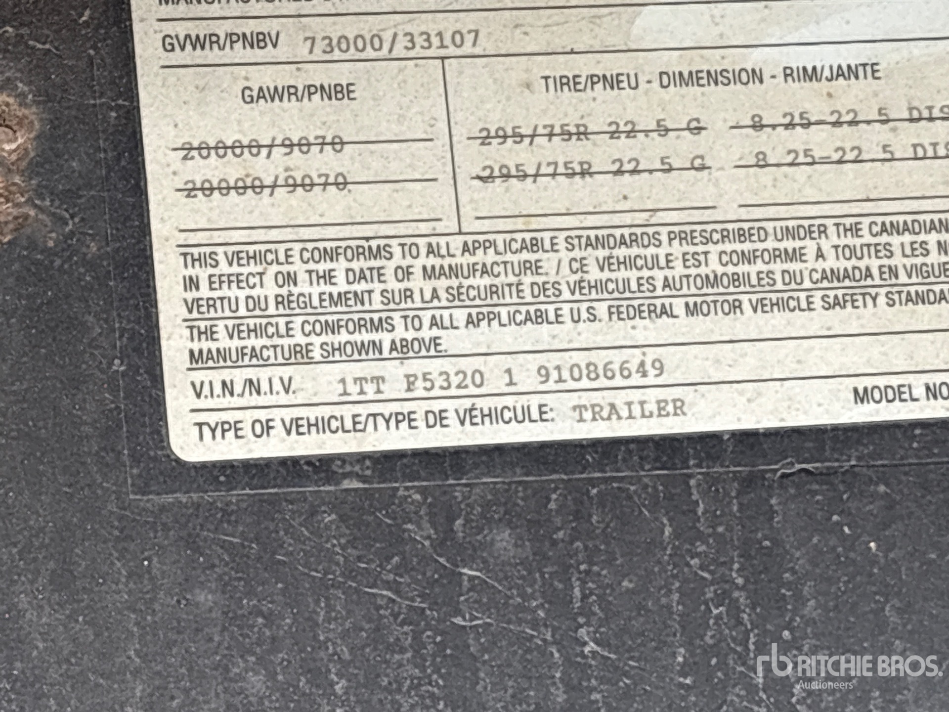 Spring Suspension, Air Brakes, Sliding Suspension, 98 in Deck Width, 102 in Overall Width, Bulkhead, Wood Flooring, 295/75R22.5 Tires, 73000 lb GVWR