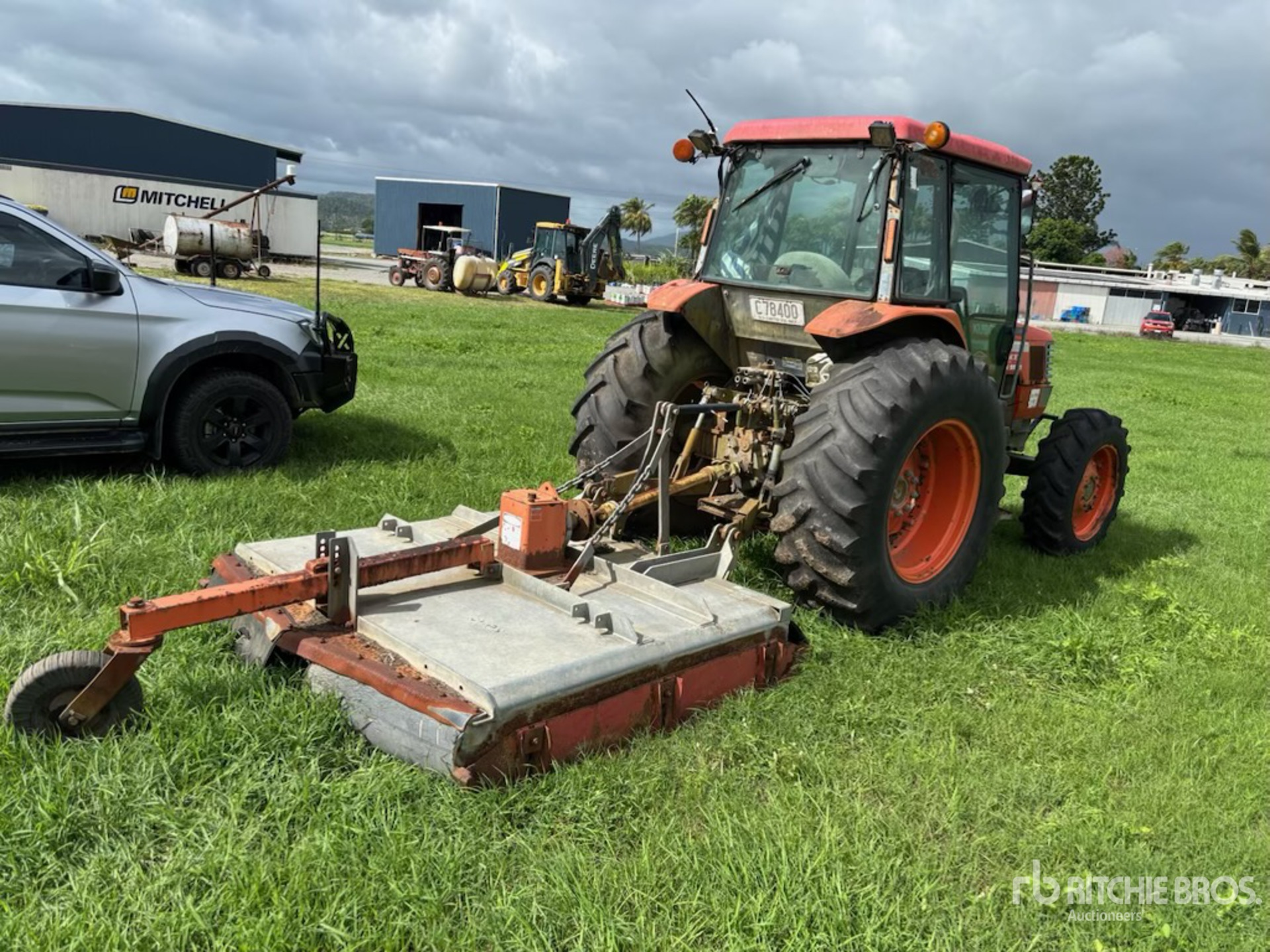 Enclosed Cab, Air Conditioner, 8 Forward 8 Reverse, Hydraulic Shuttle, Forward/ Reverse Shuttle, 85.3 hp Engine, 2003 US EPA Label, 2 Rear Remotes, Exterior 3-Point Hitch Controls, 540/1000 PTO, Drawbar, Howard Slasher, 11.2/10-24 Front Tires, 18.4x30 Rear Tires