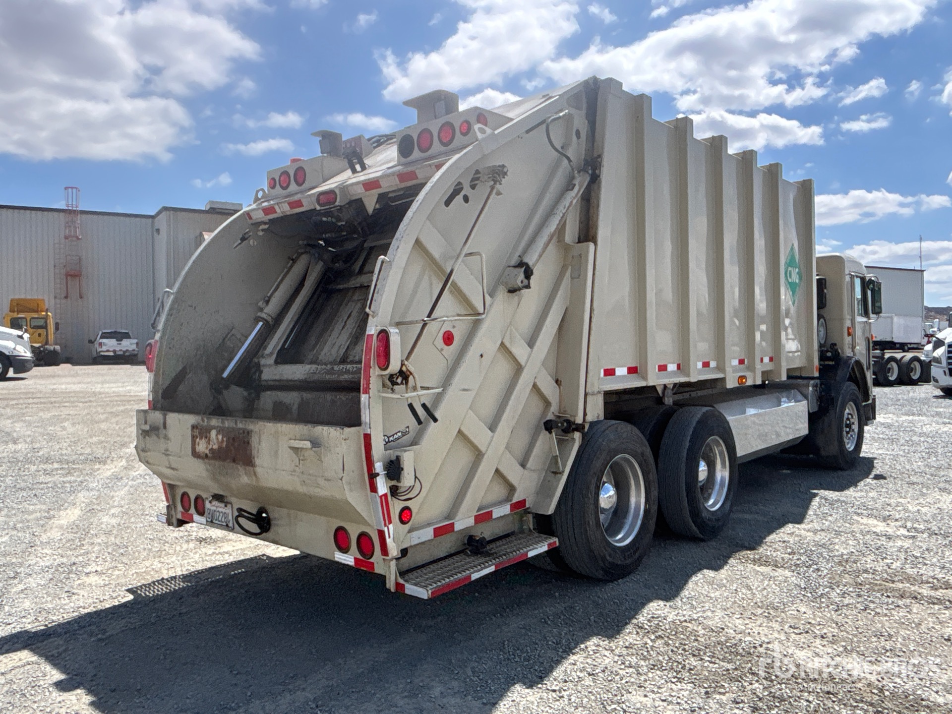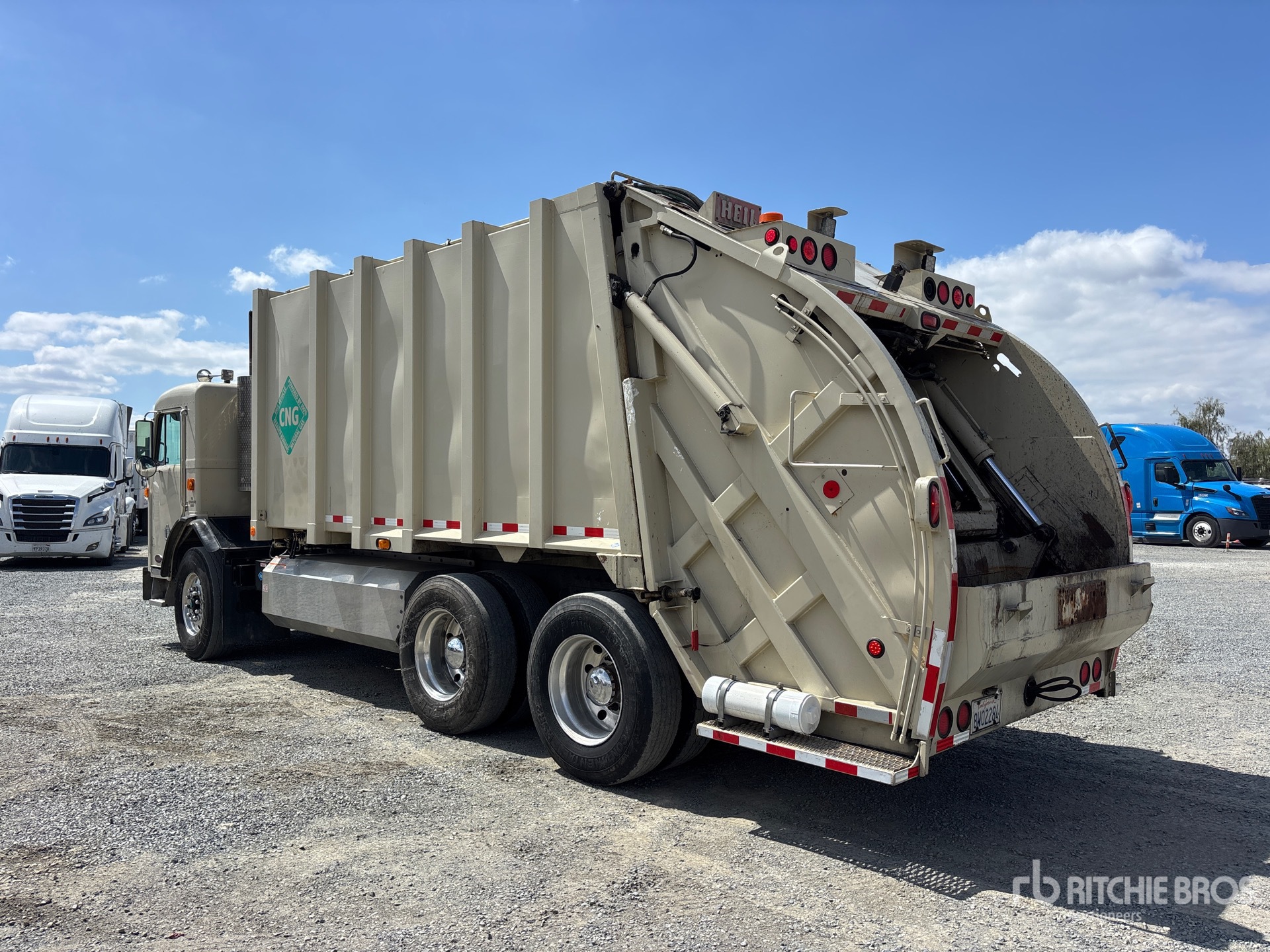 6 Cylinder Compressed Natural Gas (CNG) Engine, Engine Brake, Allison Automatic Transmission, Differential Lock, 20000 lb Front Axle, 38000 lb Rears, 5.25:1 Axle Ratio, 58000 lb GVWR, Aluminum Outer Wheels, 315/80R22.5 Front Tires, 11R22.5 Rear Tires, Hendrickson Haulmaax Rubber Suspension, 187 in Wheelbase, PTO, Heil Collection Body