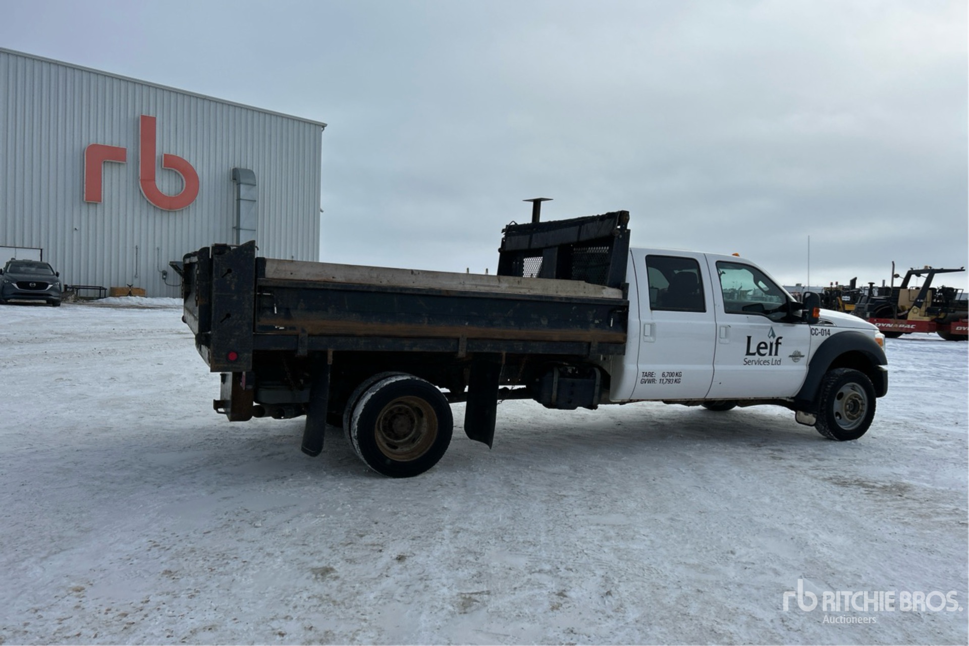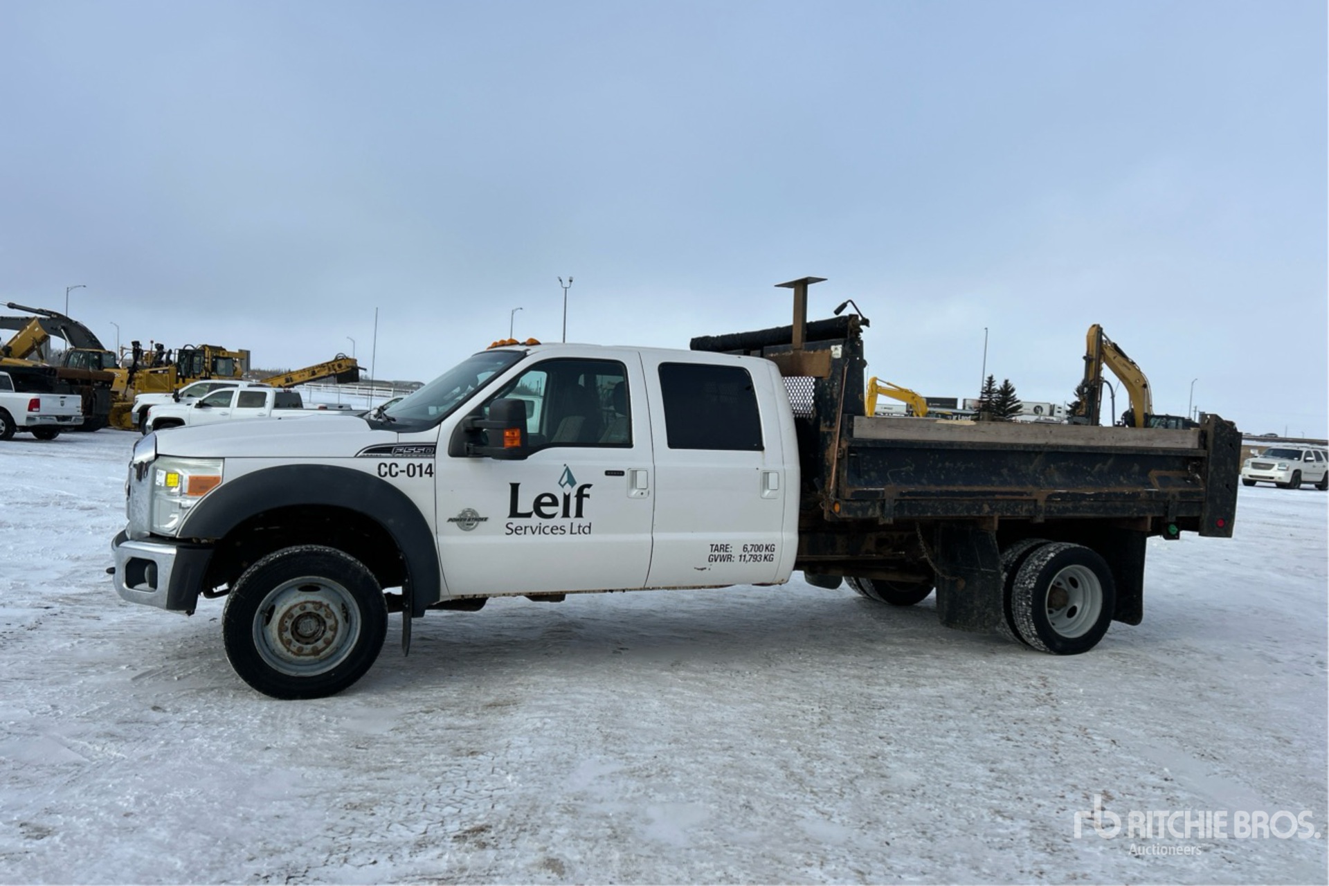 V8 6.7 L Diesel Engine, 2011 US EPA Label, CARB Compliant, Automatic Transmission, 7000 lb Front Axle, 14706 lb Rears, 19500 lb GVWR, Aluminum Wheels, 225/70R19.5, Spring Suspension, 200 in Wheelbase, DEL 11 ft 6 in Long x 2 ft 1 in High Body, Manual Roll Tarp