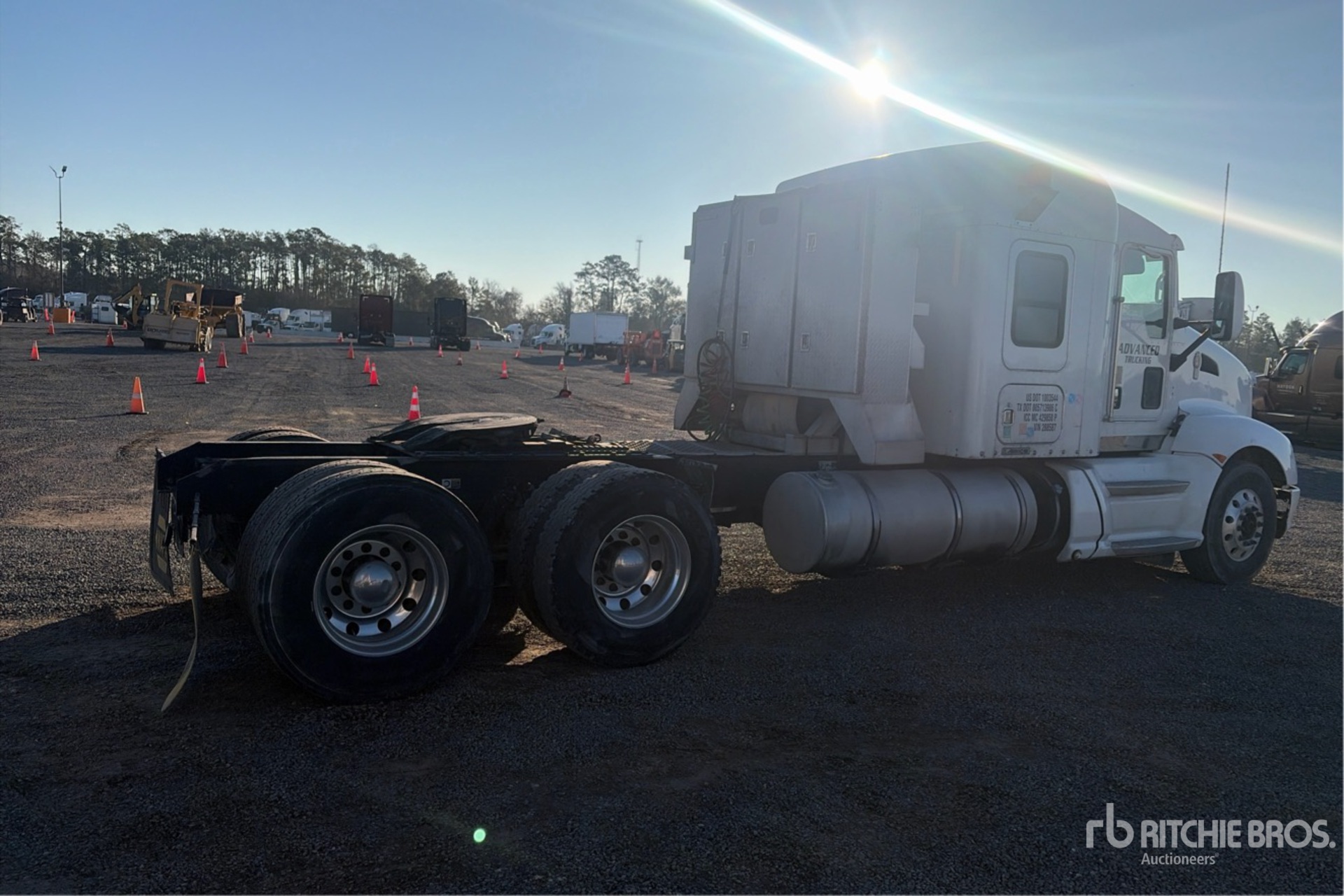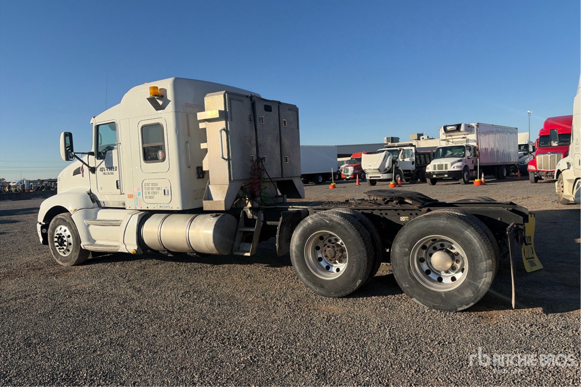 Cummins ISX15 485 hp Engine, 37406 Engine hrs, Eaton Fuller RTLO18913A 13-Speed Manual Transmission, 13200 lb Front Axle, 40000 lb Rears, 53200 lb GVWR, 72 in Mid Roof Sleeper Cab, 249 in Wheelbase, Air Suspension, Aluminum Wheels, 11R22.5, Air Sliding 5th Wheel, Dual Fuel Tanks, Headache Rack