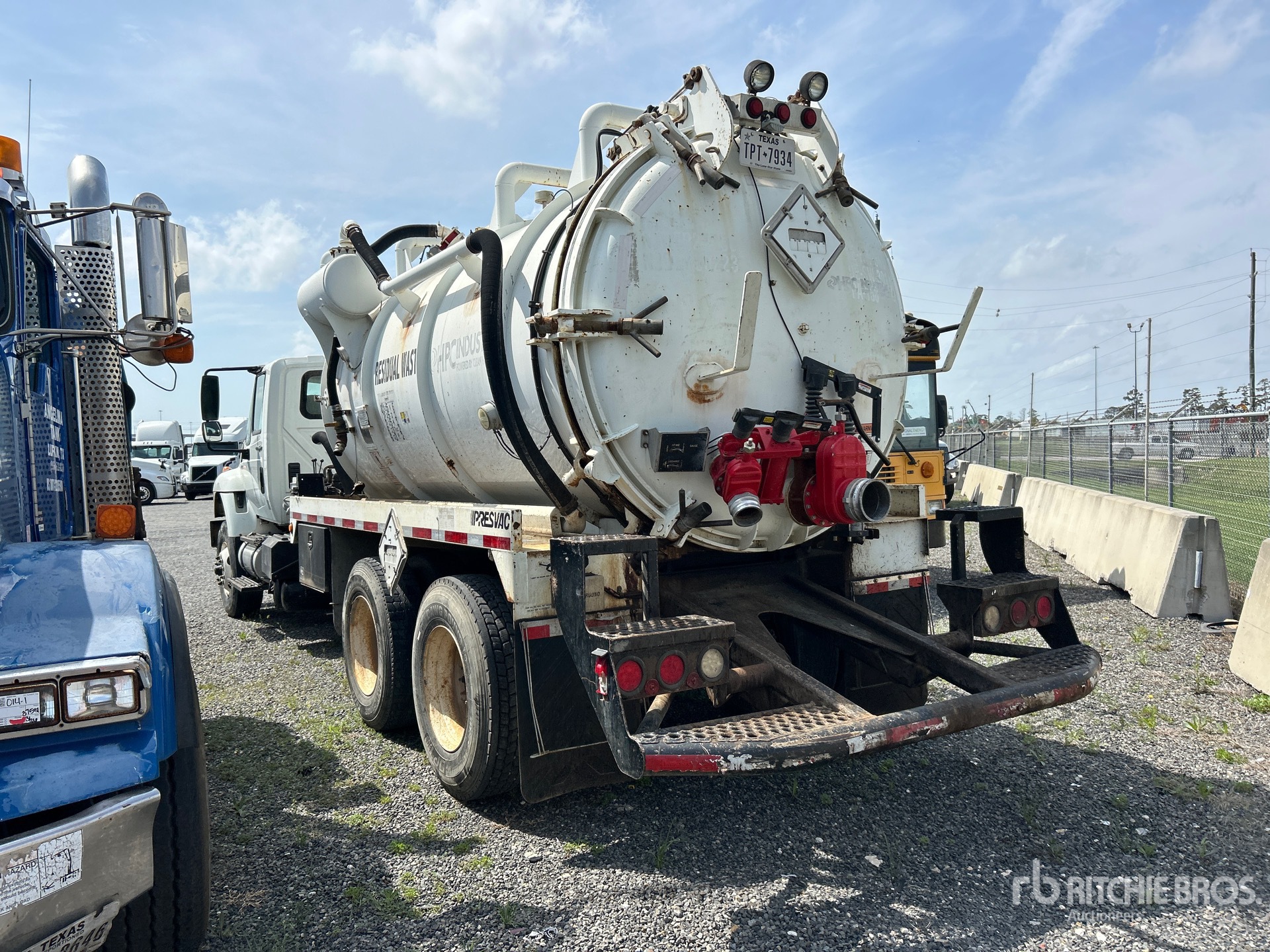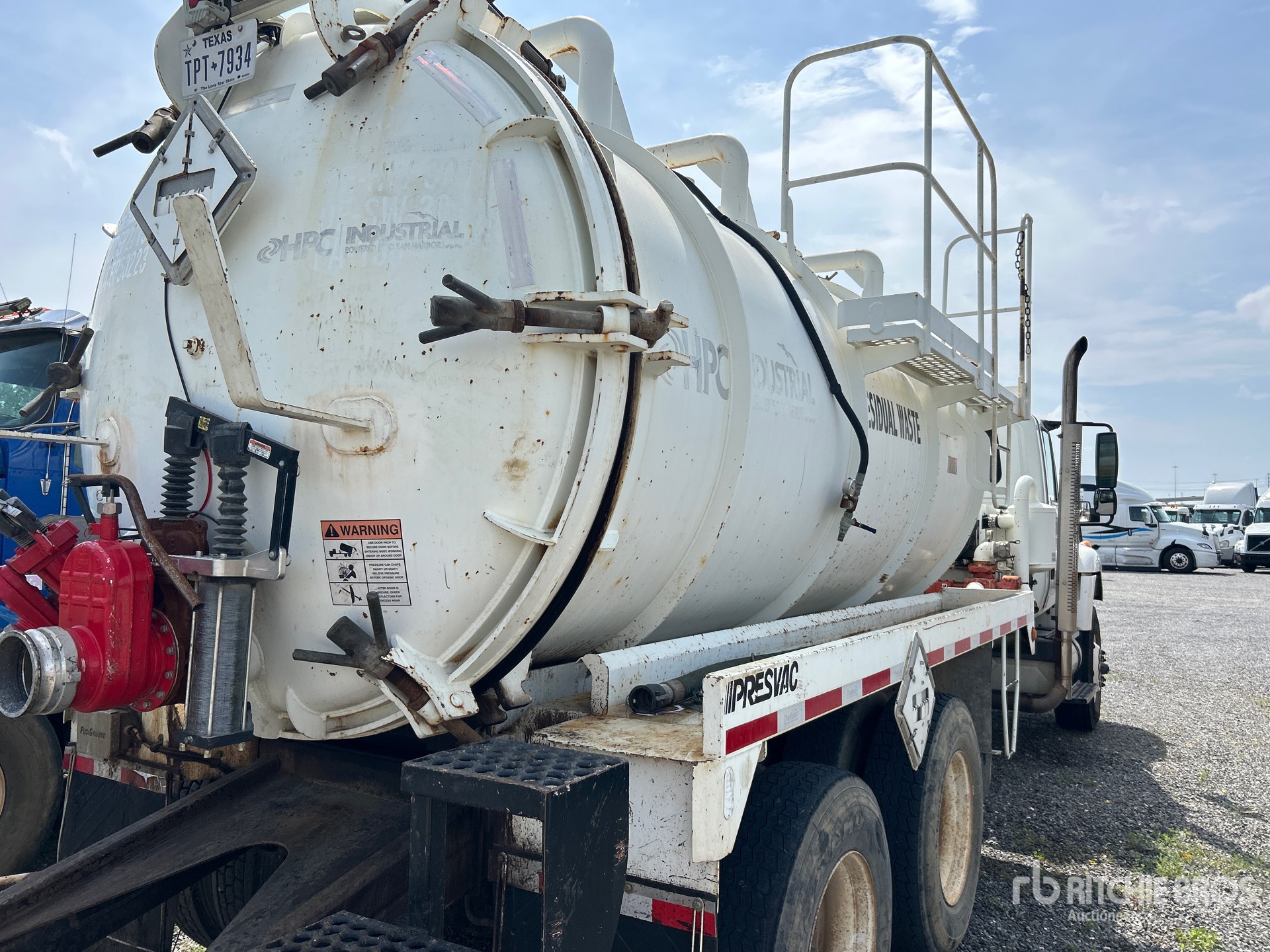 International Maxxforce 6 Cylinder Diesel Engine, 9111 Engine hrs, Eaton Fuller 8LL Manual Transmission, 16000 lb Front Axle, 40000 lb Rears, 56000 lb GVWR, 315/80R22.5 Front Tires, 11R22.5 Rear Tires, Dual Steering Boxes, Double Frame, Hendrickson Spring over Walking Beam Suspension, 240 in Wheelbase, PTO, Steel 3000 gal Debris Tank, Hoist, Full Open Tailgate, Manual Tailgate Locks