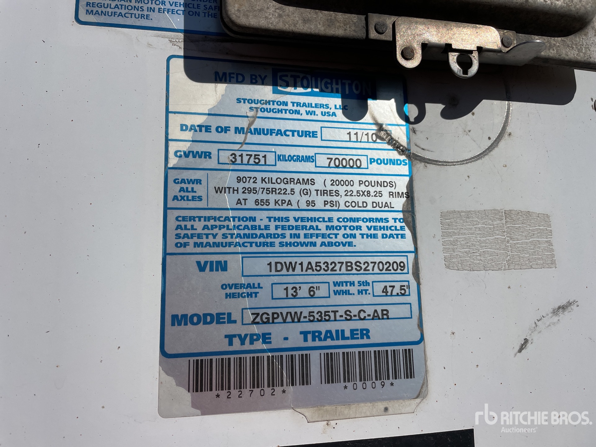 Air Ride Sliding Suspension, Side Skirts, Hardwood Floor, Swing Door, 295/75R22.5 Tires 70000 lb GVWR