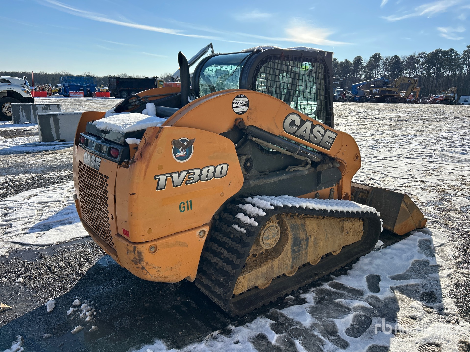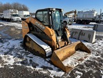 Enclosed Cab (Door missing), Joystick Steering, 18 in Track Belts, Hydraulic Coupler, 78 in Bucket