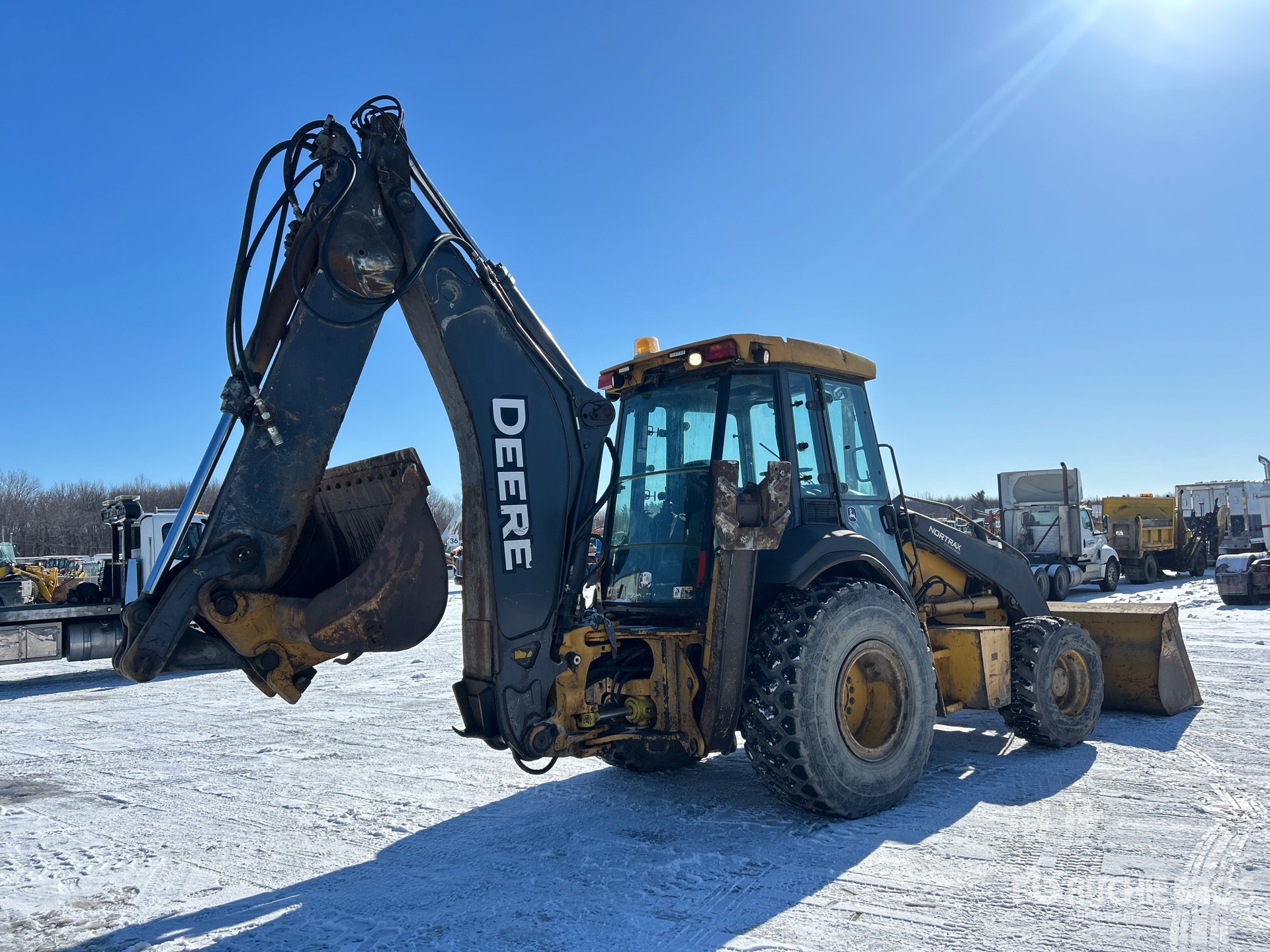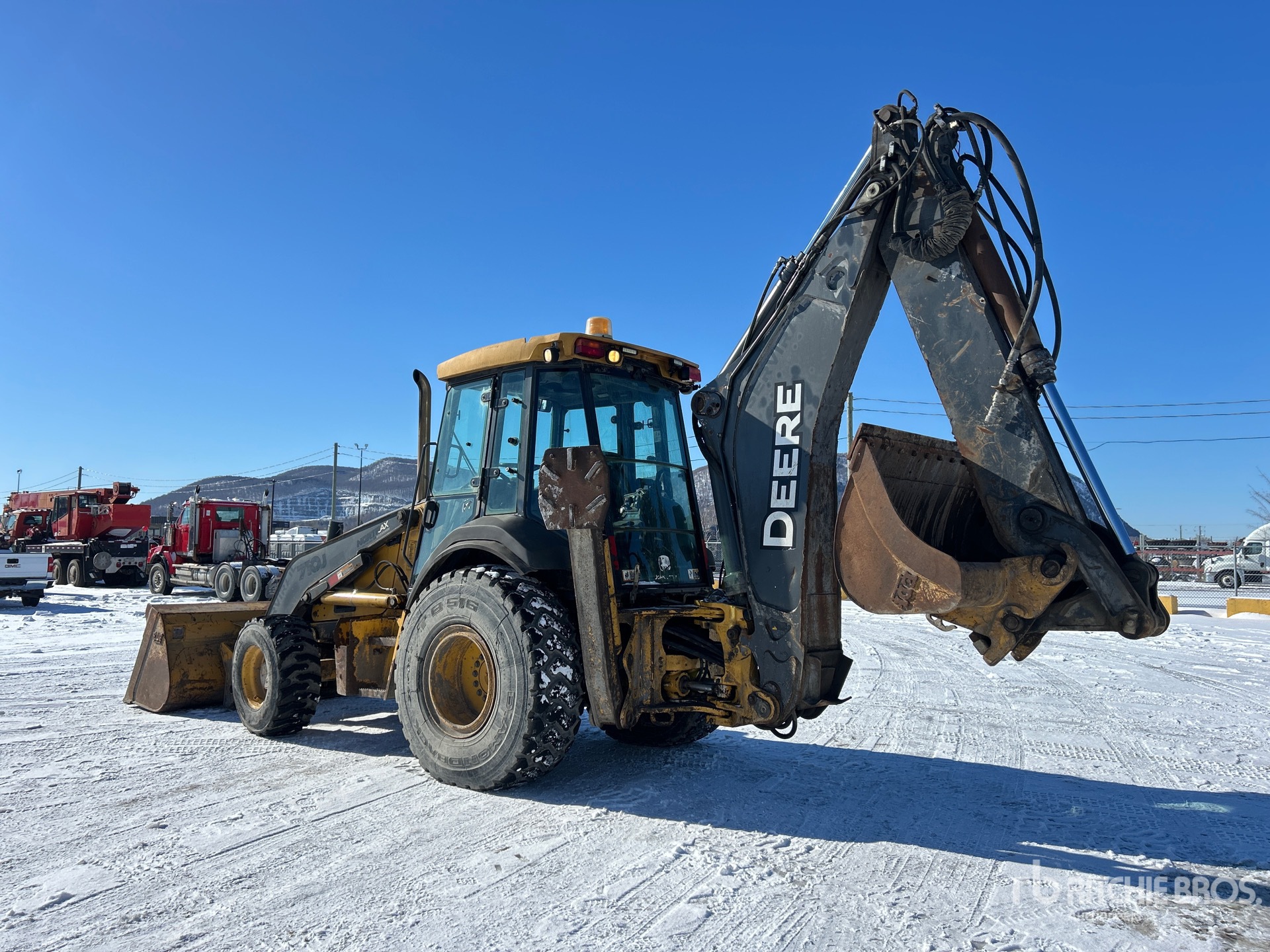 Enclosed Cab, Air Conditioner, Ride Control, Backhoe Pilot Controls, Control Pattern Changer, 2011 US EPA Label, Hydraulic Coupler, 96 in Loader Bucket, Extendable Stick, Quick Coupler, 61 in Backhoe Cleanup Bucket, "NOTICE-TO-US-BIDDERS: this asset is likely exempt from US import tariffs as it was manufactured in the US. Bidders are responsible for confirming with their customs broker."