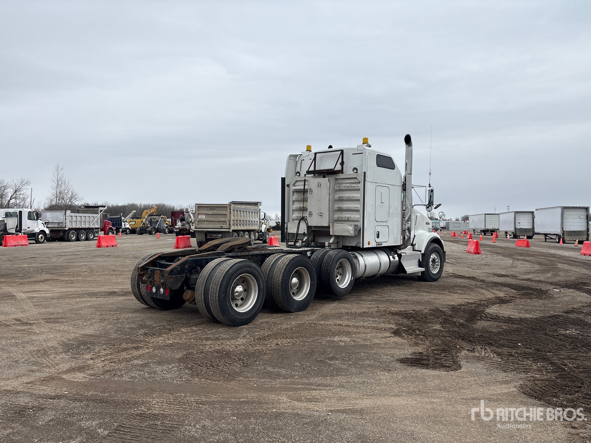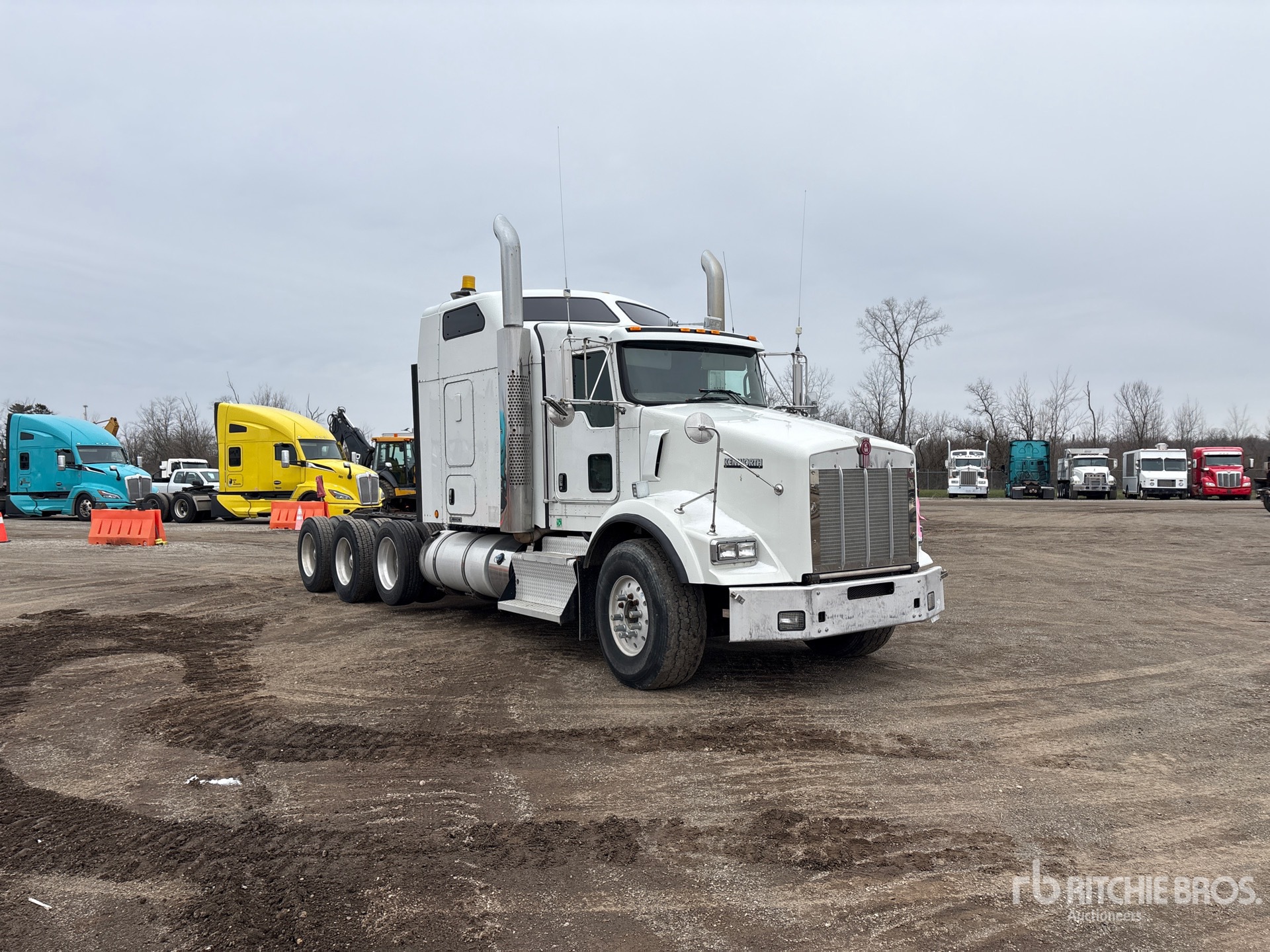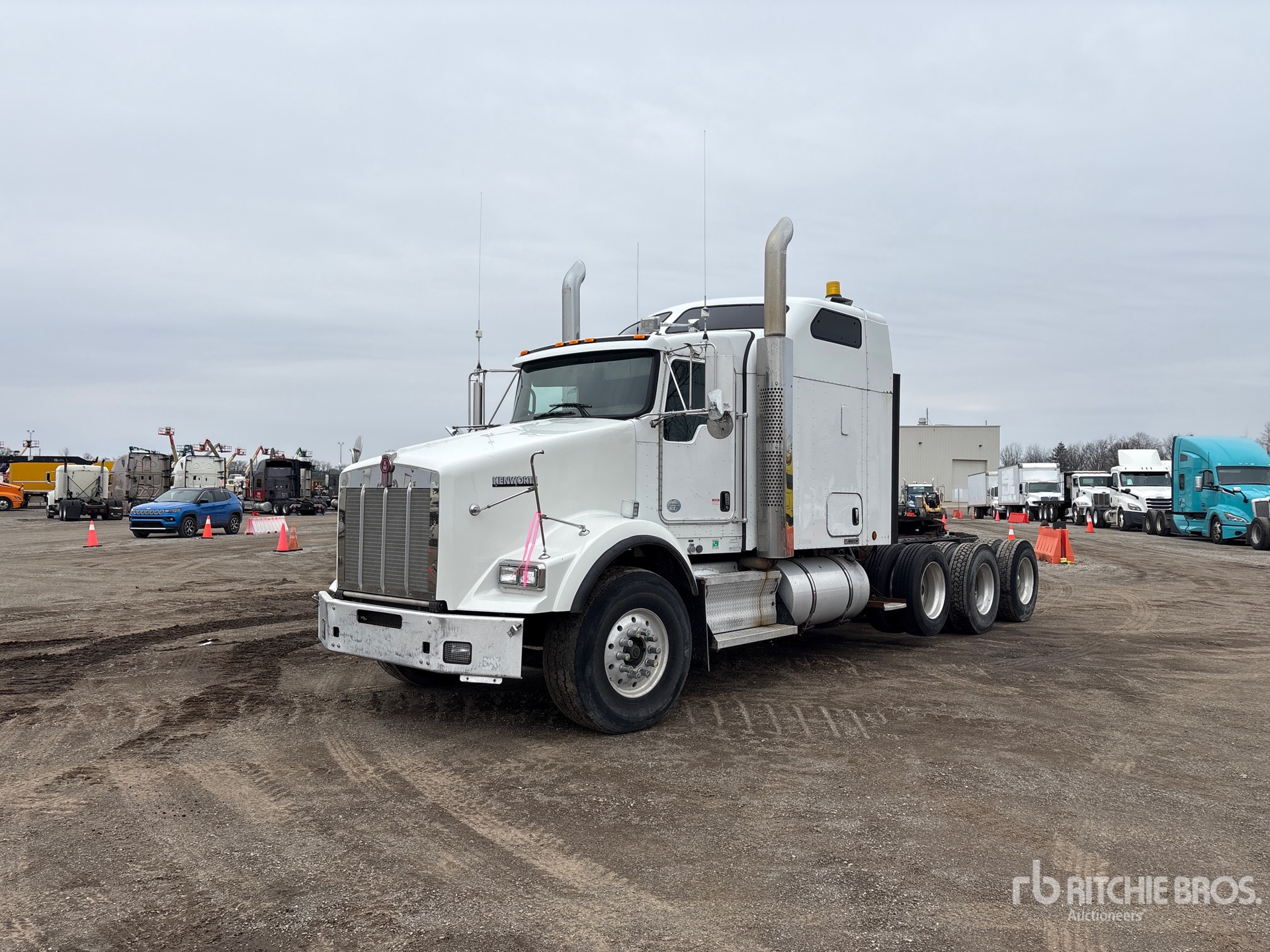 Cummins ISX 600 hp Engine, 2012 US EPA Label, 12662.5 Engine hrs, Eaton Fuller RTLO-18918B 18-Speed Manual, 14600 lb Front Axle, 23000 lb Rears, 75000 lb GVWR, 62 in Mid Roof Sleeper Cab, Air Suspension, Air Lift Pusher Axle, Aluminum Outer Wheels, 425/65R22.5 Front Tires, 11R22.5 Rear Tires, Air Sliding 5th Wheel, Dual Fuel Tanks, Headache Rack, Lowboy Ramps