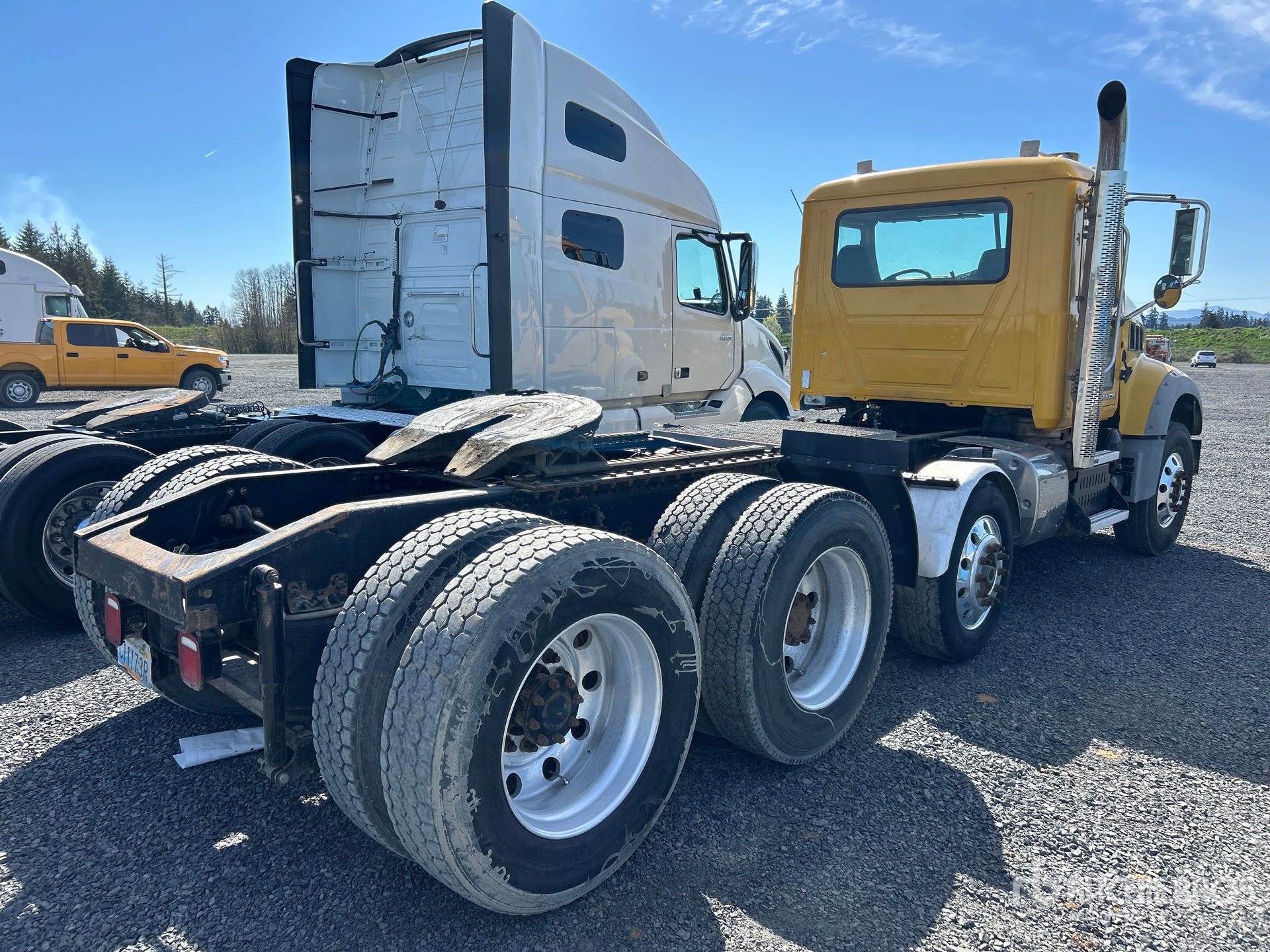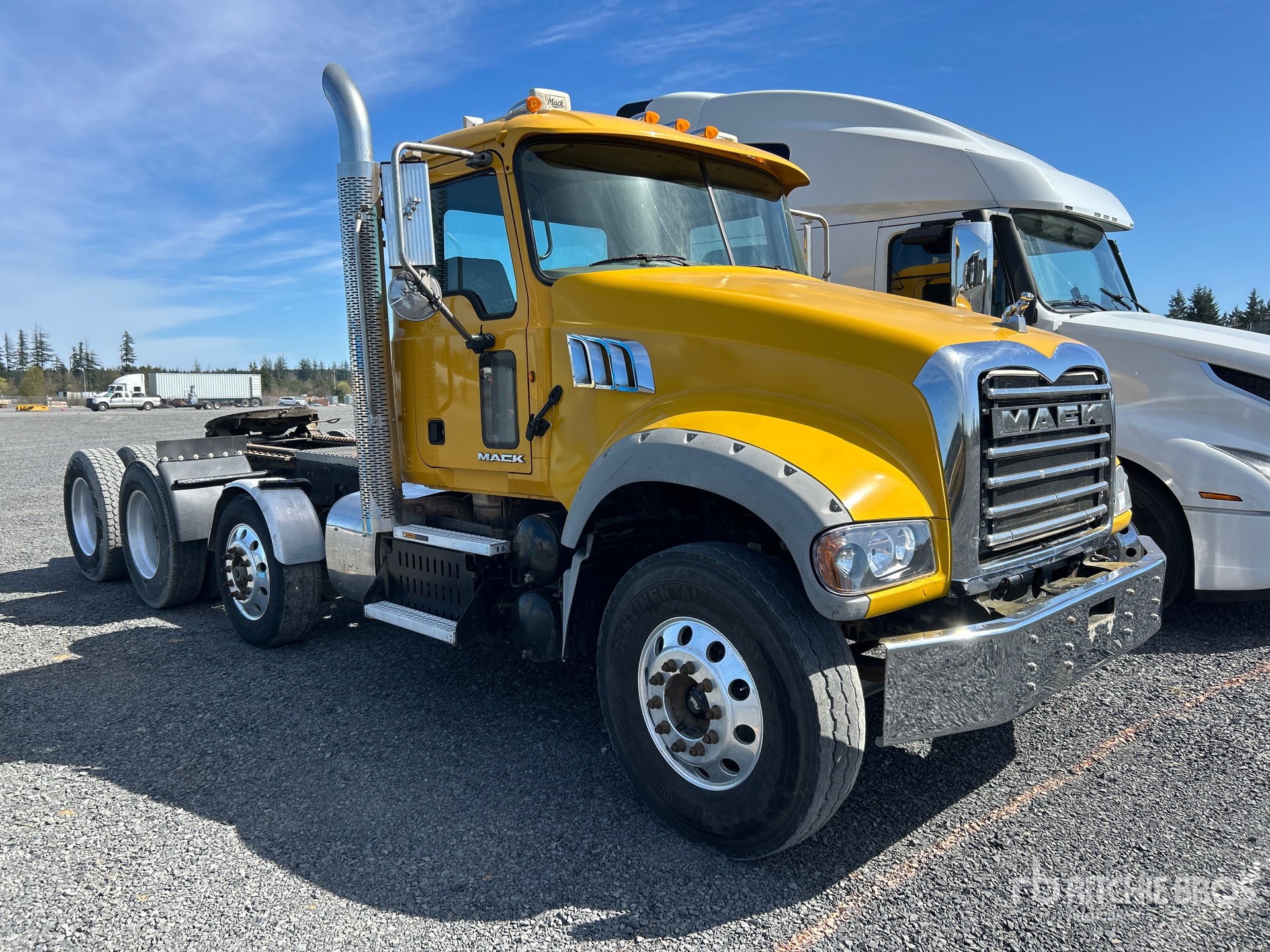 Mack Engine, 19585 Engine hrs, Allison Automatic Transmission 12000 lb Front Axle, 44000 lb Rears, 56000 lb GVWR, Engine Brake, 234 in Wheelbase, Air Suspension, Air Lift Pusher Axle, Aluminum Wheels, 12R22.5 Front Tires, 11R24.5 Rear Tires, Air Sliding 5th Wheel