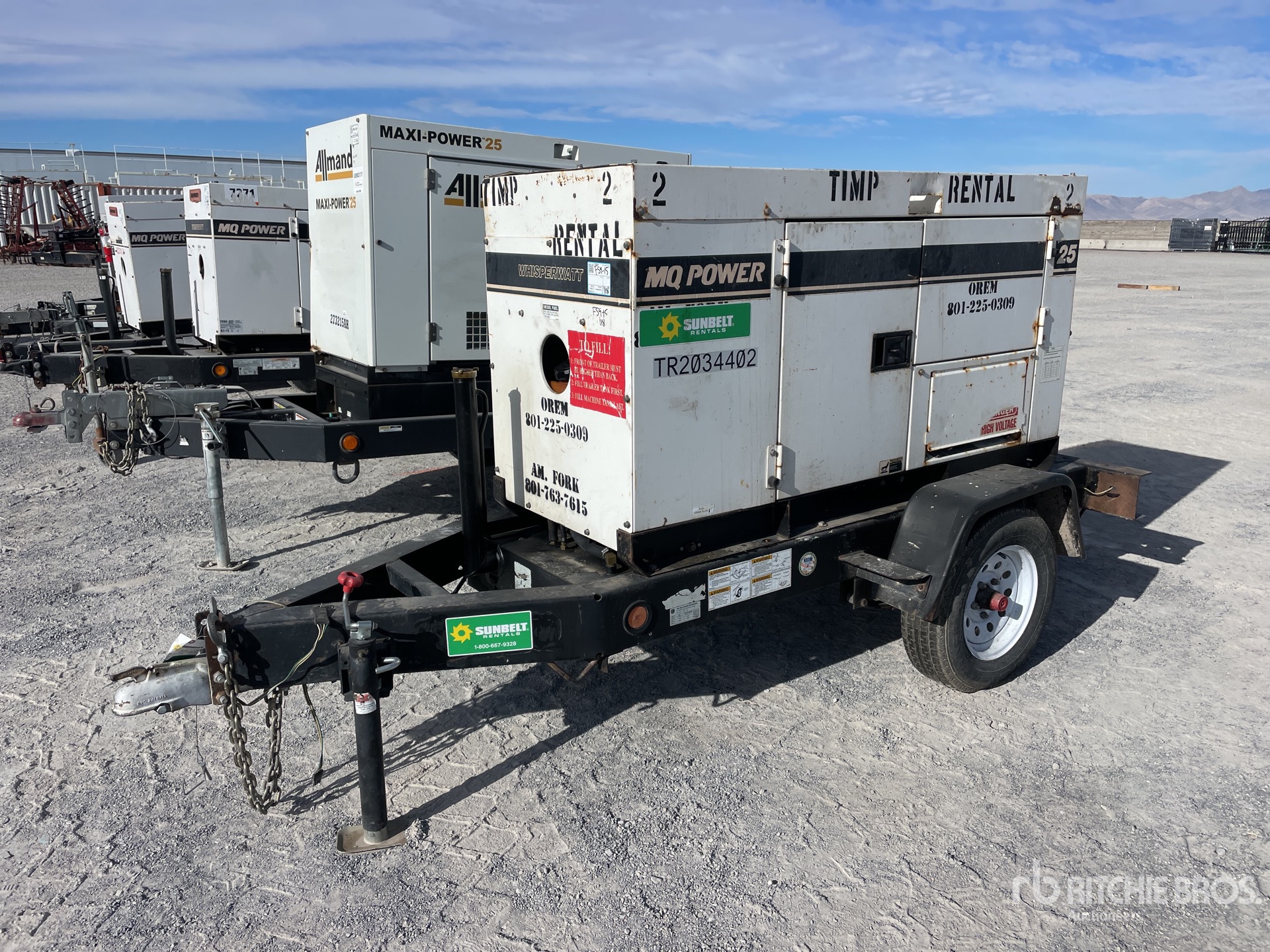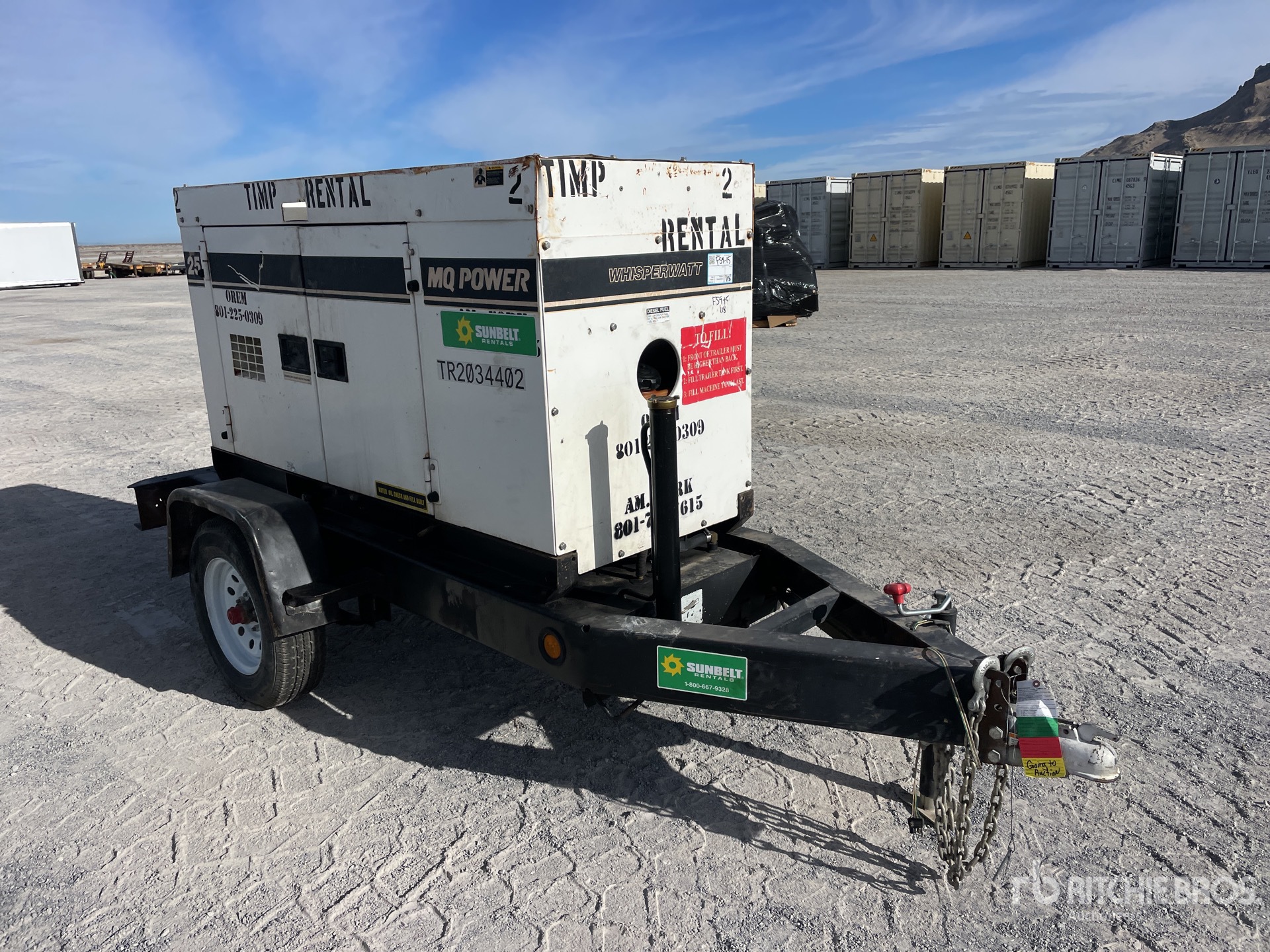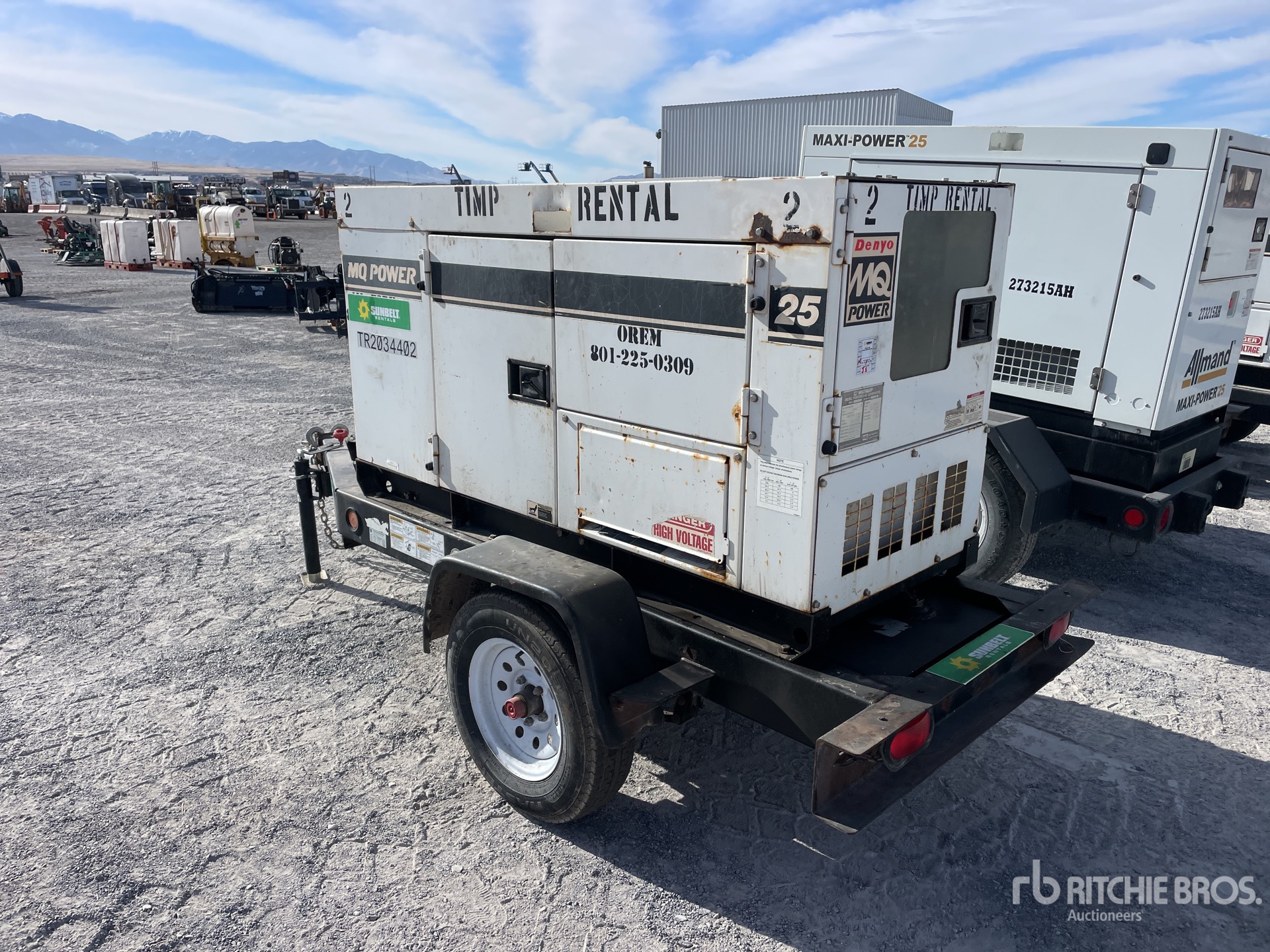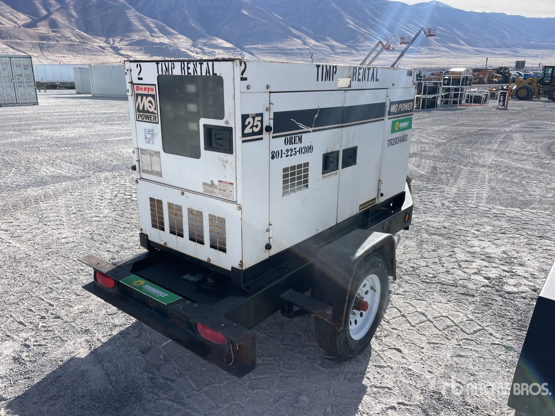 2012 US EPA Label, Isuzu 4LE2 4 Cylinder 2.2 L Diesel Engine, 25 kVA/20 kW Rated 3 Phase Output, 240 V / 480 V Rated Voltage, 14.4 kVA,/14.4 kW, Rated Single Phase Output, 240 V / 120 V Rated Voltage, Ball Hitch Carrier Trailer, Electric Brakes