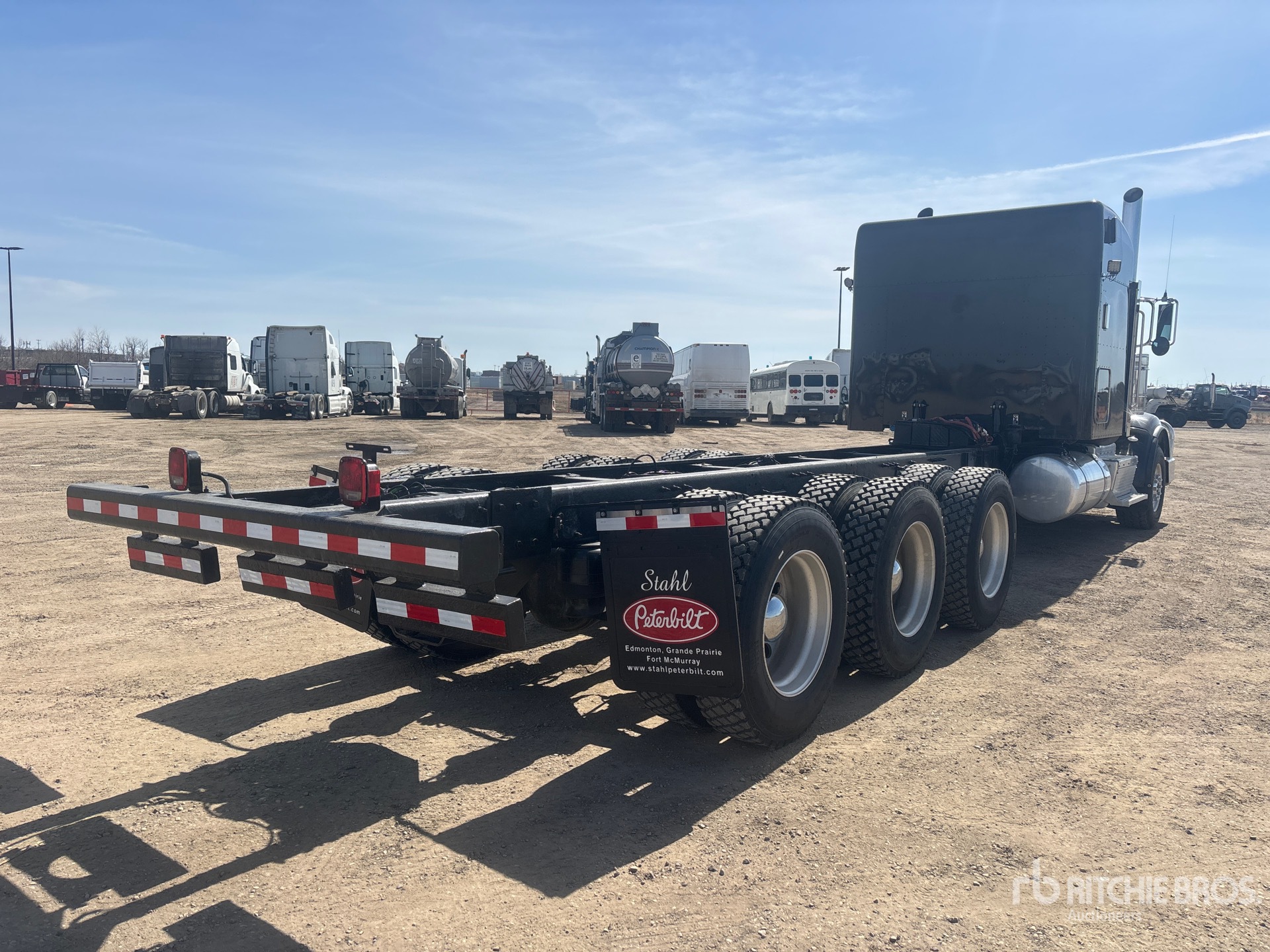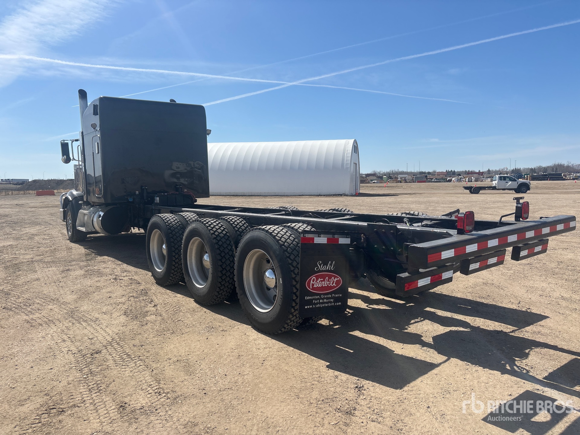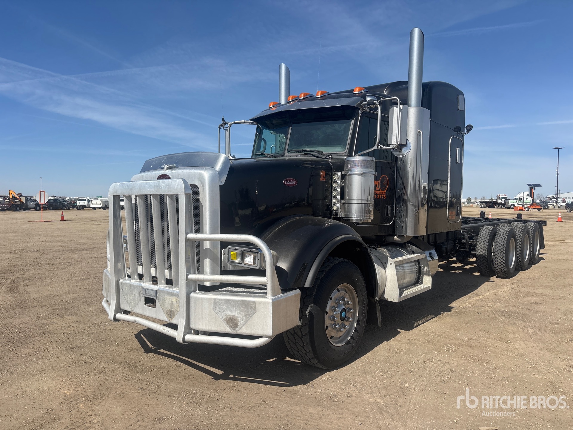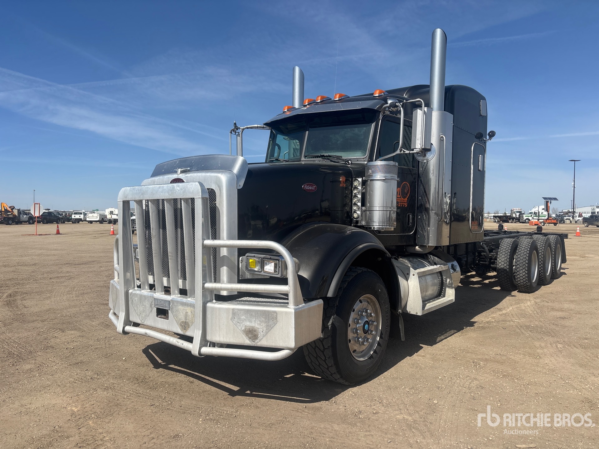 Cummins ISX15 6 Cylinder 15 L Diesel 550 hp Engine, 2011 US EPA Label, Engine Coolant Heater, 32577 Engine hrs, Engine Brake, Eaton Fuller 18-Speed Manual Transmission, Double Differential Locks, 18740 lb Front Axle, 57990 lb Rears, 76740 lb GVWR, 63 in Sleeper Cab, 385/65R22.5 Front Tires, 11R24.5 Rear Tires, Air Ride Suspension, 320 in Wheelbase, 175 in Cab to Axle, 305 in Cab to End of Frame