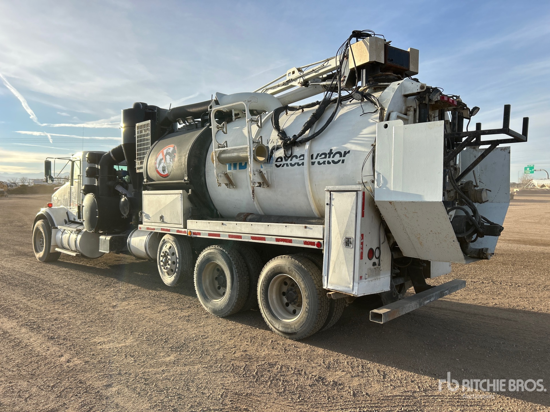 Cummins ISX 6 Cylinder 15 L Diesel 485 hp Engine, 2009 US EPA Label, 21045 Engine hrs, Engine Brake, Eaton Fuller FRO-16210C 10-Speed Manual Transmission, 20000 lb Front Axle, 46000 lb Rears, Dana D46-170HP Drive Axles, 4.56:1 Axle Ratio, 78350 lb GVWR, Aluminum Wheels, 425/65R22.5 Front Tires, 11R22.5 Rear Tires, Dual Steering Boxes, Double Frame, Hendrickson Spring over Walking Beam Suspension, 310 in Wheelbase, PTO, Steel Debris Tank, Fresh Water Tank, Hydraulic Lift Tailgate, Hydraulic Tailgate Locks, Telescopic Boom, 8 in Suction Hose, PTO Driven Pump, Ingersoll Rand SIAV 8702 Blower w/ 992 hrs, Boiler