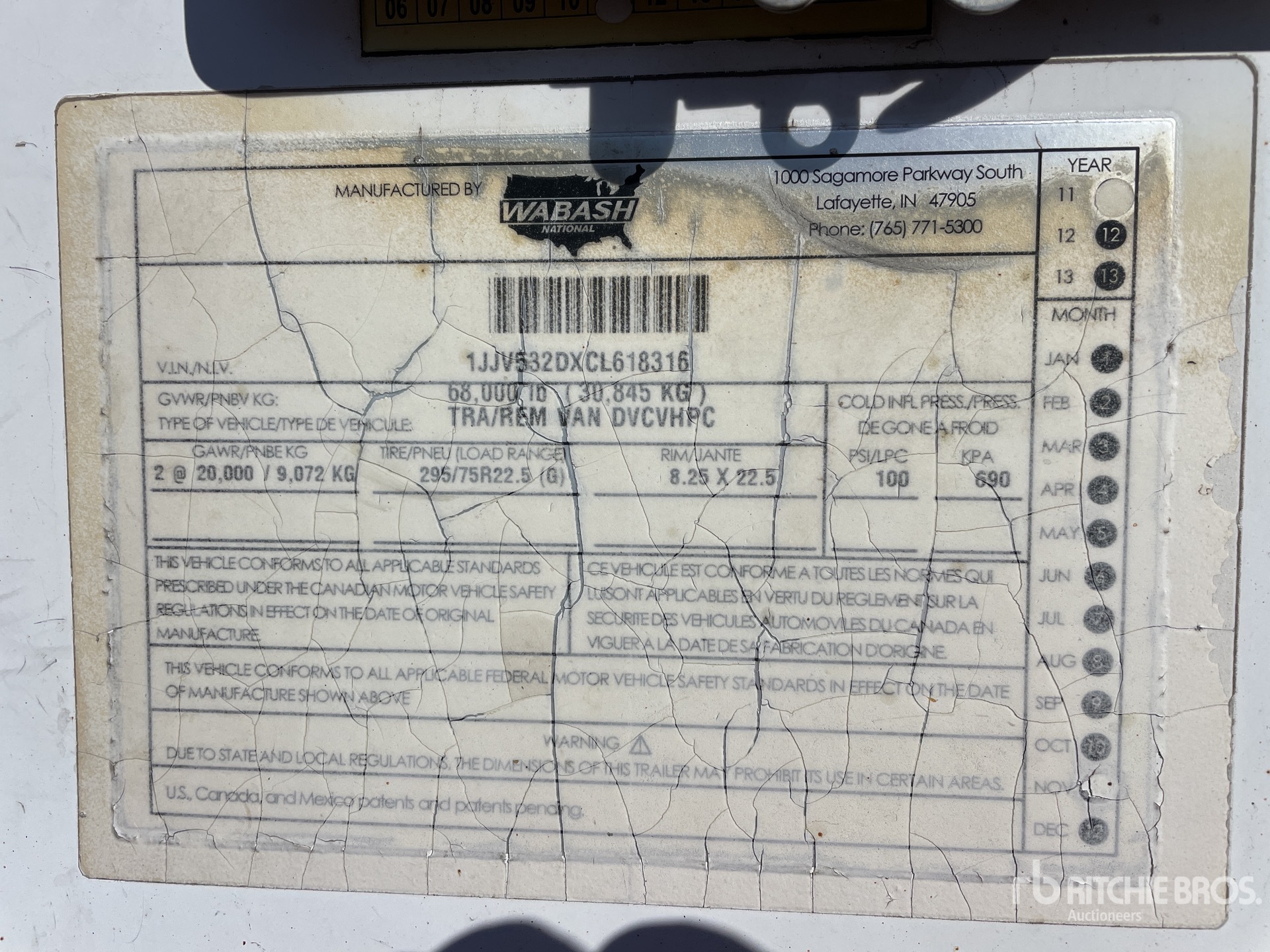 Air Ride Sliding Suspension, Hardwood Floor, Swing Door, 295/75R22.5 Tires 68000 lb GVWR
