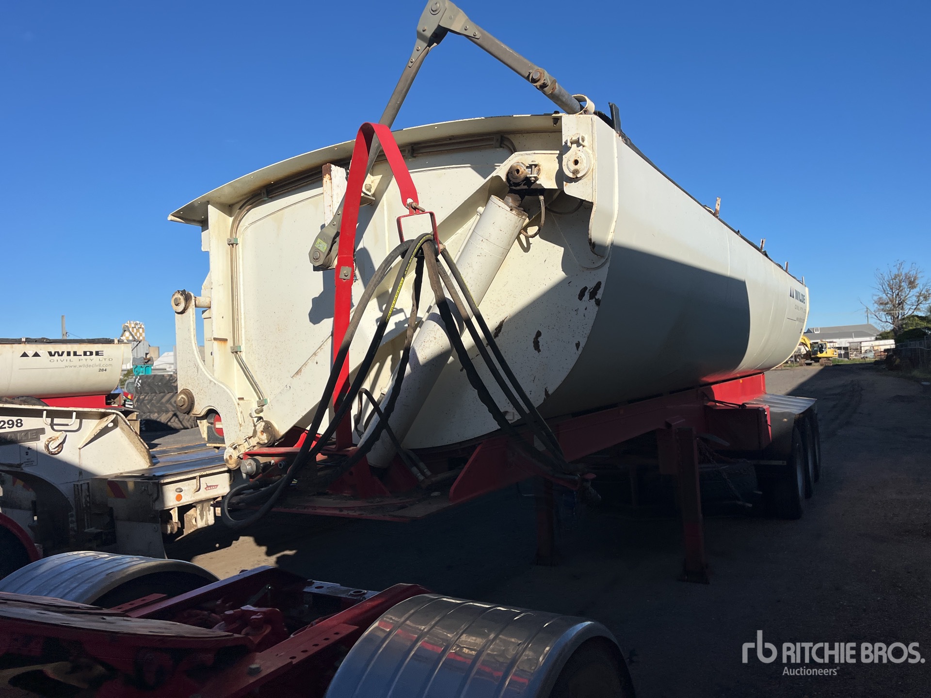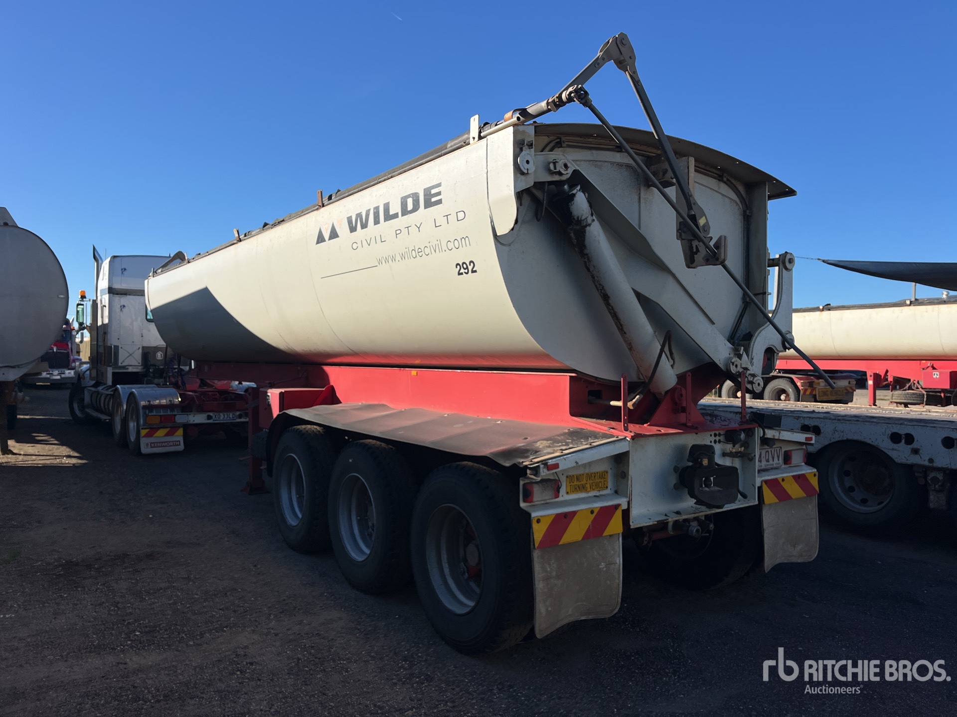 Spring Suspension, Ringfeder, Dumps to Right Side, 1600 mm Side Walls, Manual Roll Tarp, 11R22.5 Tires, ATM 45 t, equipment-from-wilde-civil