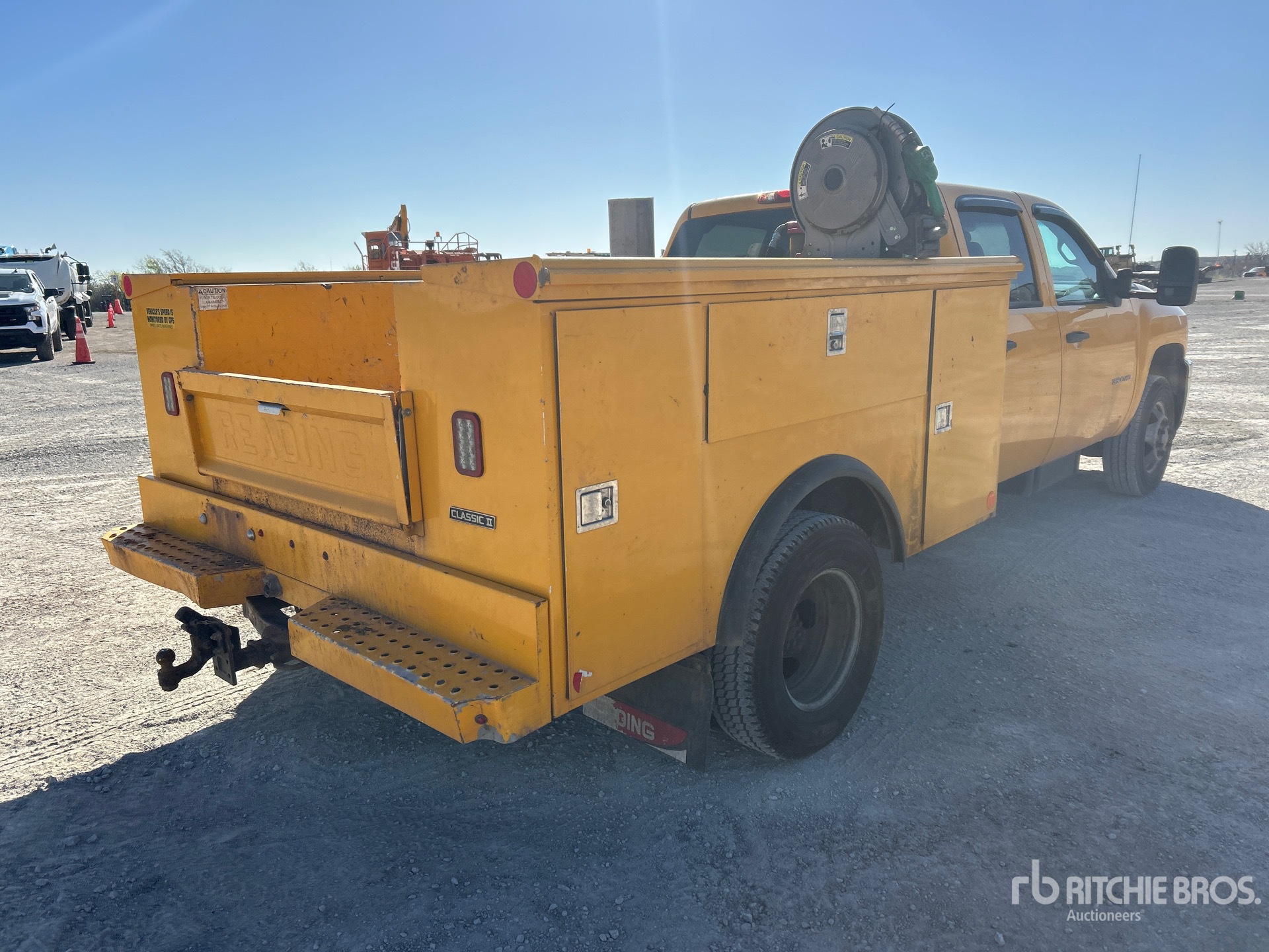 GM V8 6.6 L Diesel Engine, 2013 US EPA Label, Automatic Transmission, 5600 lb Front Axle, 9375 lb Rears, 13025 lb GVWR, 235/80R17, Spring Suspension, 168 in Wheelbase, Reading CLS098DRW1BA002770 8 ft 6 in Body, Fuel Tank Hose Reel 3,000 Watt Inverter