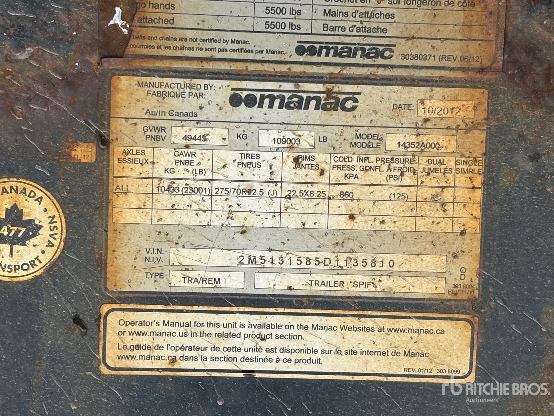 Le descrizioni dettagliate degli articoli non sono complete, Ritchie Bros. Auctioneers non ha effettuato alcuna ispezione delle componenti dell'articolo, salvo quelle espressamente indicate di seguito. Salvo espressamente indicato, non verrà fornita alcuna dichiarazione o garanzia, espressa o implicita, riguardante il funzionamento dell'articolo e delle sue componenti, incluso descrizioni o garanzie relative a funzionamento, conformità o osservanza di standard o requisiti di sicurezza eventualmente previsti da organi di vigilanza o competenti, dichiarazioni di idoneità o commerciabilità. Si raccomanda di prendere personalmente visione di ogni componente dell'articolo in modo accurato prima di fare un'offerta.