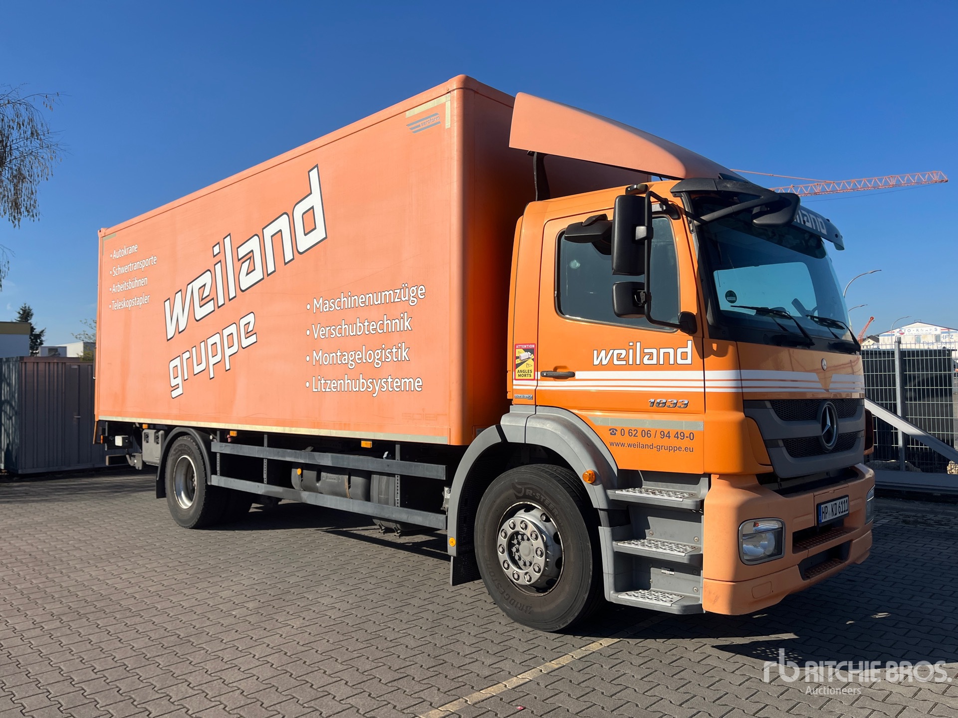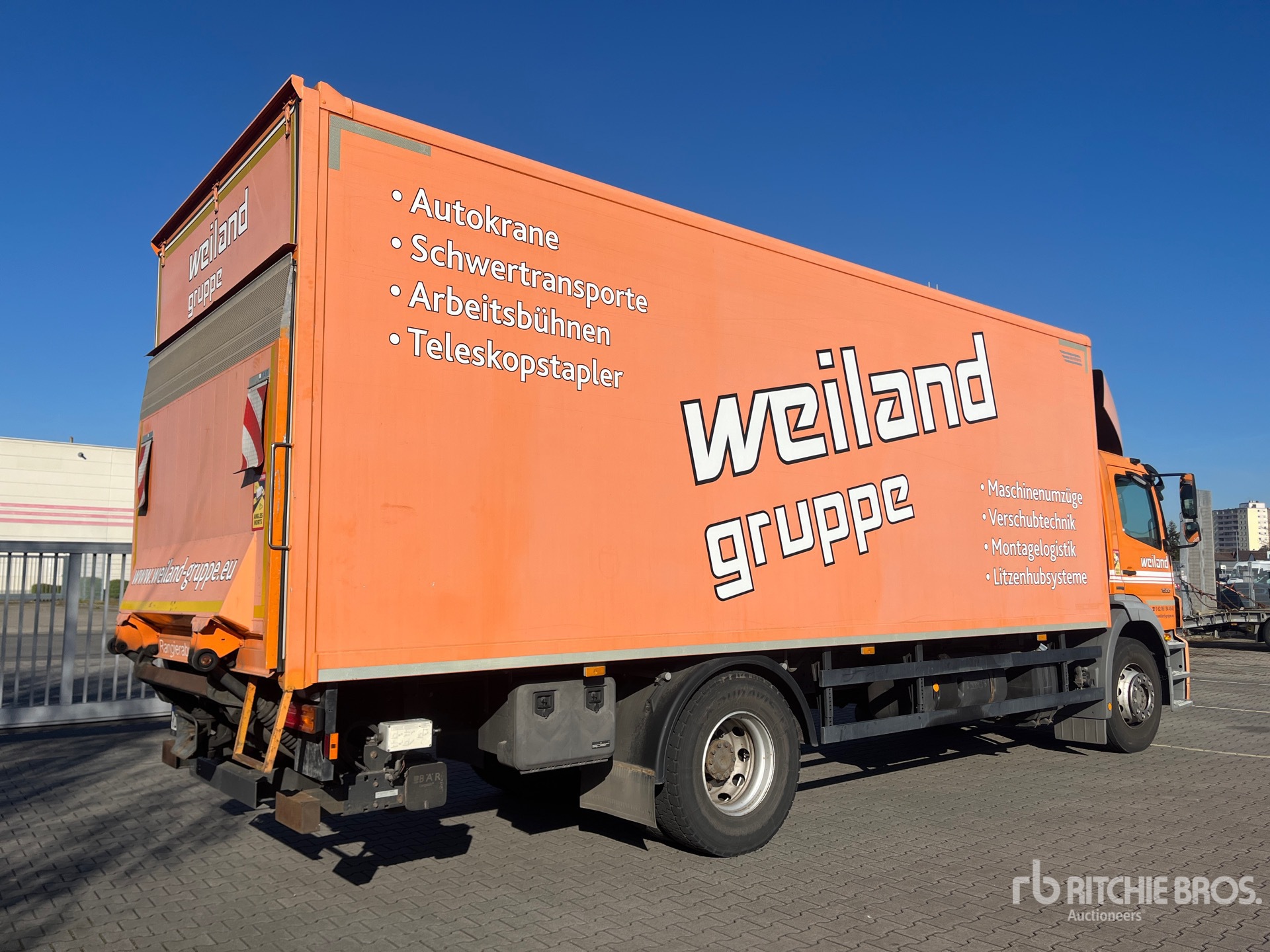 Diesel Engine, Requires AdBlue, 3623 Engine hrs, Exhaust Brake, 8-Speed Manual Transmission, Left Hand Drive, 7100 kg Front Axle, 11500 kg Rears, 18000 kg GVWR, 295/80R22.5, Air Ride Suspension, 5190 mm Wheelbase, 2013 Spier 1KRat4 7240 mm Body, Hydraulic Lift Gate, W/ Shelves, Workbench
