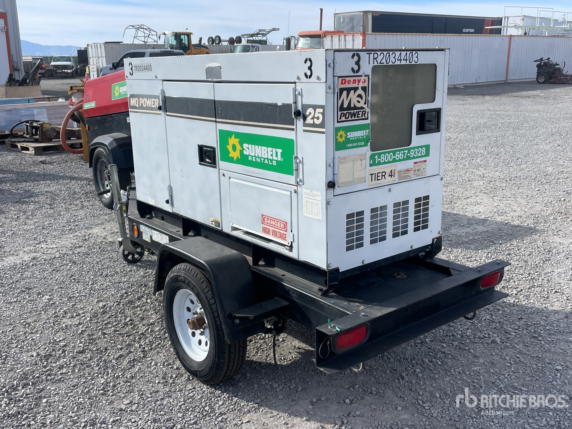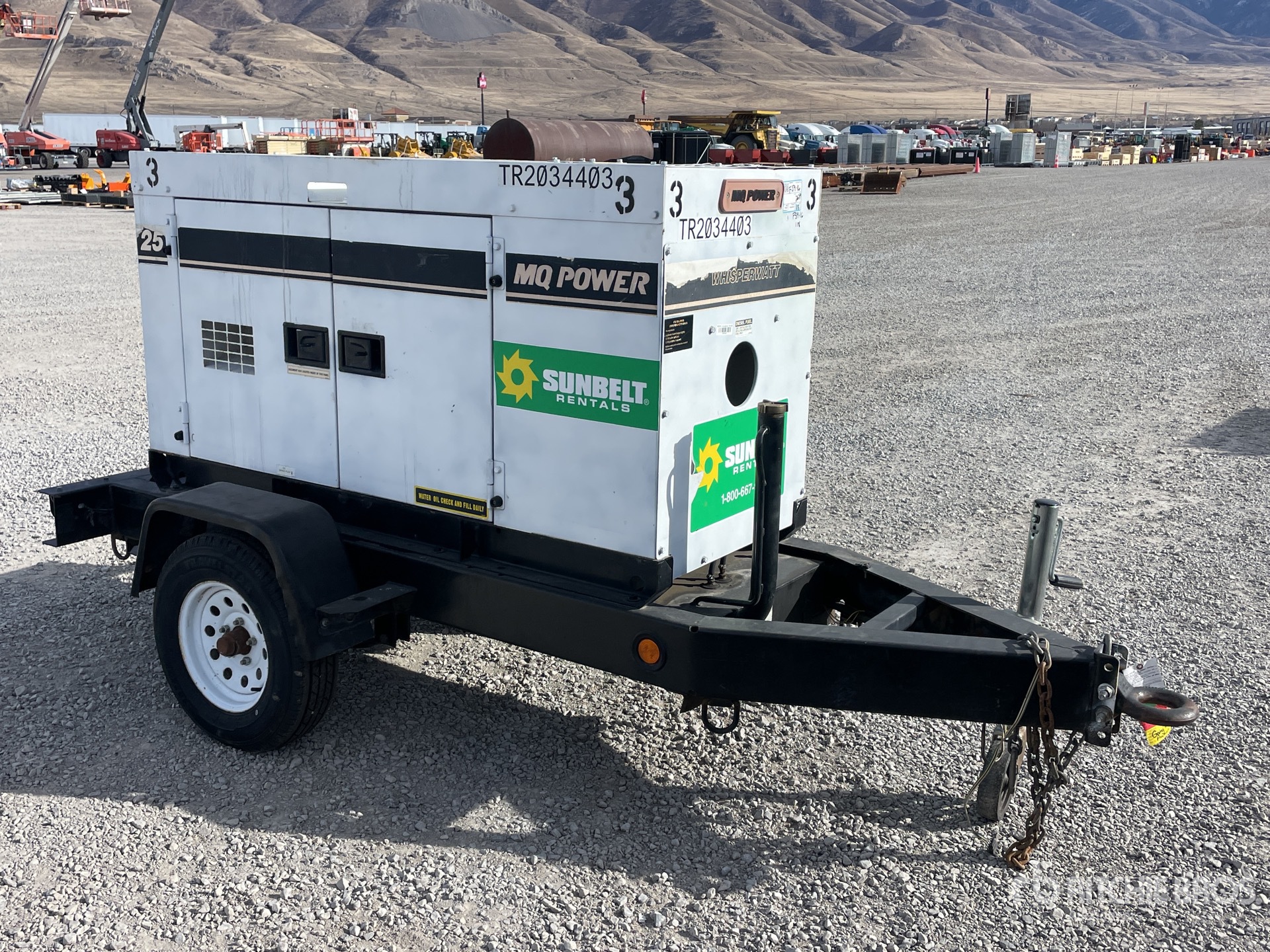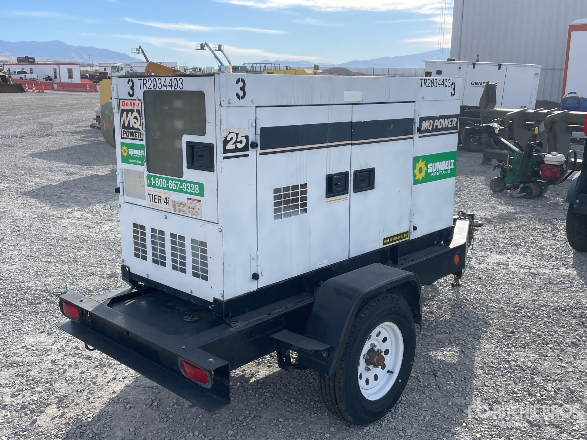 Isuzu 4LE2 4 Cylinder 2.2 L Diesel Engine, 25 kVA/20 kW Rated 3 Phase Output, 240 V / 480 V Rated Voltage, 14.4 kVA,/14.4 kW, Rated Single Phase Output, 240 V / 120 V Rated Voltage, Lunette Ring Carrier Trailer, Electric Brakes