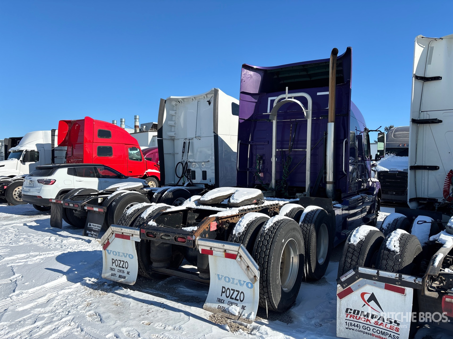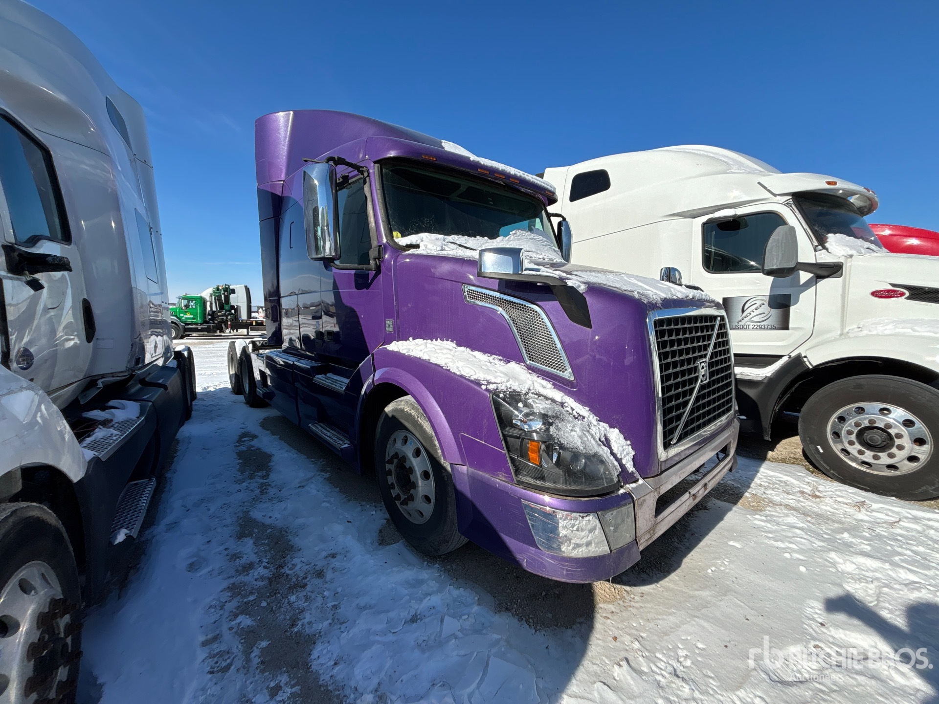 Volvo D13H 500 hp Engine, 2012 US EPA Label, 24669.6 Engine hrs, Volvo ATO2612D 12-Speed Automated Transmission, 12500 lb Front Axle, 38000 lb Rears, 50500 lb GVWR, Engine Brake, 61 in Mid Roof Sleeper Cab, 226 in Wheelbase, Air Suspension, Aluminum Wheels, 275/80R22.5 Front Tires, 295/75R22.5 Rear Tires, Air Sliding 5th Wheel, Dual Fuel Tanks