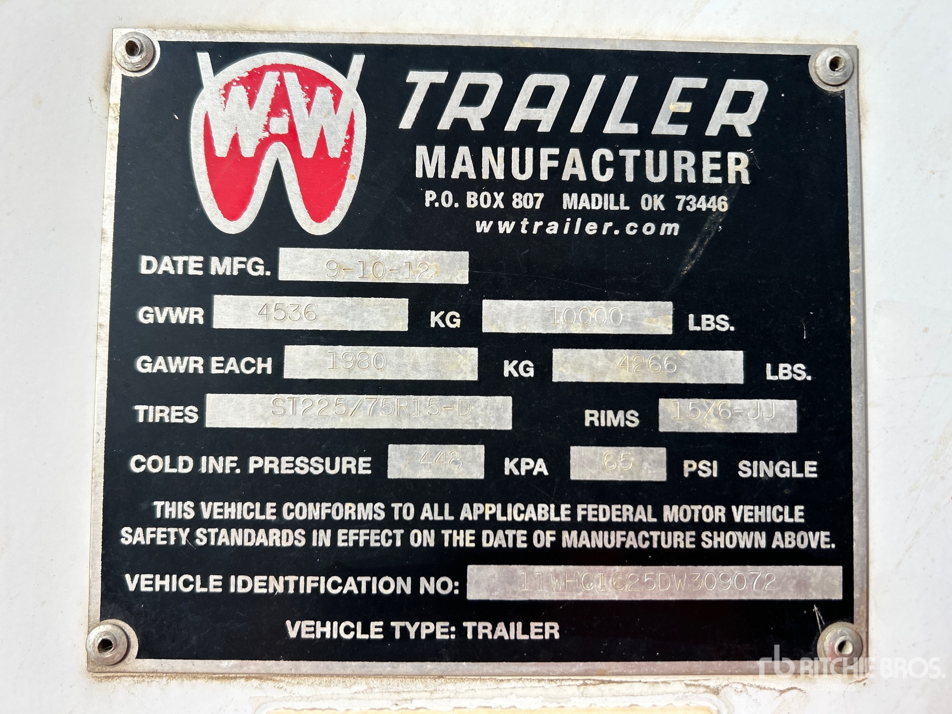 Ball Hitch, Torsion Axle, 90 in Deck Width, 94 in Overall Width, Side Door, 225/75R15 Tires, 10000 lb GVWR