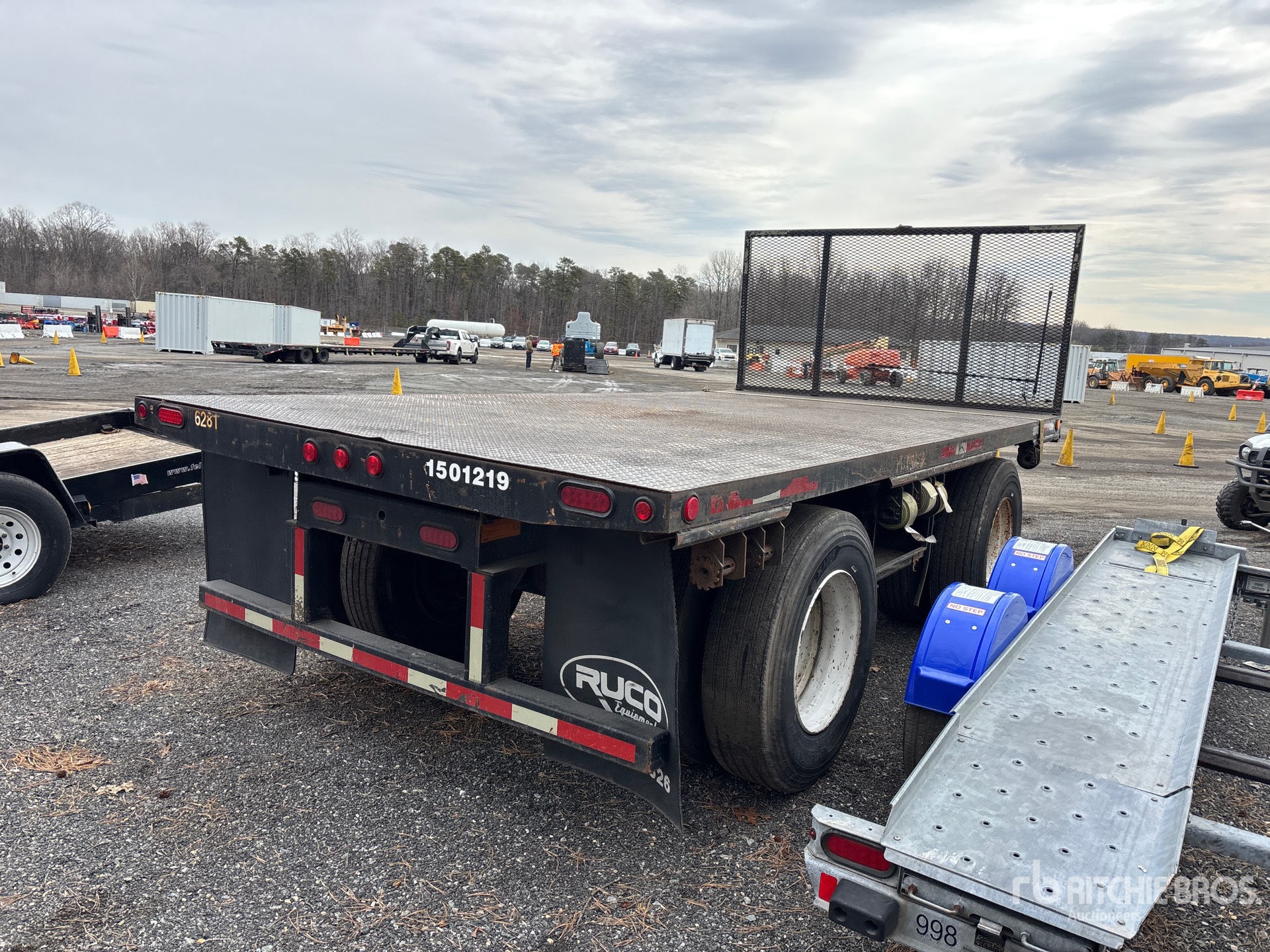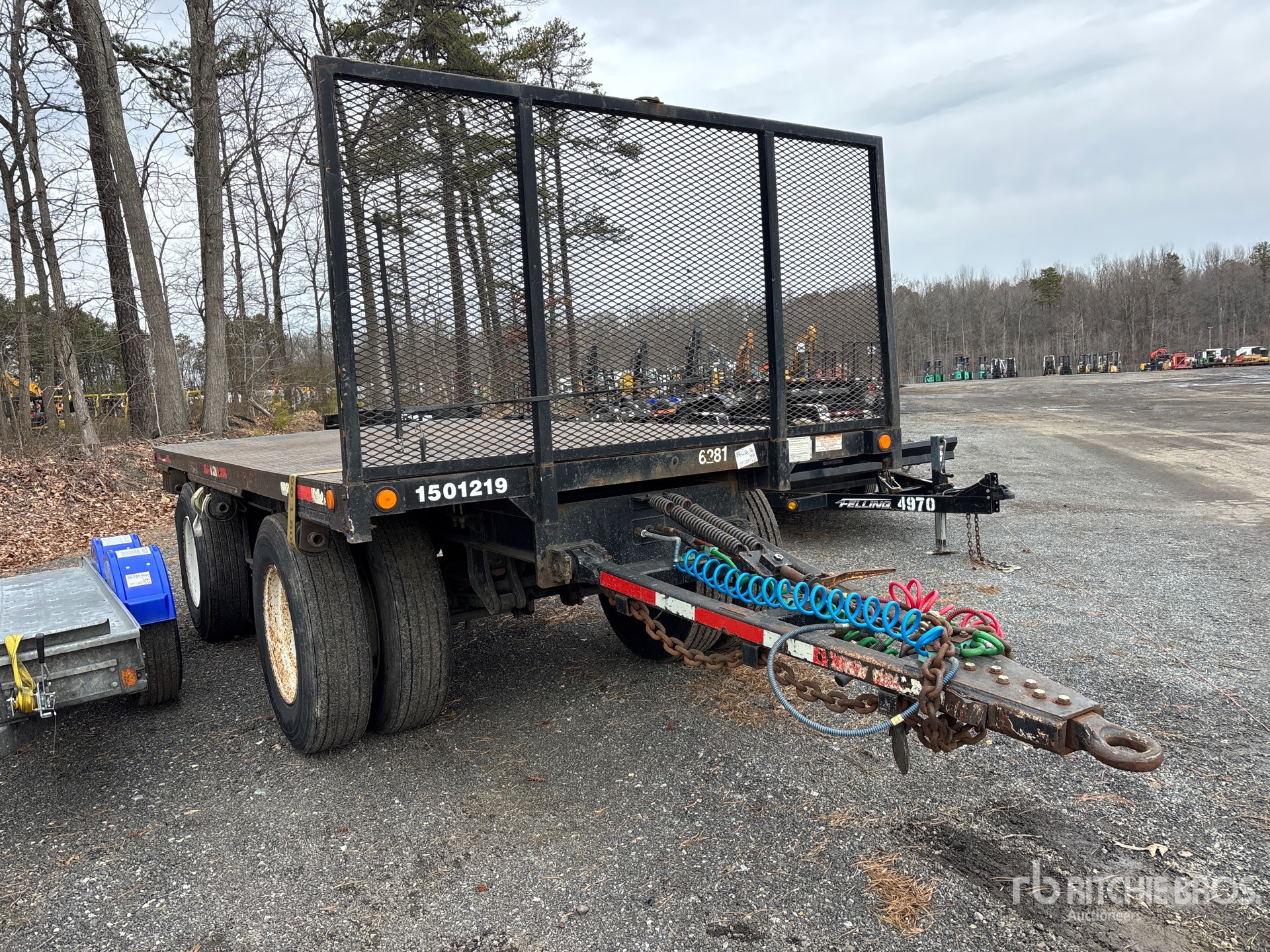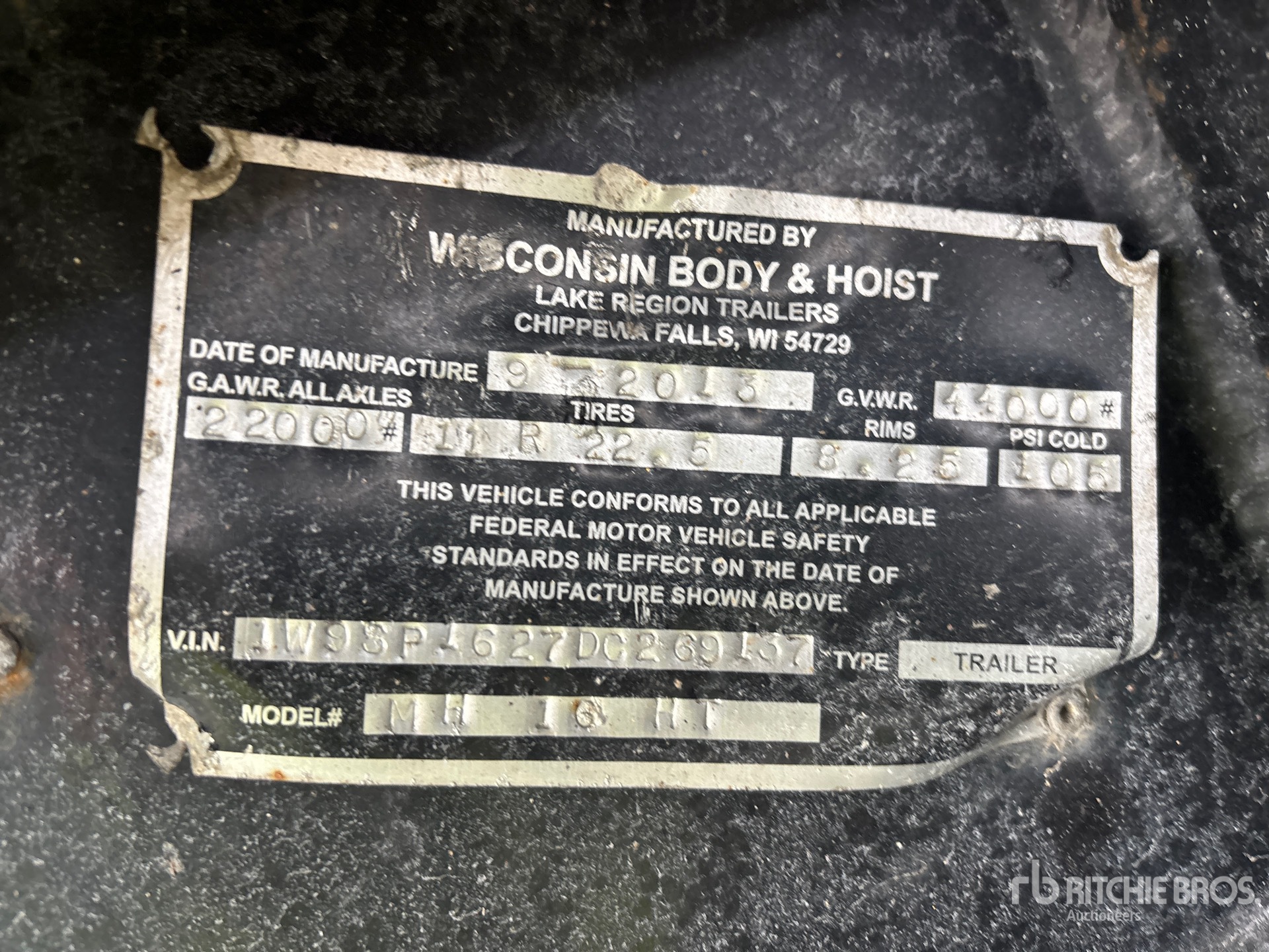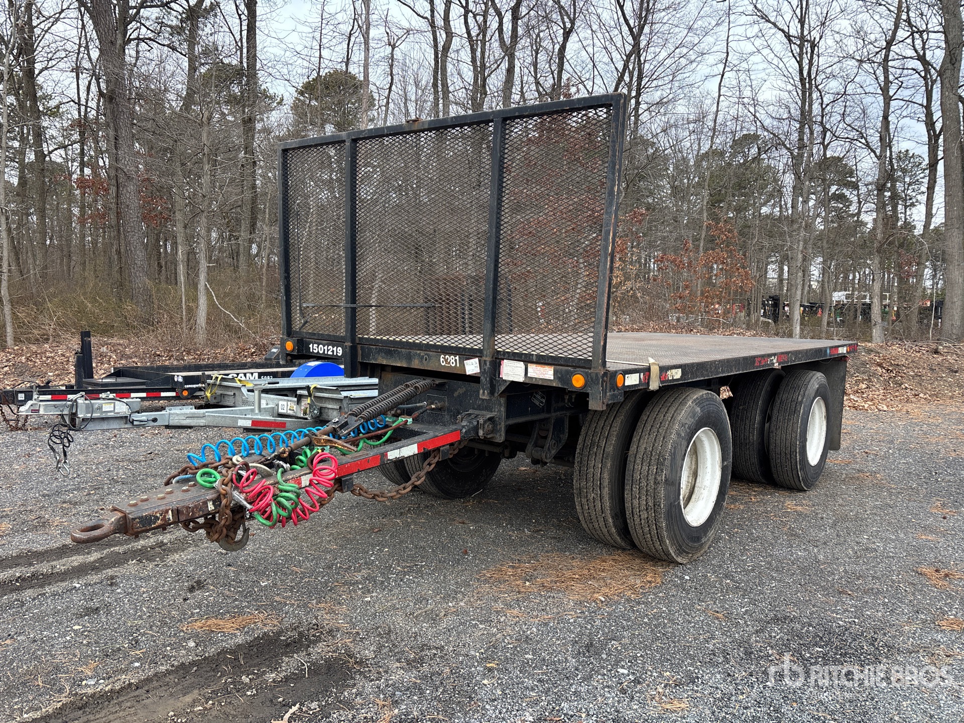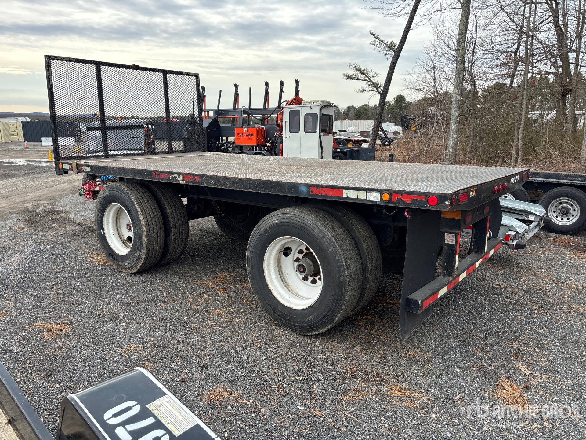Located in Lane 56 Spot 18, Lunette Ring Hitch, Spring Suspension, Air Brakes, 16 ft Main Deck, 96 in Usable Deck Width, 96 in Overall Deck Width, Bulkhead, Deck Over Tires, Steel Decking, 11R22.5 Tires, 44000 lb GVWR