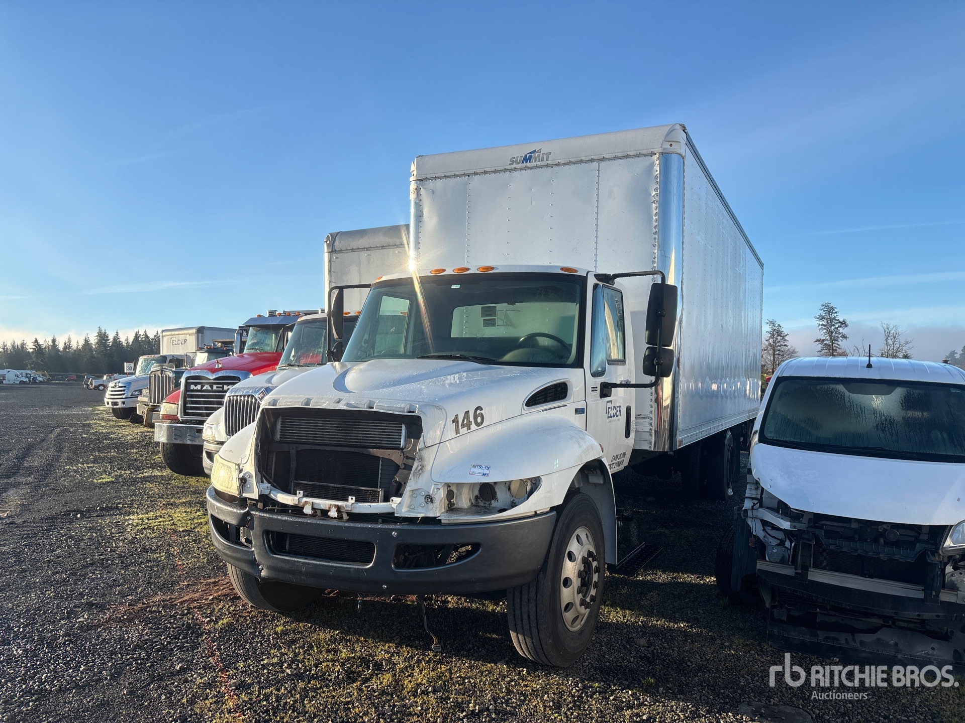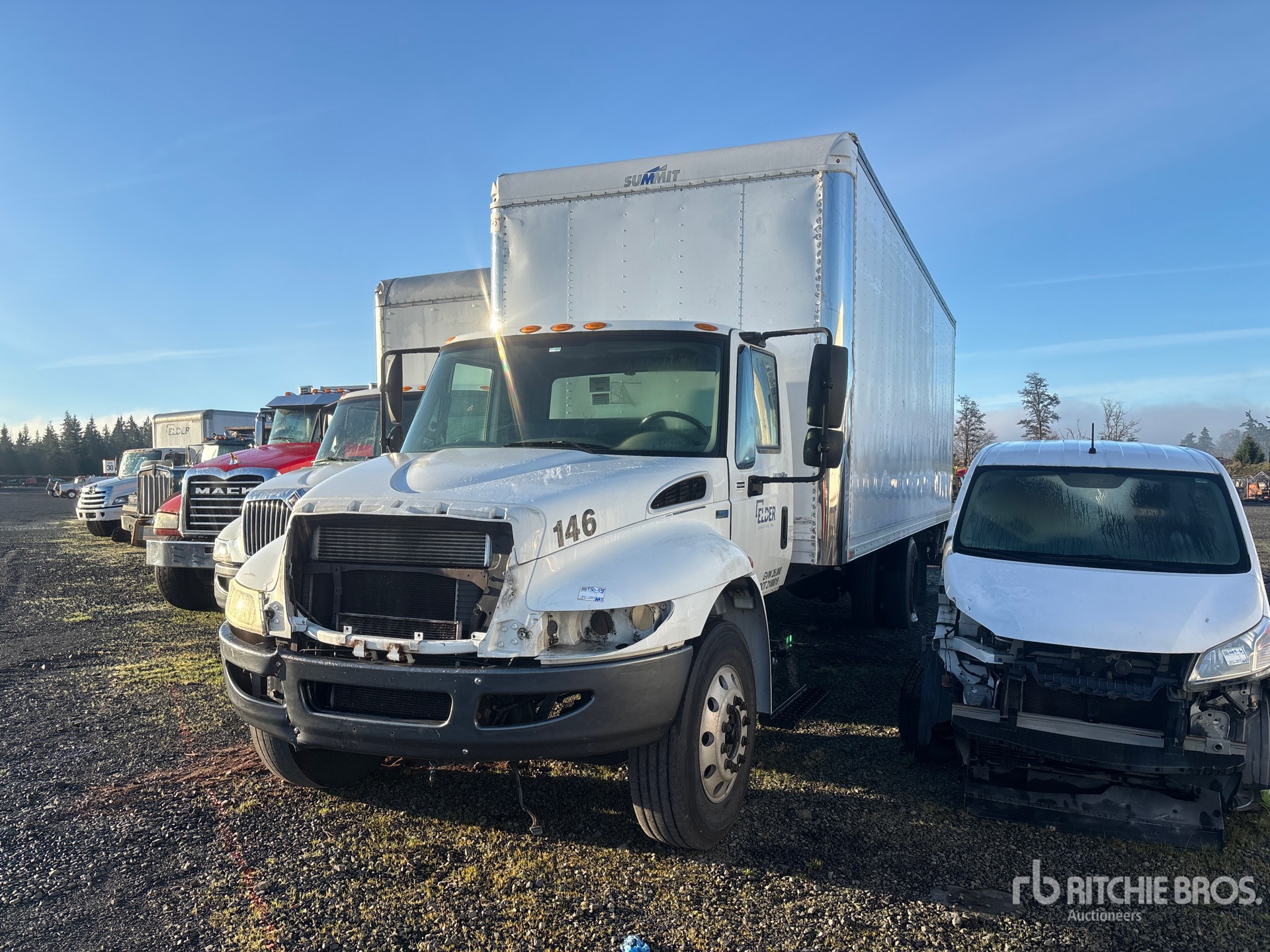 6 Cylinder Diesel Engine, Automatic Transmission, 10000 lb Front Axle, 17500 lb Rears, 25999 lb GVWR, Aluminum Front Wheels, 295/75R22.5 Front Tires, 11R22.5 Rear Tires, Spring Suspension, 255 in Wheelbase, Summit 26 ft x 102 in Wide x 103 in High Body, Liftgate
