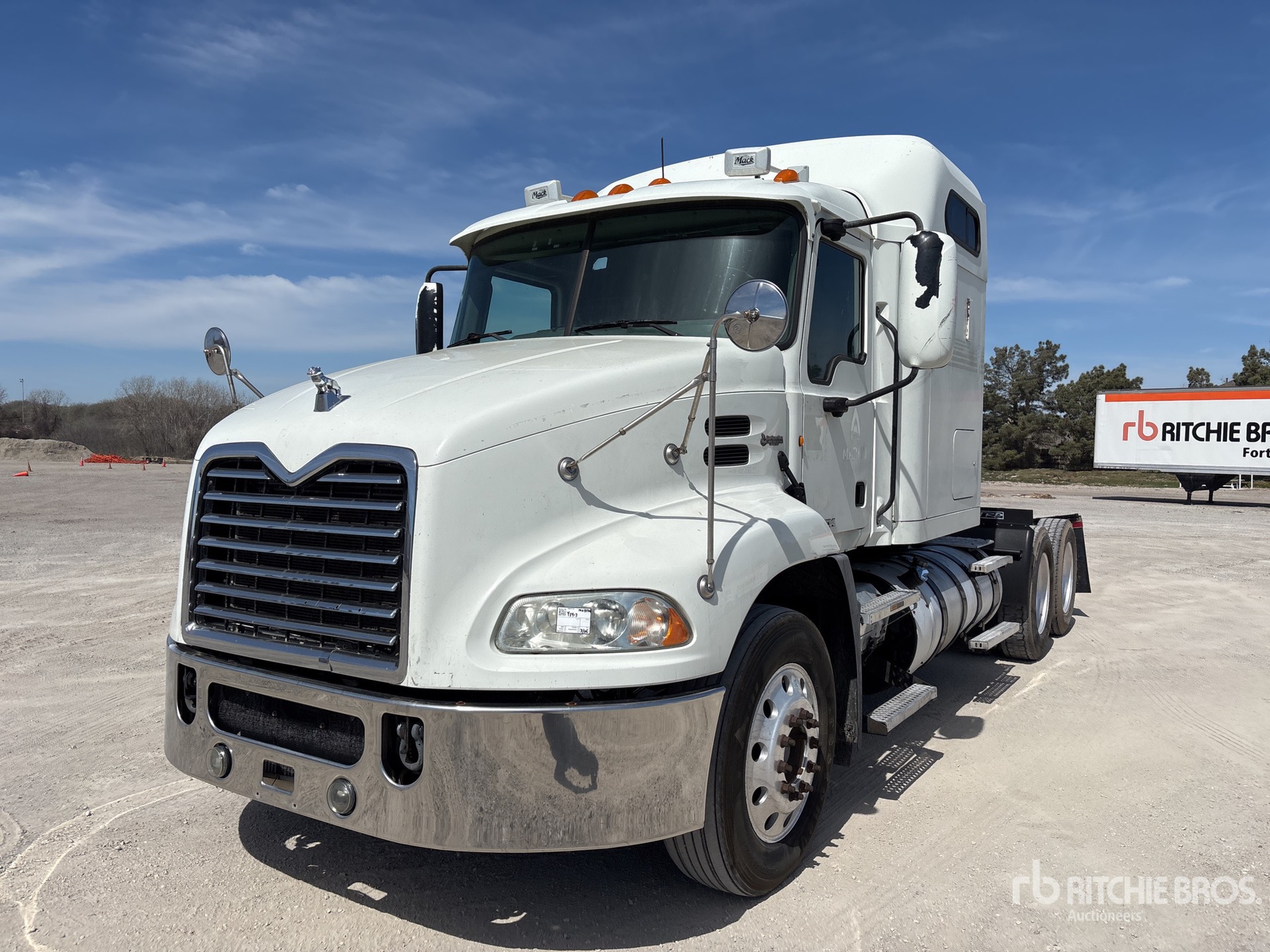Located in Lane 37 Spot 4, Mack MP7 395 hp Engine, 2013 US EPA Label, Eaton Fuller Manual Transmission, 12350 lb Front Axle, 40000 lb Rears, 52350 lb GVWR, Engine Brake, 60 in Mid Roof Sleeper Cab, 215 in Wheelbase, Air Suspension, Aluminum Wheels, 285/75R24.5