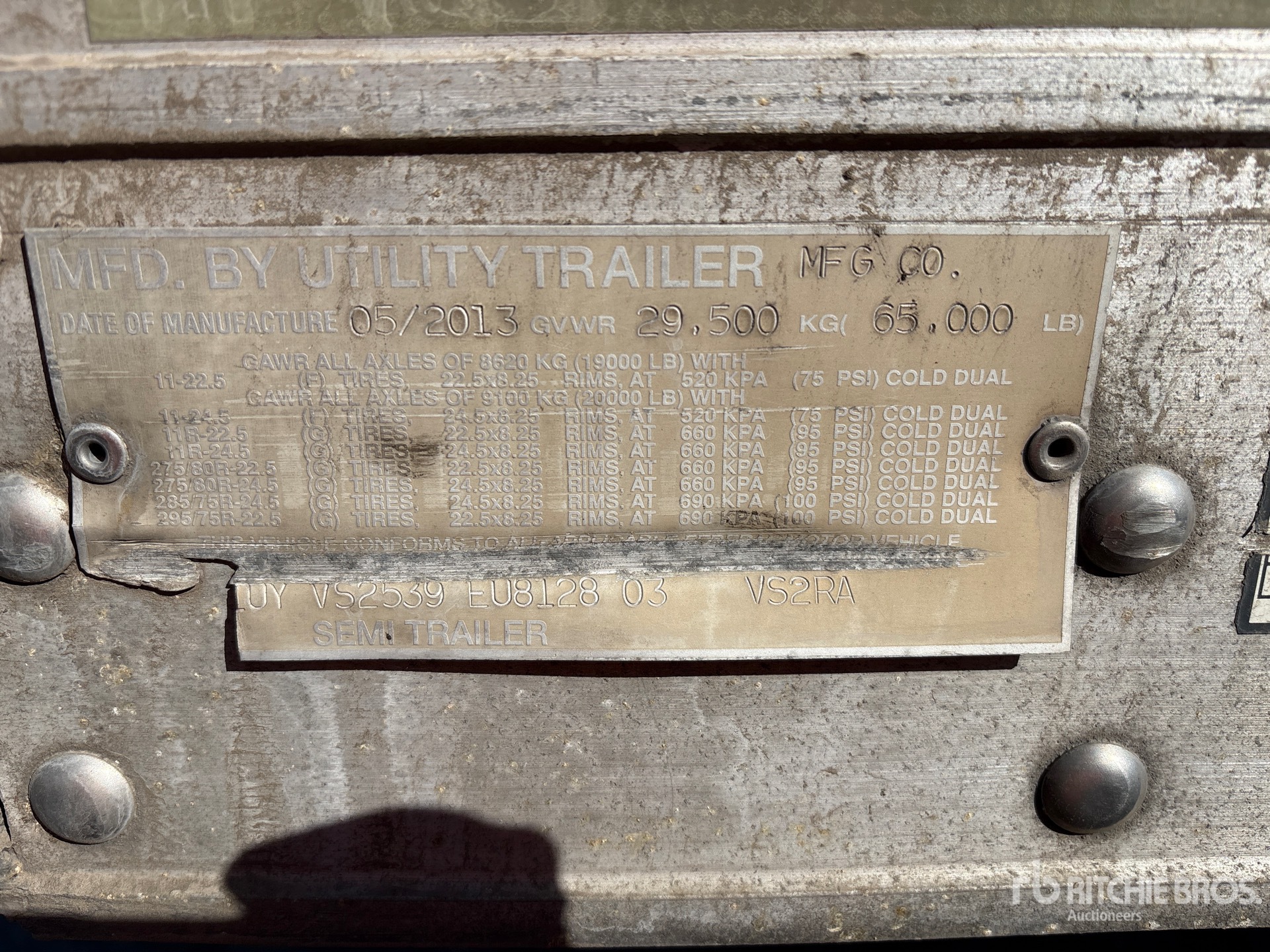 2013 Thermo King Precedent-s600 Refrigeration Unit, Air Ride Suspension, Side Skirts, Ducted Floor, Swing Door, 295/75R22.5 Tires 65000 lb GVWR