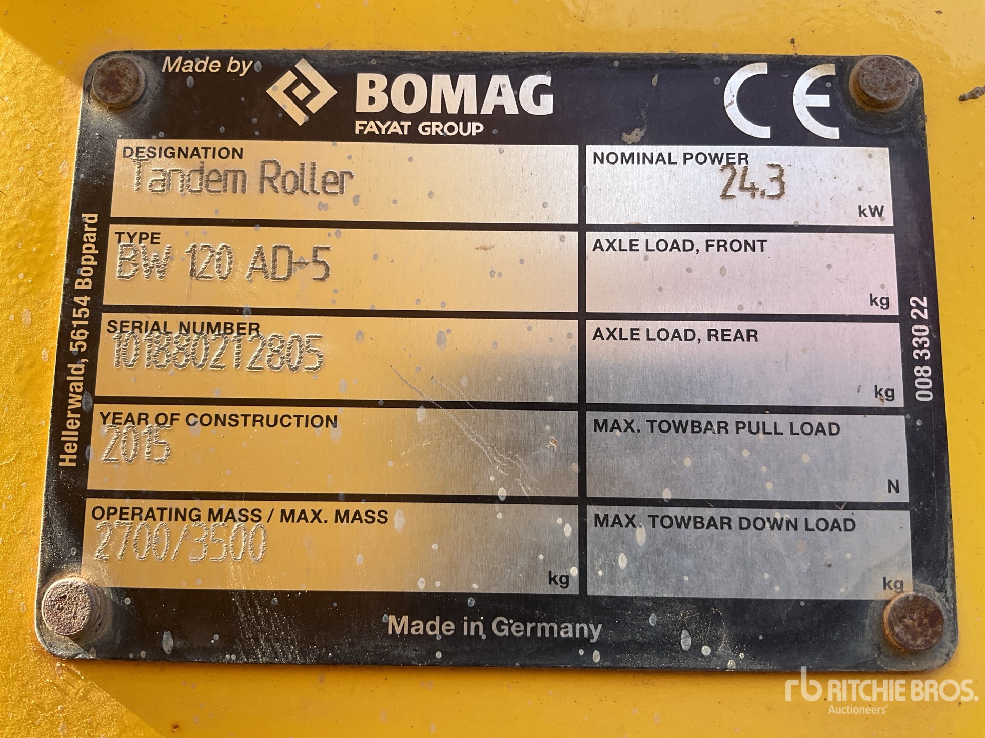 Il macchinario non è stato testato con carico o con tutte le marce. Non rilasciamo alcuna dichiarazione o garanzia che il macchinario funzioni secondo le specifiche del produttore. Non sono state eseguite verifiche di funzionamento sulle componenti della macchina, salvo per le parti qui indicate. Sono disponibili foto specifiche delle singole componenti della macchina, da considerarsi puramente indicative e non rappresentative delle loro effettive condizioni.
