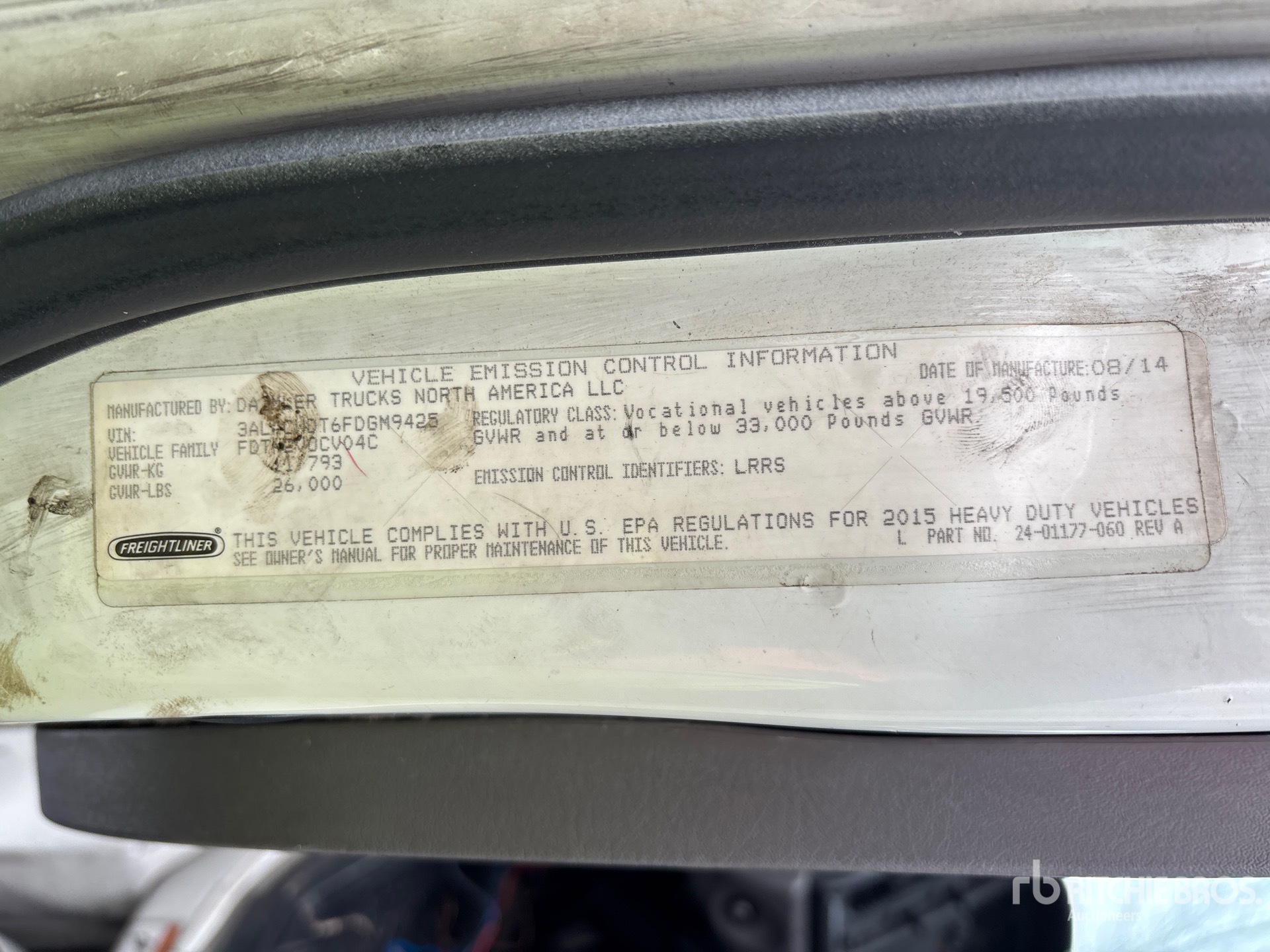 Le descrizioni dettagliate degli articoli non sono complete, Ritchie Bros. Auctioneers non ha effettuato alcuna ispezione delle componenti dell'articolo, salvo quelle espressamente indicate di seguito. Salvo espressamente indicato, non verrà fornita alcuna dichiarazione o garanzia, espressa o implicita, riguardante il funzionamento dell'articolo e delle sue componenti, incluso descrizioni o garanzie relative a funzionamento, conformità o osservanza di standard o requisiti di sicurezza eventualmente previsti da organi di vigilanza o competenti, dichiarazioni di idoneità o commerciabilità. Si raccomanda di prendere personalmente visione di ogni componente dell'articolo in modo accurato prima di fare un'offerta.