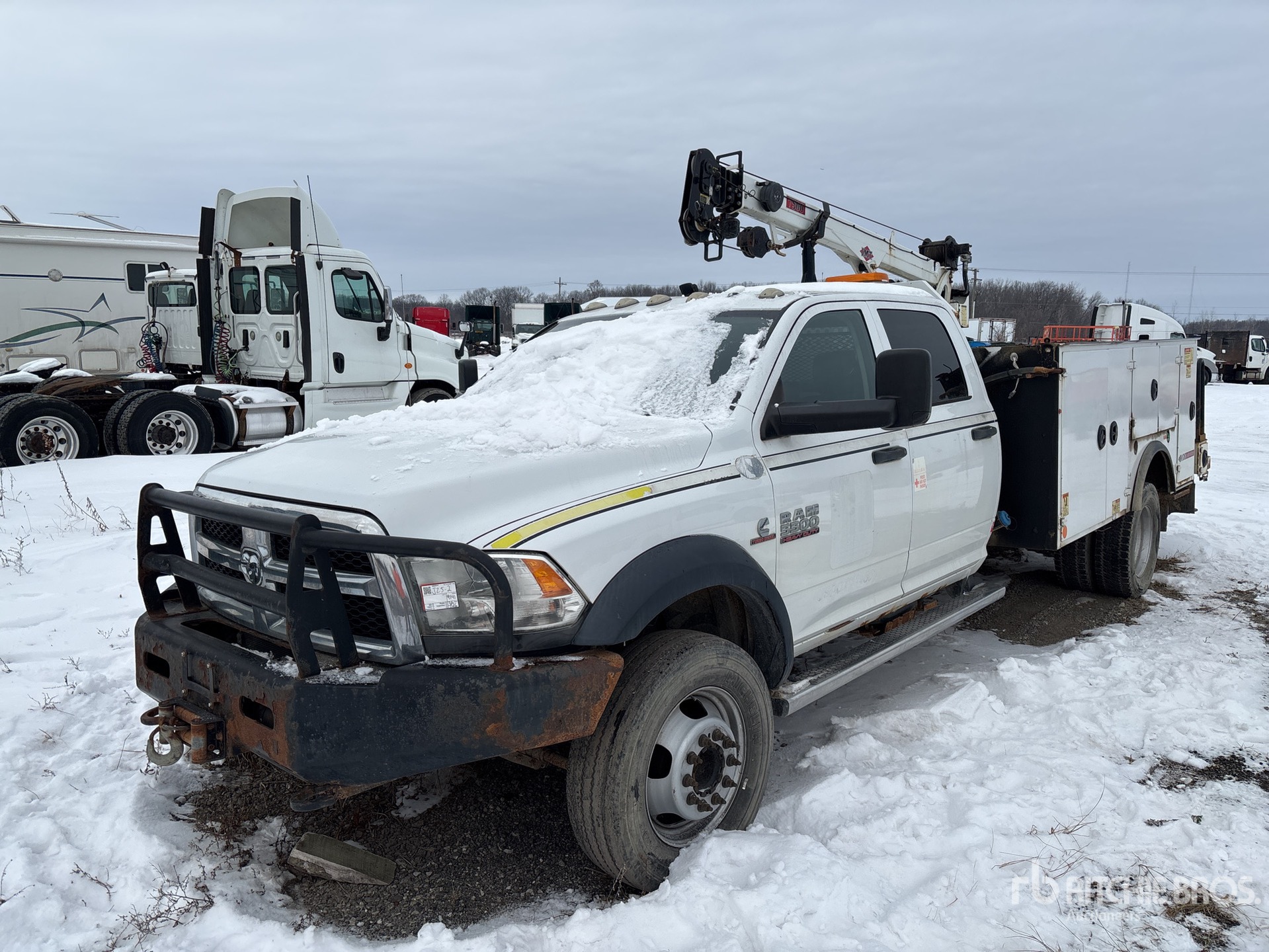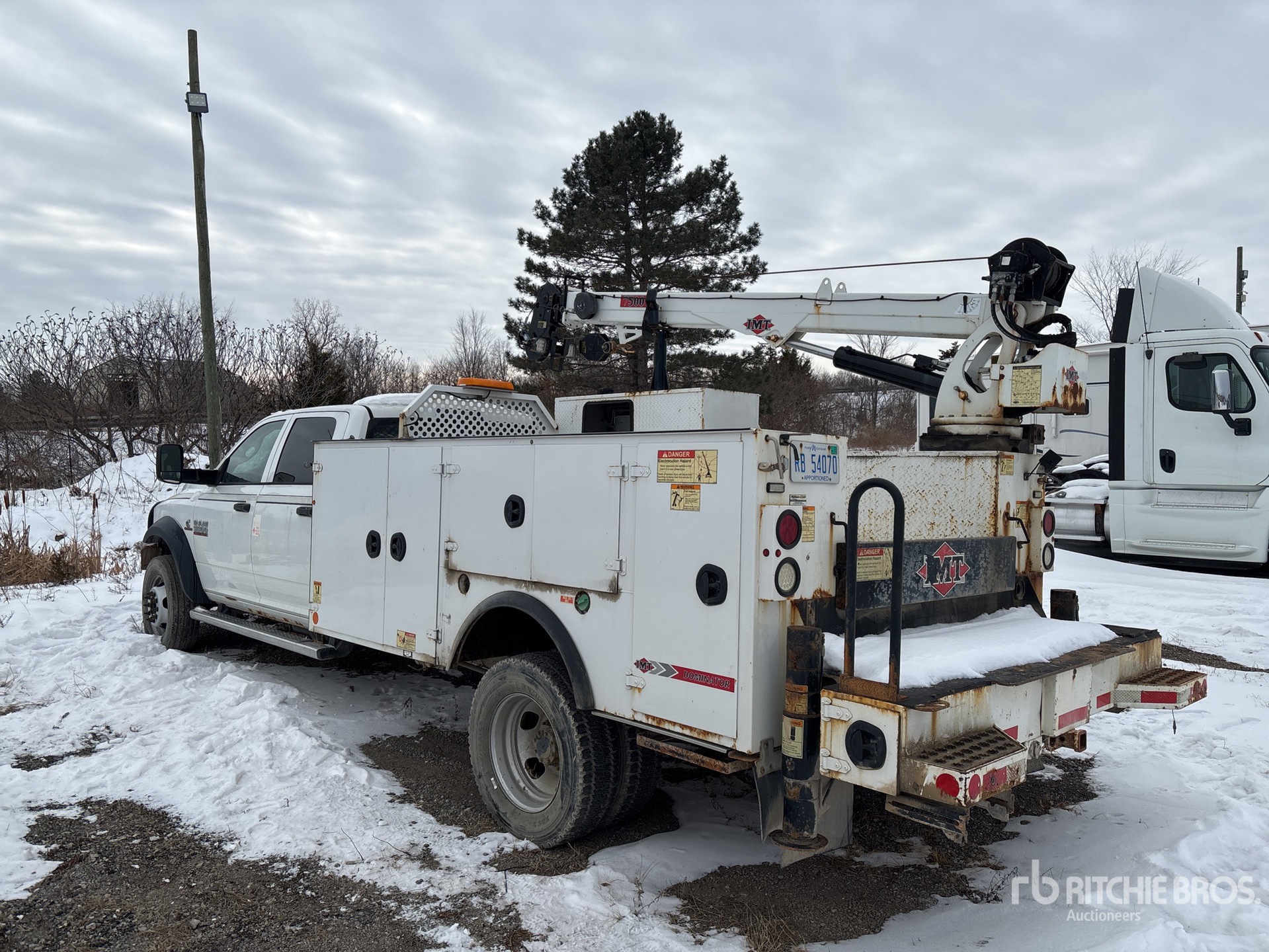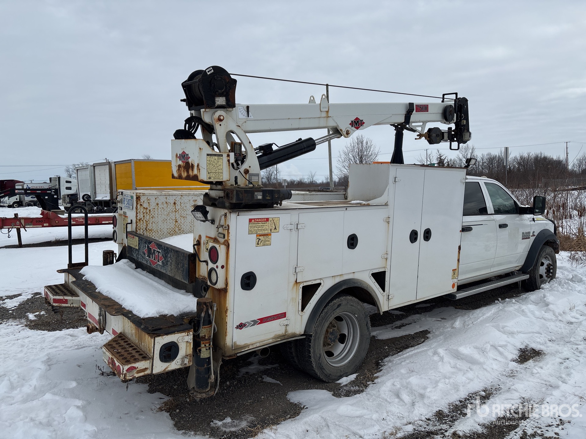 Cummins 6 Cylinder 6.7 L Diesel Engine, 2015 US EPA Label, Requires Diesel Exhaust Fluid, 10541 Engine hrs, Exhaust Brake, Automatic Transmission, 7250 lb Front Axle, 13500 lb Rears, 19500 lb GVWR, 225/70R19.5, Spring Suspension, 198 in Wheelbase, PTO, 2015 Iowa Mold Tooling DOM1S3 K103622 10 ft 11 in Body, Hydraulic Stabilizers, 2015 IMT 7500-22 K103623 7500 lb 3 Section Hydraulic Crane, Wireless Remote Control