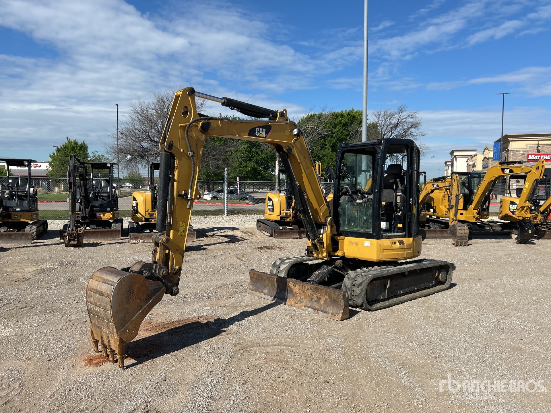 Located in Lane 57 Spot EY, Enclosed Cab, Air Conditioner, Tier 4, 2016 US EPA Label, Swing Boom, 5 ft 3 in Stick, Auxiliary Hydraulic Plumbing, Backfill Blade, 16 in Rubber Tracks, Hydraulic Quick Coupler, 24 in Digging Bucket, Thumb Bracket, Equipment-From-A-Primoris-Services-Corp-Company
