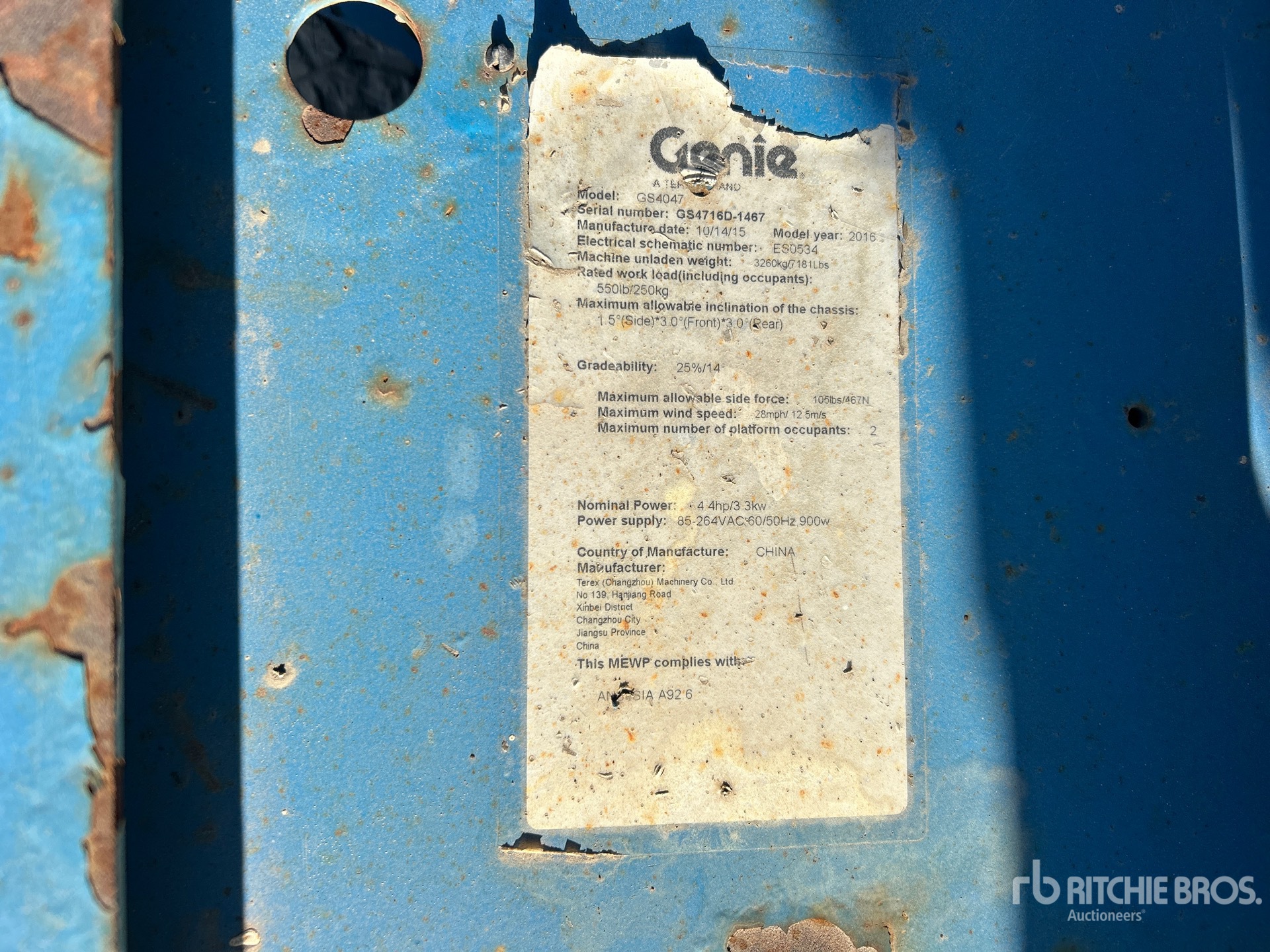 Le descrizioni dettagliate degli articoli non sono complete, Ritchie Bros. Auctioneers non ha effettuato alcuna ispezione delle componenti dell'articolo, salvo quelle espressamente indicate di seguito. Salvo espressamente indicato, non verrà fornita alcuna dichiarazione o garanzia, espressa o implicita, riguardante il funzionamento dell'articolo e delle sue componenti, incluso descrizioni o garanzie relative a funzionamento, conformità o osservanza di standard o requisiti di sicurezza eventualmente previsti da organi di vigilanza o competenti, dichiarazioni di idoneità o commerciabilità. Si raccomanda di prendere personalmente visione di ogni componente dell'articolo in modo accurato prima di fare un'offerta.