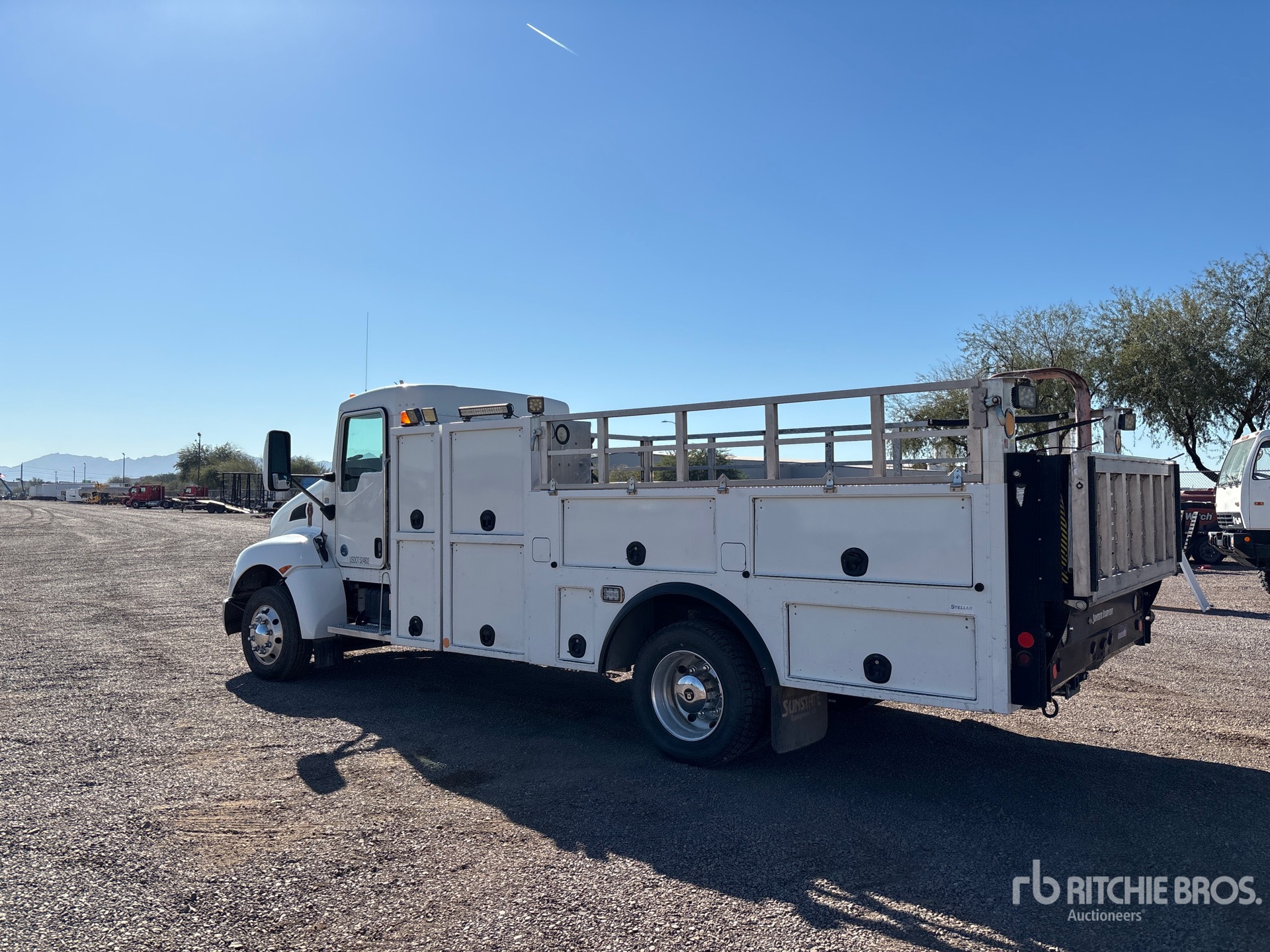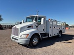 Located in Lane 16 Spot 23, Paccar Diesel 300 hp Engine, 2015 US EPA Label, Requires Diesel Exhaust Fluid, 13288 Engine hrs, Engine Brake, Allison 1000 Automatic Transmission, 8000 lb Front Axle, 11500 lb Rears, Spicer S14-130 Drive Axles, 4.30:1 Axle Ratio, 19500 lb GVWR, Aluminum Wheels, 245/70R19.5, Reyco Spring Suspension, 176 in Wheelbase, PTO, 2015 Stellar 1184 15 ft Body, Hydraulic Lift Gate, Hydraulic Air Compressor, Air Hose Reel