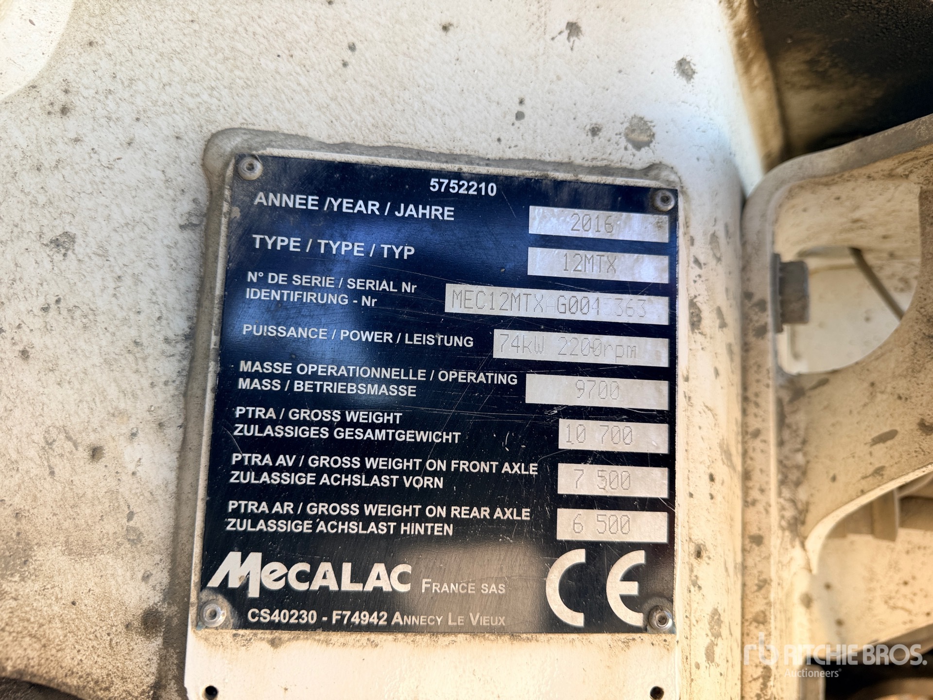 Le descrizioni dettagliate degli articoli non sono complete, Ritchie Bros. Auctioneers non ha effettuato alcuna ispezione delle componenti dell'articolo, salvo quelle espressamente indicate di seguito. Salvo espressamente indicato, non verrà fornita alcuna dichiarazione o garanzia, espressa o implicita, riguardante il funzionamento dell'articolo e delle sue componenti, incluso descrizioni o garanzie relative a funzionamento, conformità o osservanza di standard o requisiti di sicurezza eventualmente previsti da organi di vigilanza o competenti, dichiarazioni di idoneità o commerciabilità. Si raccomanda di prendere personalmente visione di ogni componente dell'articolo in modo accurato prima di fare un'offerta.