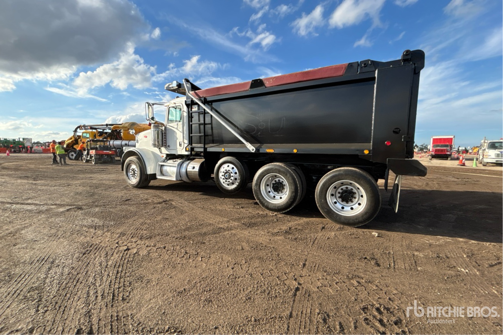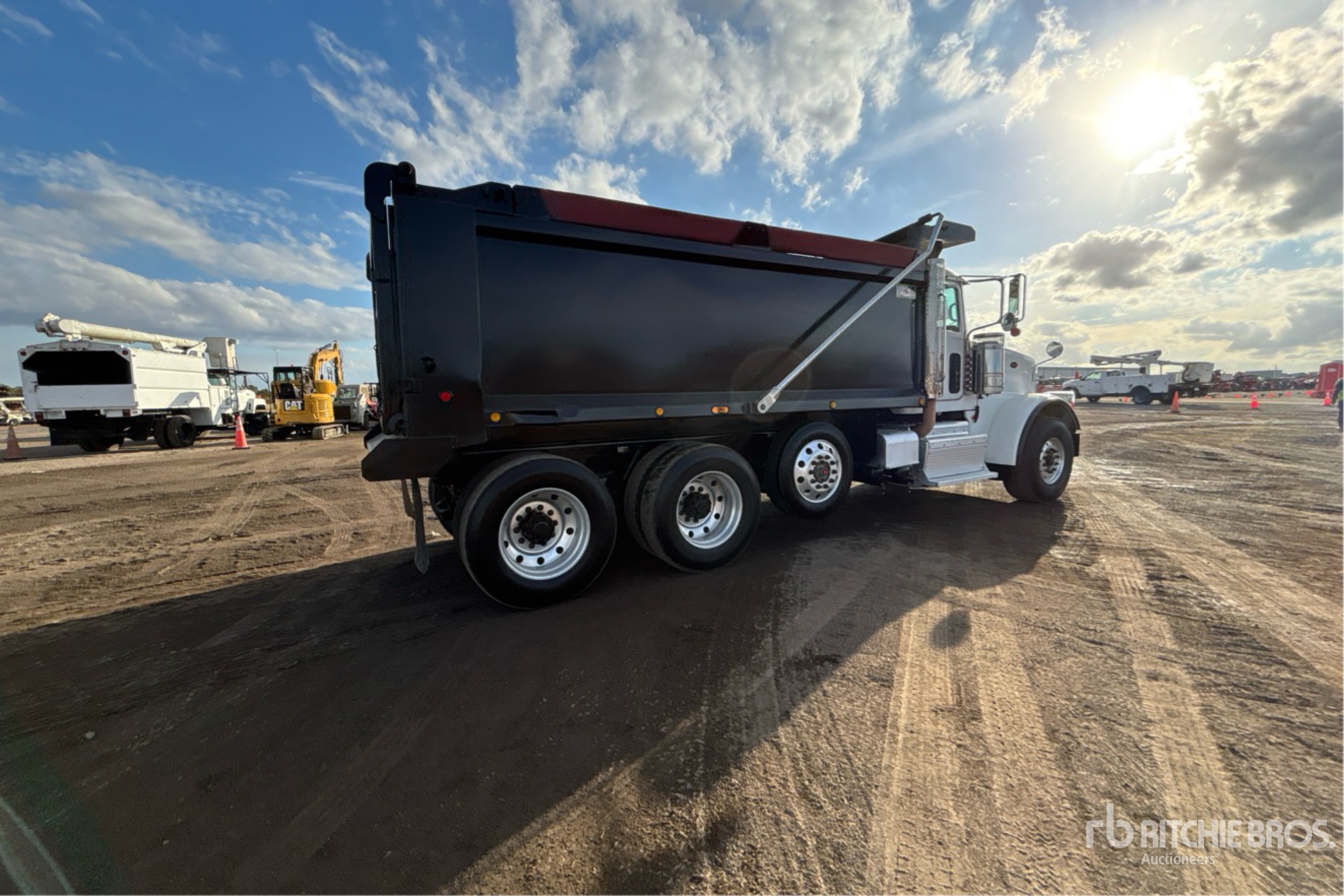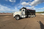 Cummins ISX12 11.9 L 425 hp Engine, 2015 US EPA Label, CARB Compliant, Requires Diesel Exhaust Fluid, 24043 Engine hrs, Engine Brake, Allison Automatic Transmission, Differential Lock, 20000 lb Front Axle, 46000 lb Rears, 79220 lb GVWR, 425/65R22.5 Front Tires, 11R24.5 Rear Tires, Dual Steering Boxes, Chalmers Rubber Suspension, 230 in Wheelbase, PTO, OX Bodies 16 ft Long x 4 ft 6 in High Body, Electric Roll Tarp