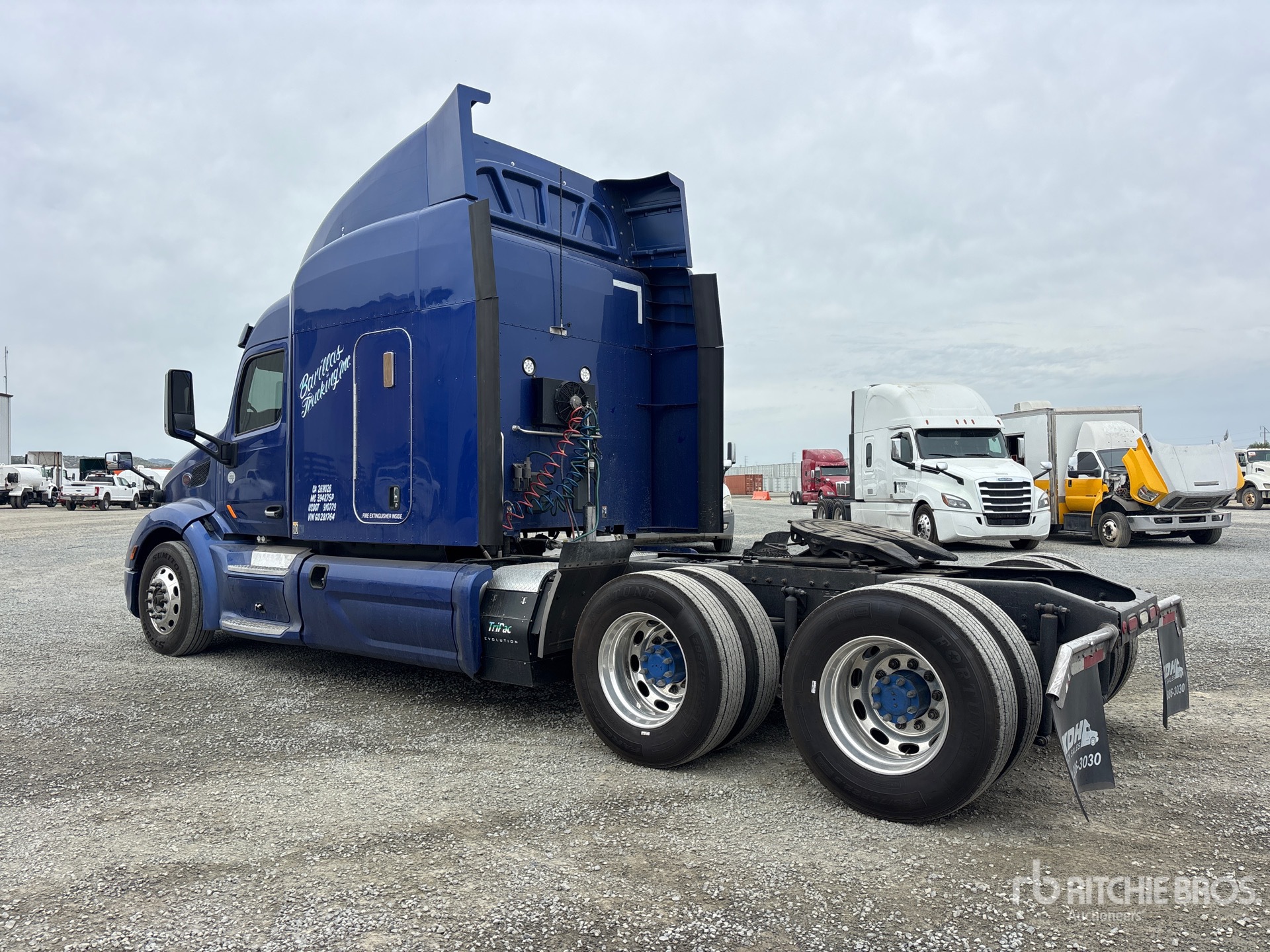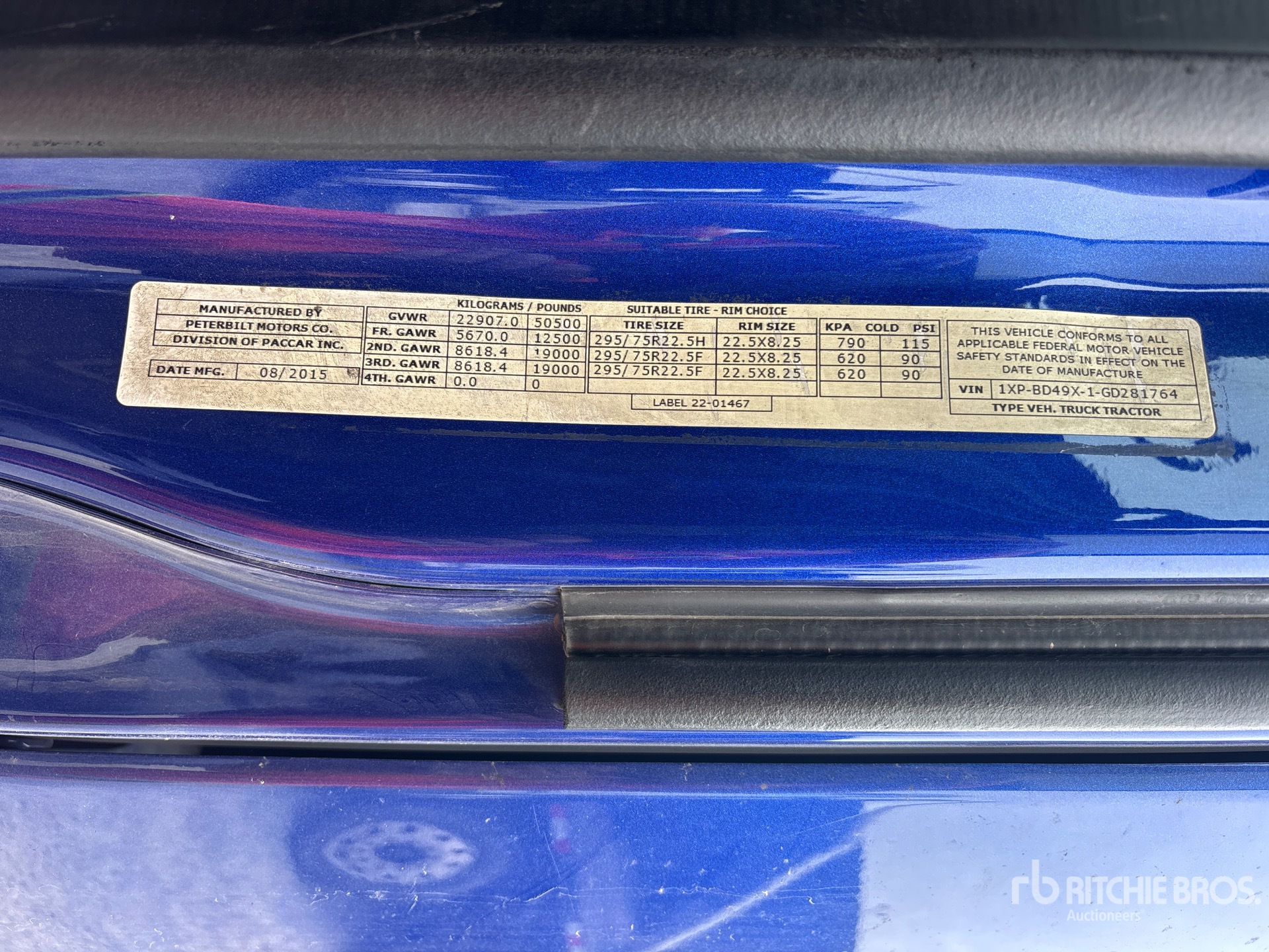 Located in Lane 6 Spot 22, Cummins ISX15 450 hp Engine, 2015 US EPA Label, 459.2 Engine hrs, Manual Transmission, 12500 lb Front Axle, 38000 lb Rears, 50500 lb GVWR, Engine Brake, Differential Lock, 70 in Mid Roof Sleeper Cab, Auxiliary Power Unit, 235 in Wheelbase, Air Suspension, Aluminum Wheels, 295/75R22.5 Front Tires, 295/80R22.5 Rear Tires, Air Sliding 5th Wheel, Dual Fuel Tanks