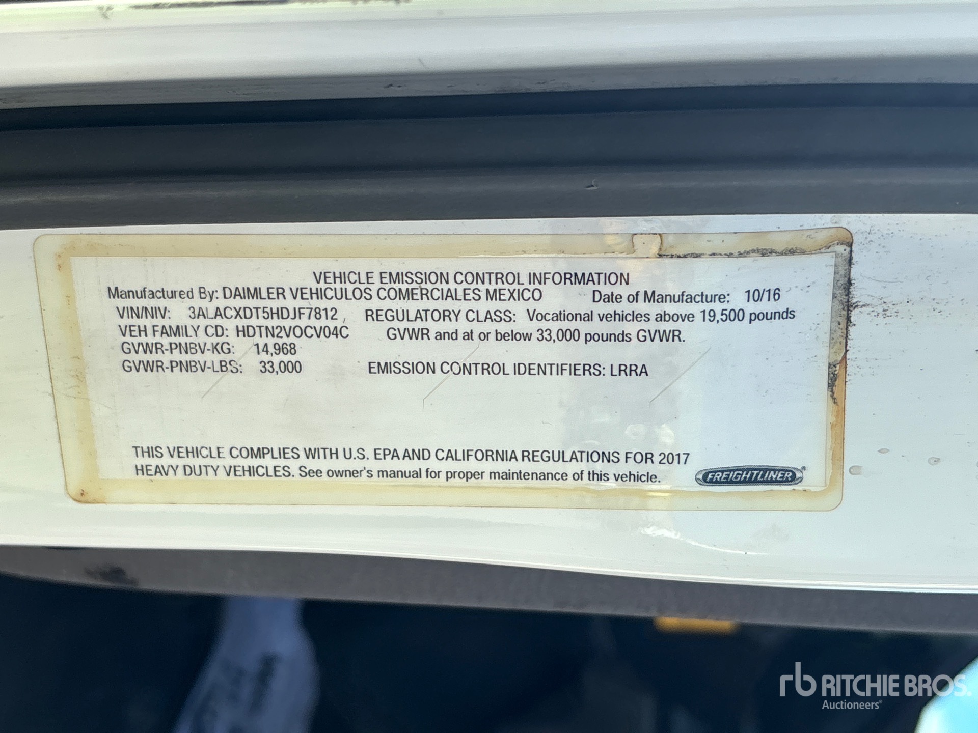 US EPA Label, Requires Diesel Exhaust Fluid
