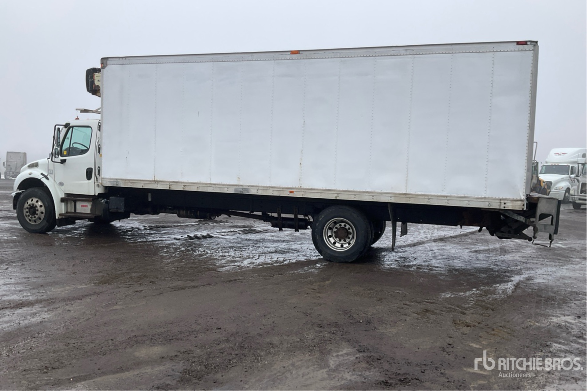 Cummins B6.7 280 6 Cylinder 6.7 L Diesel 280 hp Engine, 4682 Engine hrs, Allison 2500 Automatic Transmission, 12000 lb Front Axle, 21000 lb Rears, 5.56:1 Axle Ratio, 33000 lb GVWR, Aluminum Wheels, 11R22.5, Airliner Air Ride Suspension, 270 in Wheelbase, Carrier Reefer Unit, Multivans 26 ft x 102 in Wide x 96 in High Body, Liftgate