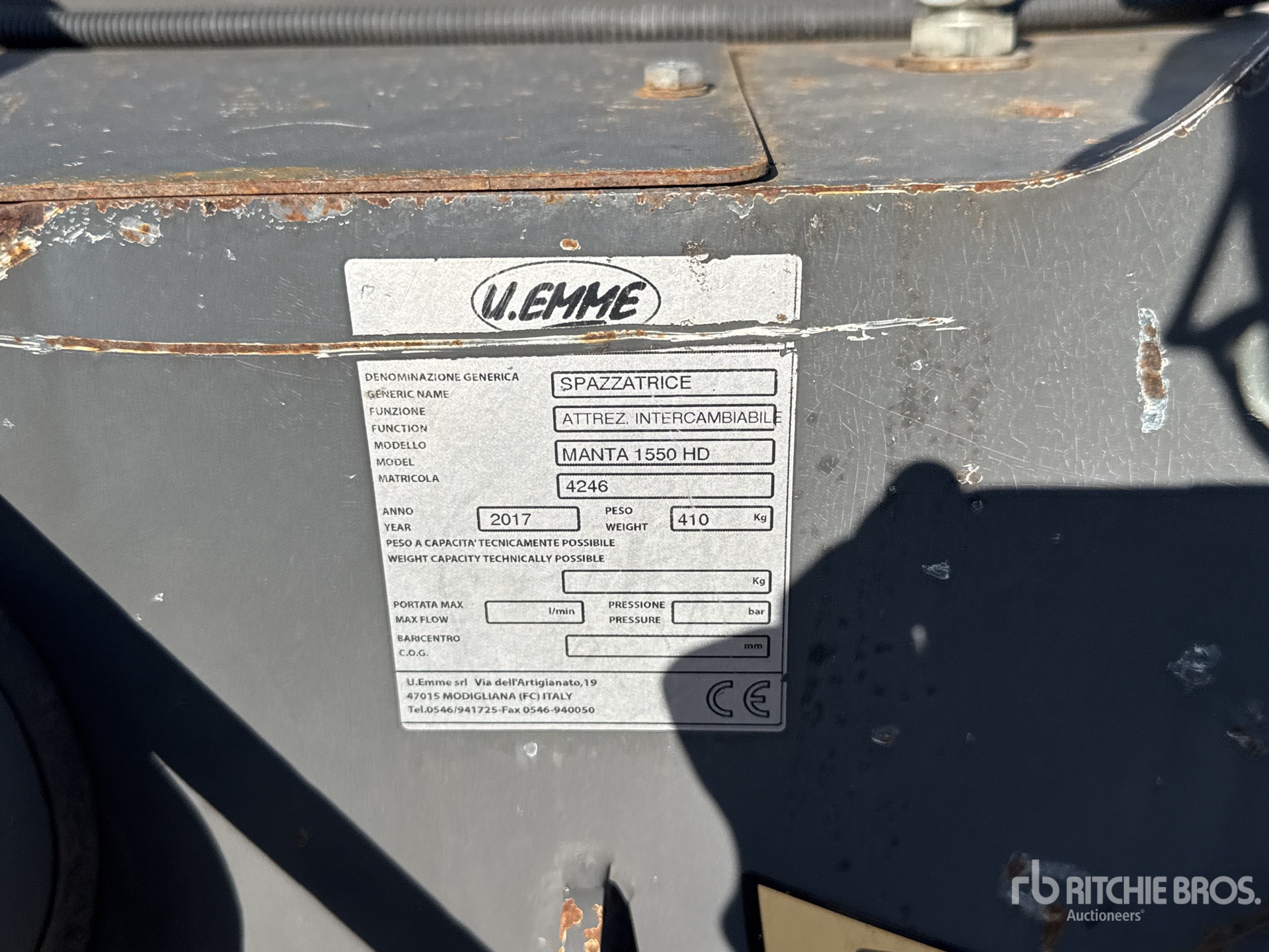 Le descrizioni dettagliate degli articoli non sono complete, Ritchie Bros. Auctioneers non ha effettuato alcuna ispezione delle componenti dell'articolo, salvo quelle espressamente indicate di seguito. Salvo espressamente indicato, non verrà fornita alcuna dichiarazione o garanzia, espressa o implicita, riguardante il funzionamento dell'articolo e delle sue componenti, incluso descrizioni o garanzie relative a funzionamento, conformità o osservanza di standard o requisiti di sicurezza eventualmente previsti da organi di vigilanza o competenti, dichiarazioni di idoneità o commerciabilità. Si raccomanda di prendere personalmente visione di ogni componente dell'articolo in modo accurato prima di fare un'offerta.