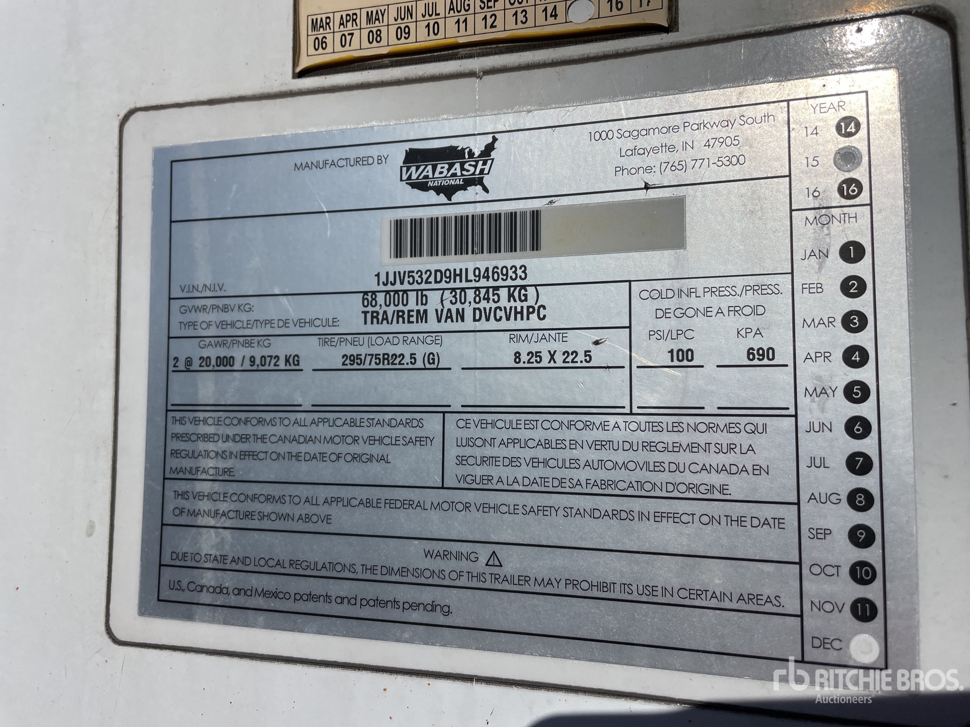 Air Ride Sliding Suspension, Hardwood Floor, Swing Door, 295/75R22.5 Tires 68000 lb GVWR